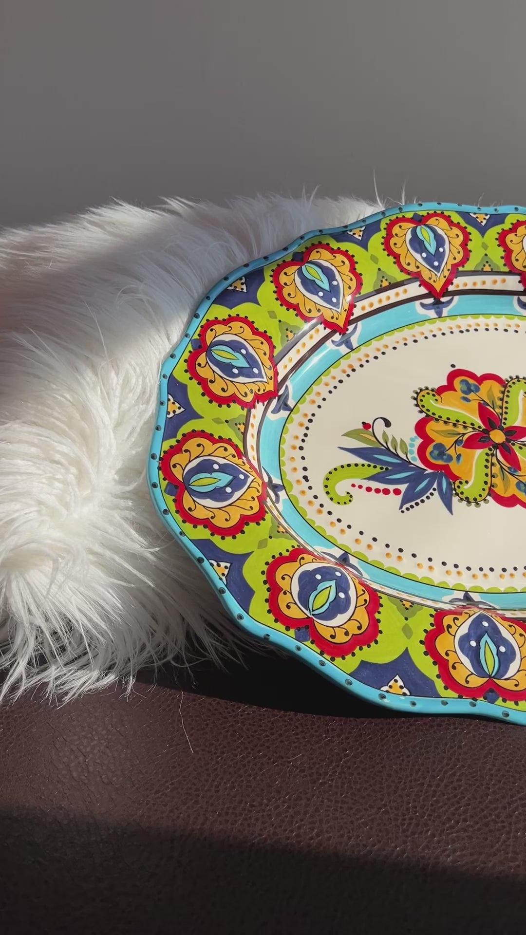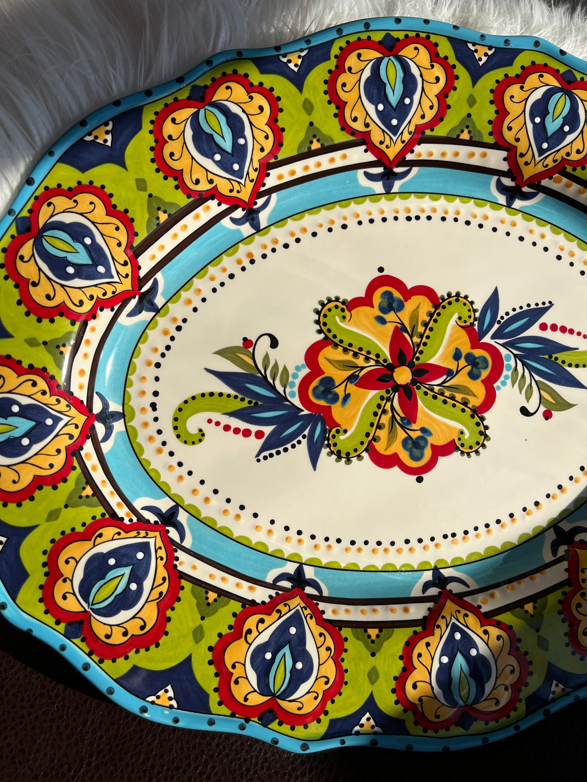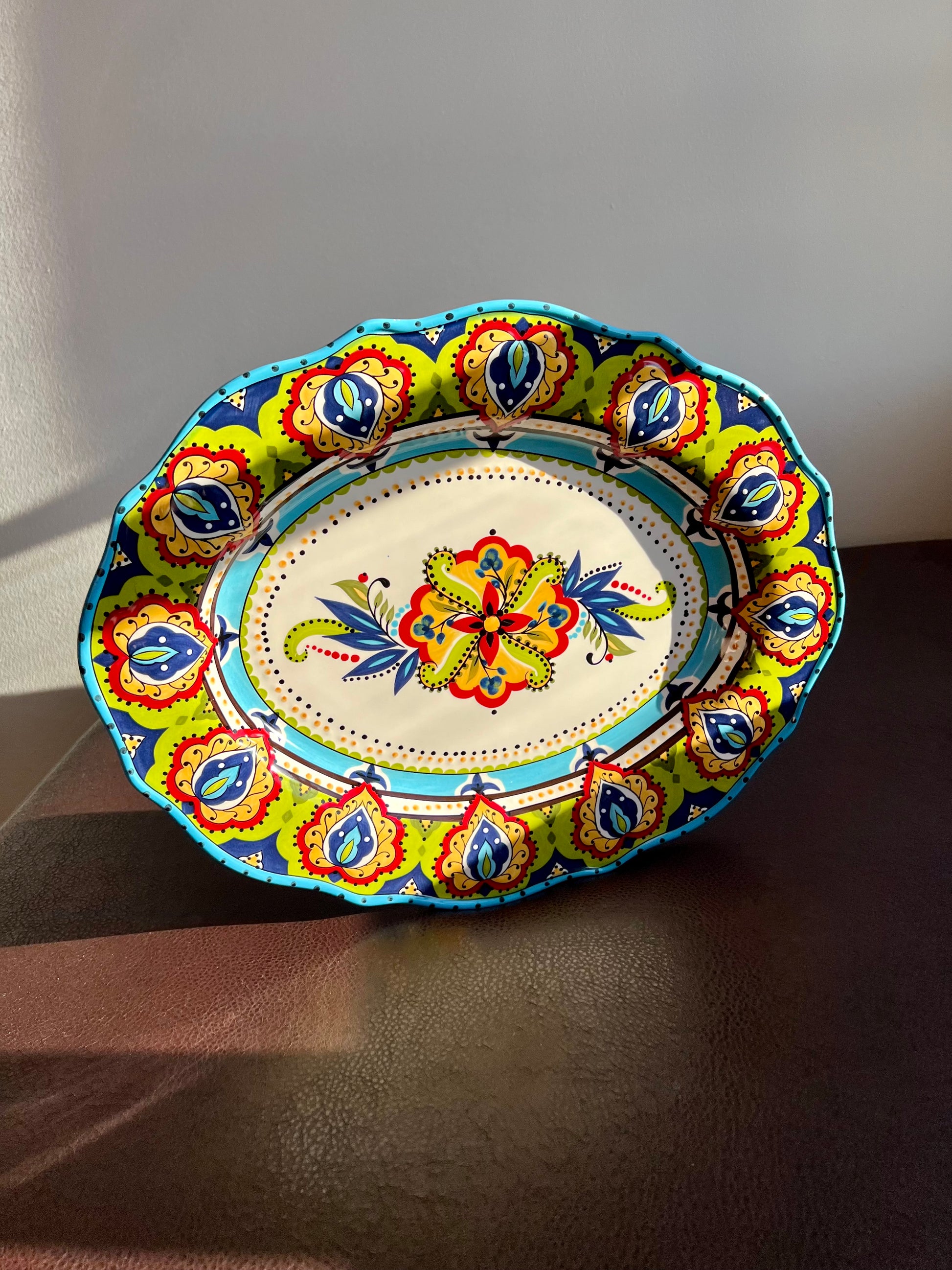 Bocca Espania Colorful Floral Decor, Large Oval Vintage Ceramic Serving Platter