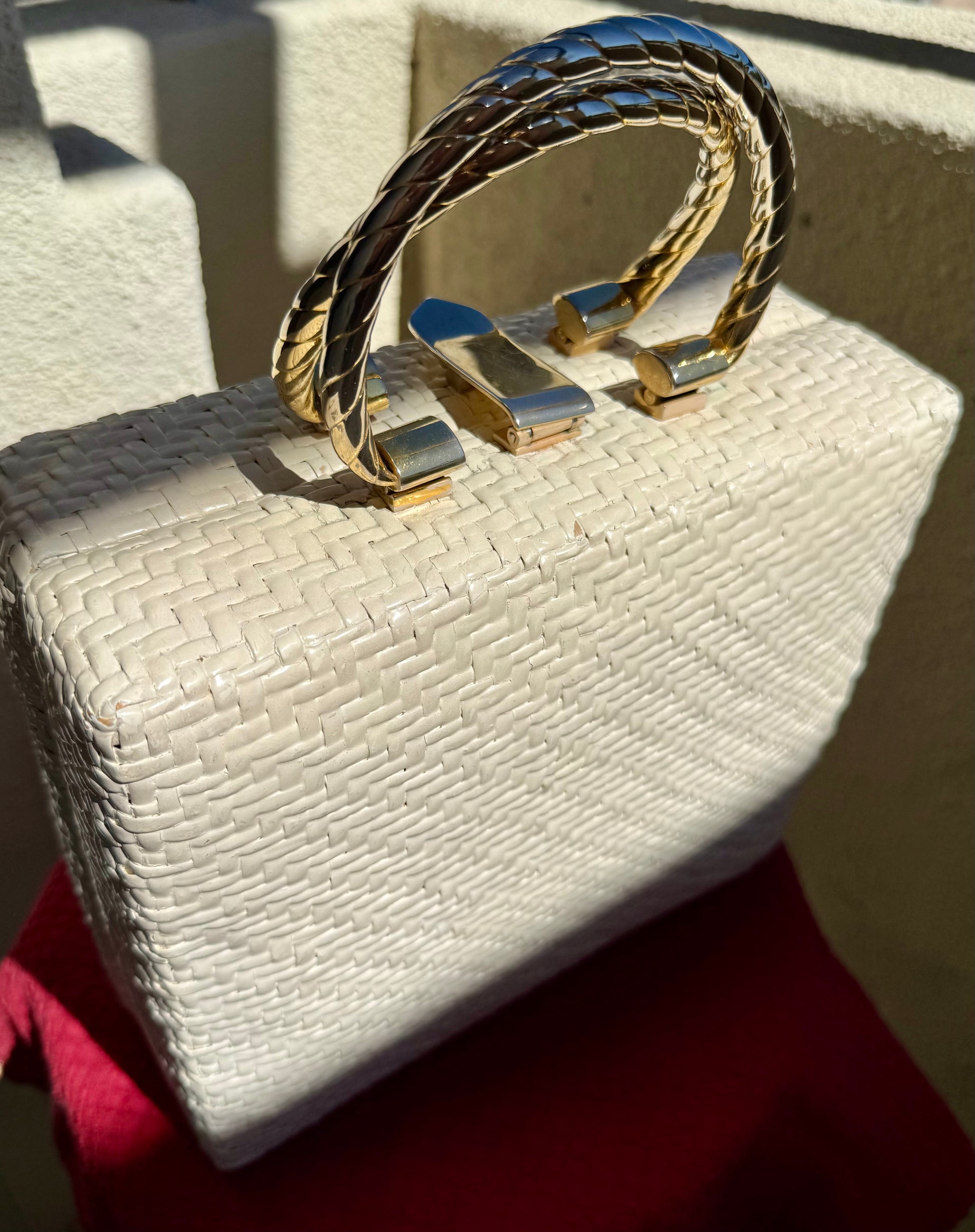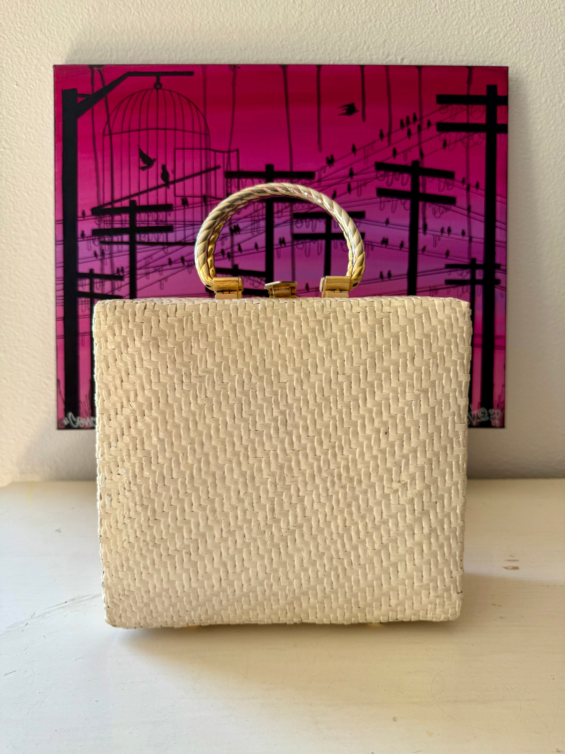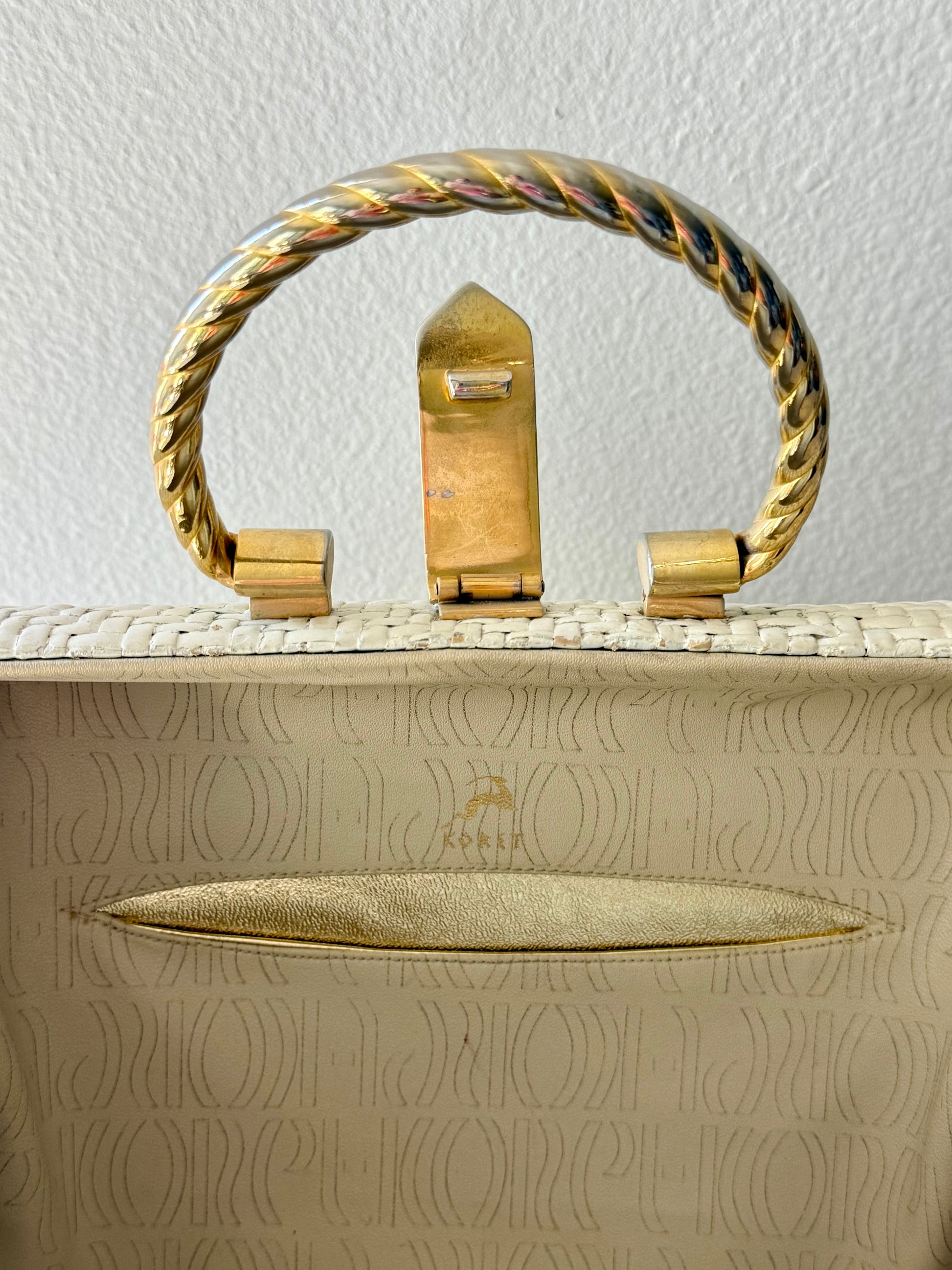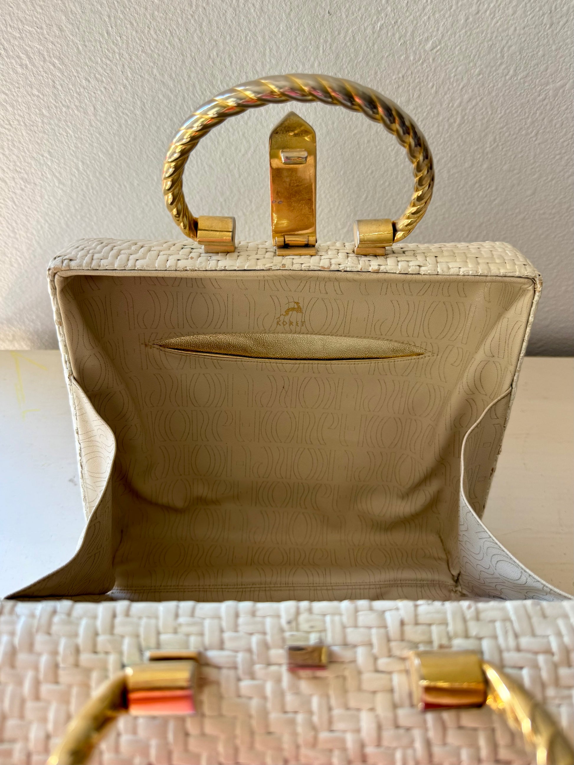 1950s Vintage KORET Elegant White Wicker Luxury Purse/Handbag, Made in Italy, Excellent Condition