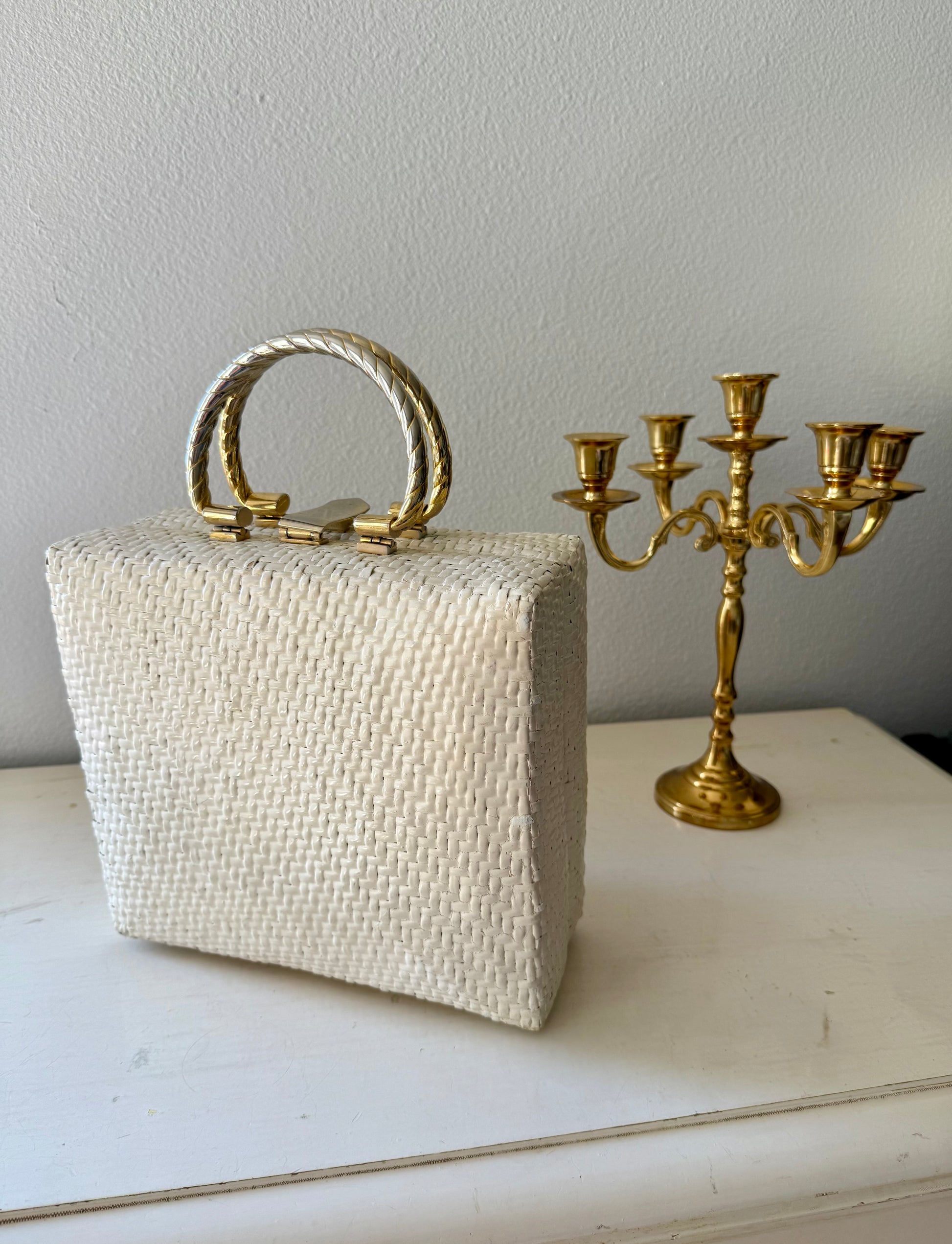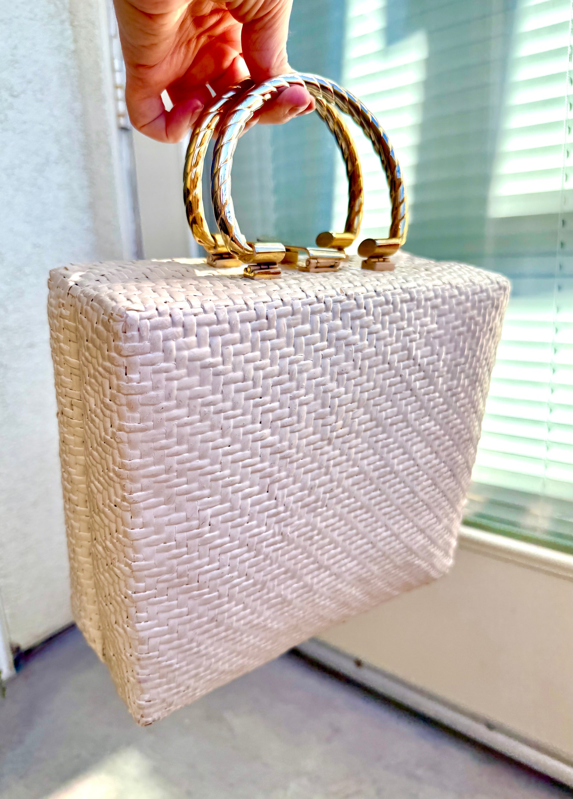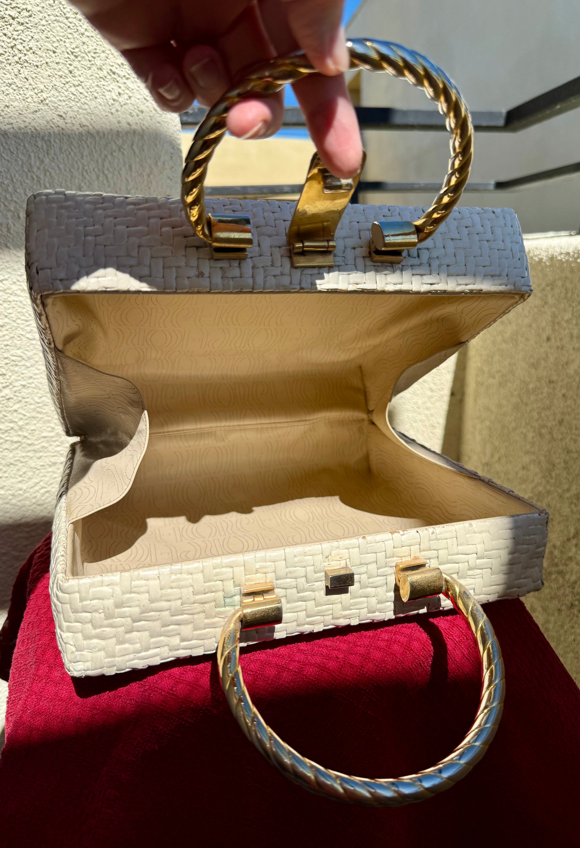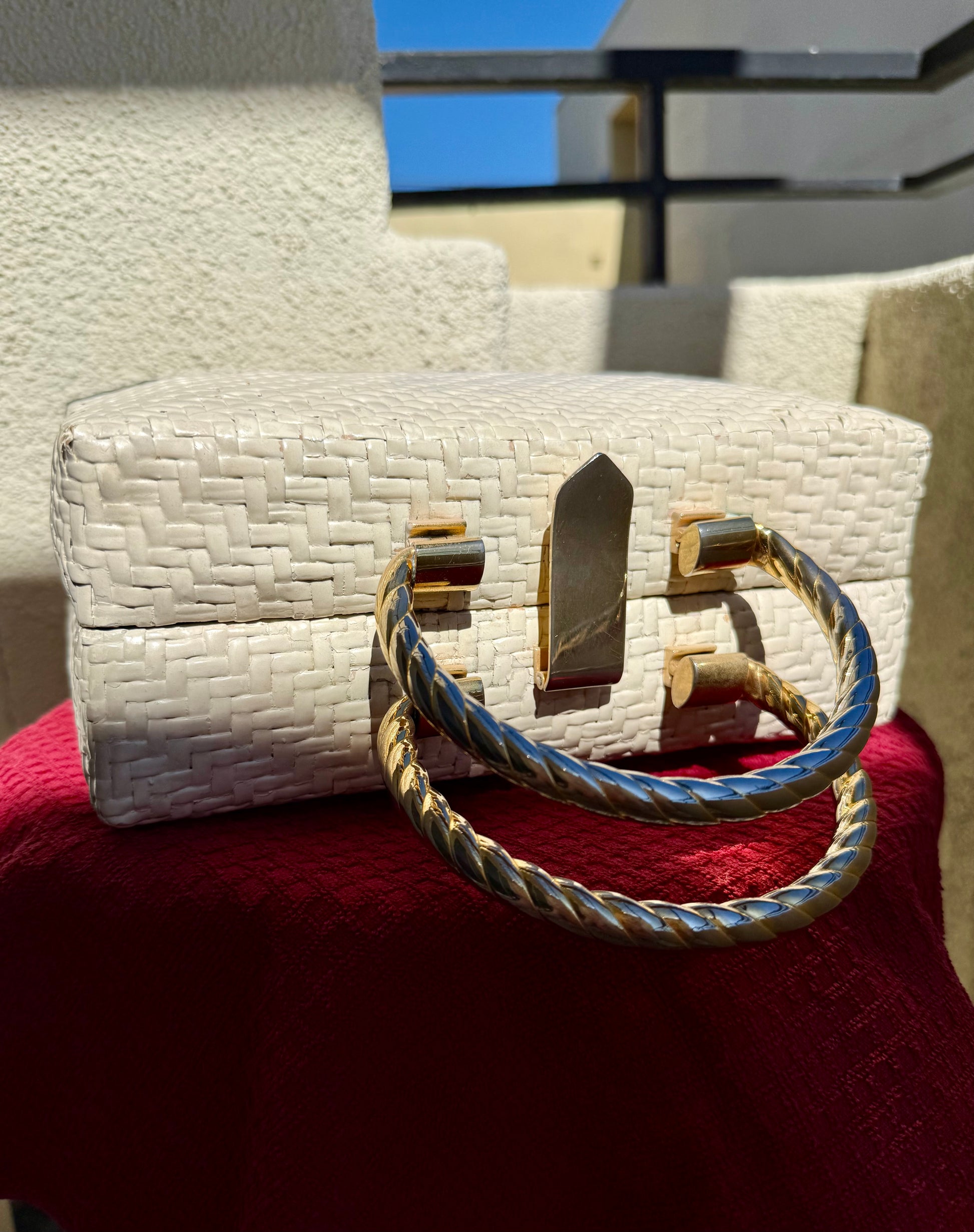 1950s Vintage KORET Elegant White Wicker Luxury Purse/Handbag, Made in Italy, Excellent Condition