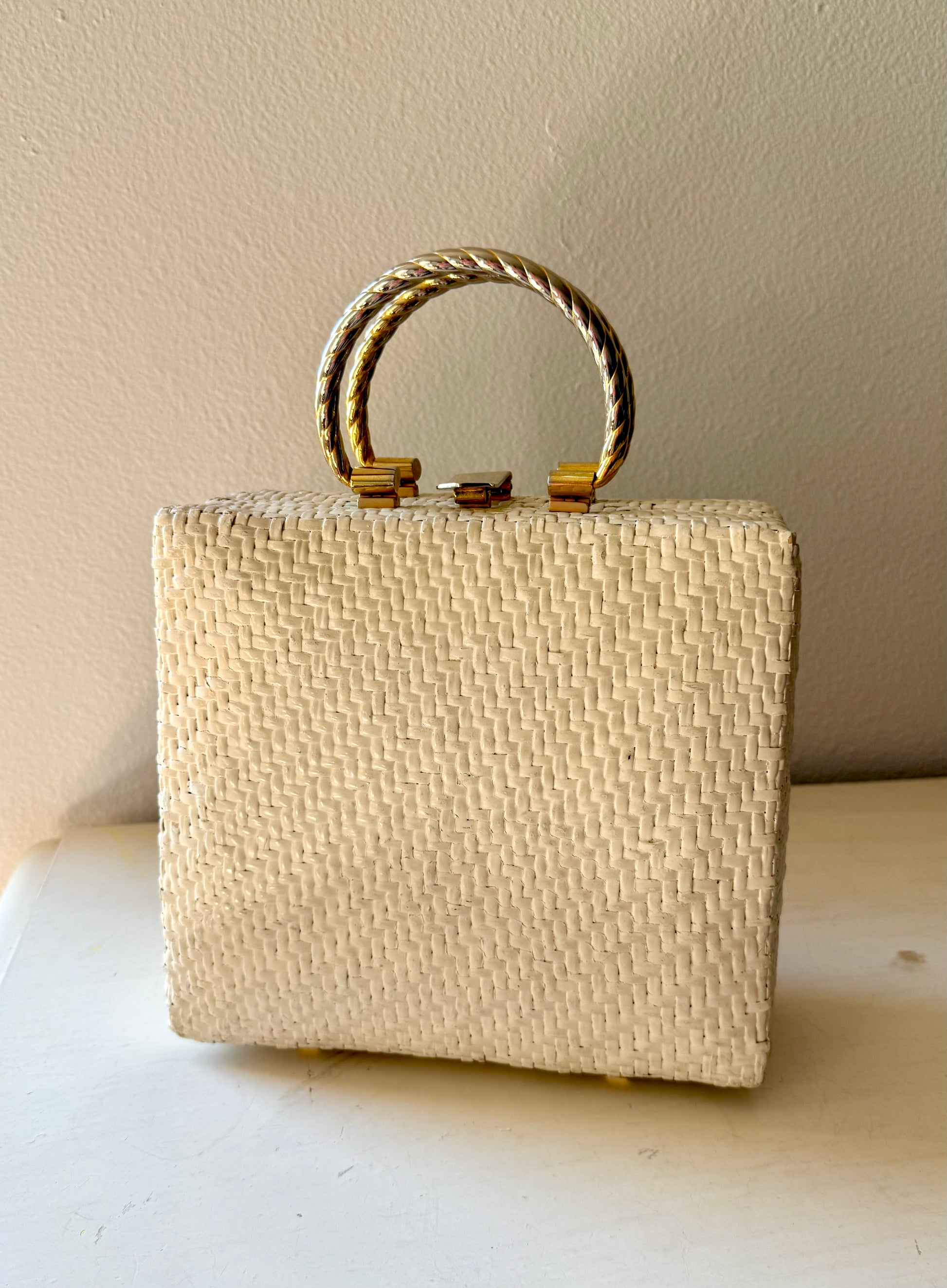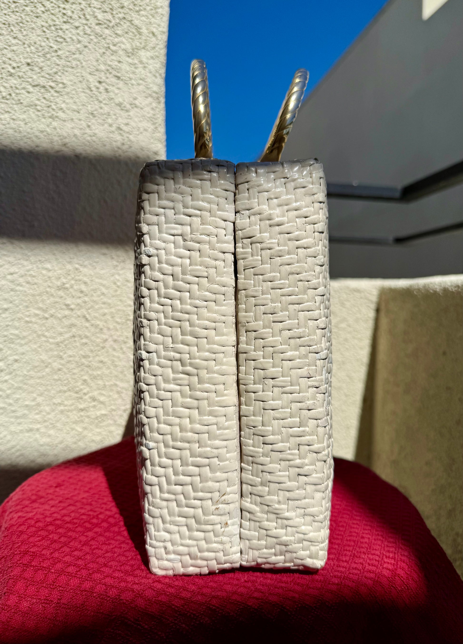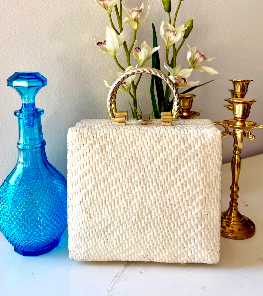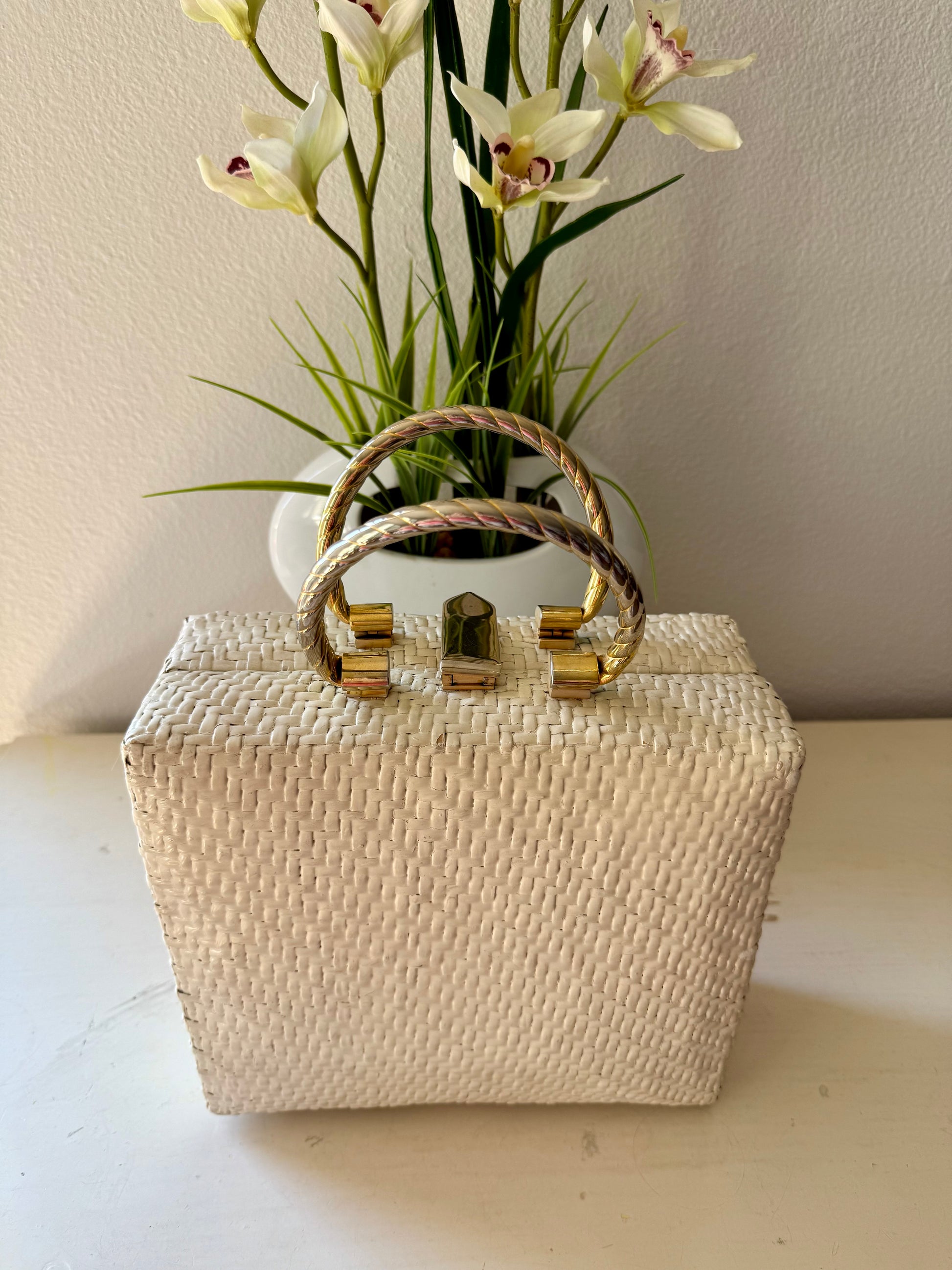 1950s Vintage KORET Elegant White Wicker Luxury Purse/Handbag, Made in Italy, Excellent Condition