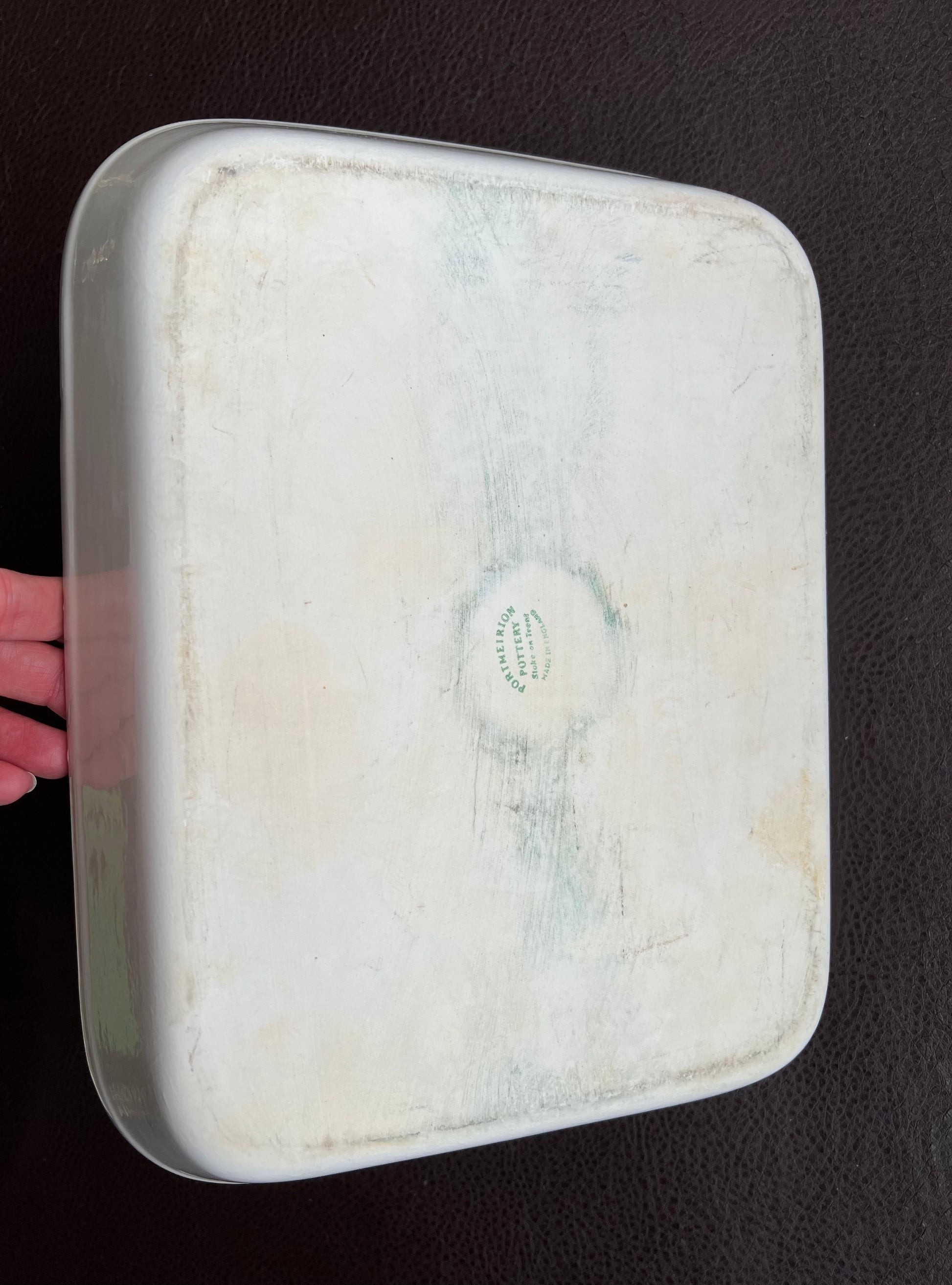 This beautiful very rare & hard to find Portmeirion pottery “Wood Duck” baking dish is in excellent condition. The lower (back) part of the baking dish (because it’s not just a serving dish) is discolored due to intended use. Otherwise, there are no scratch or chips. Made in England.