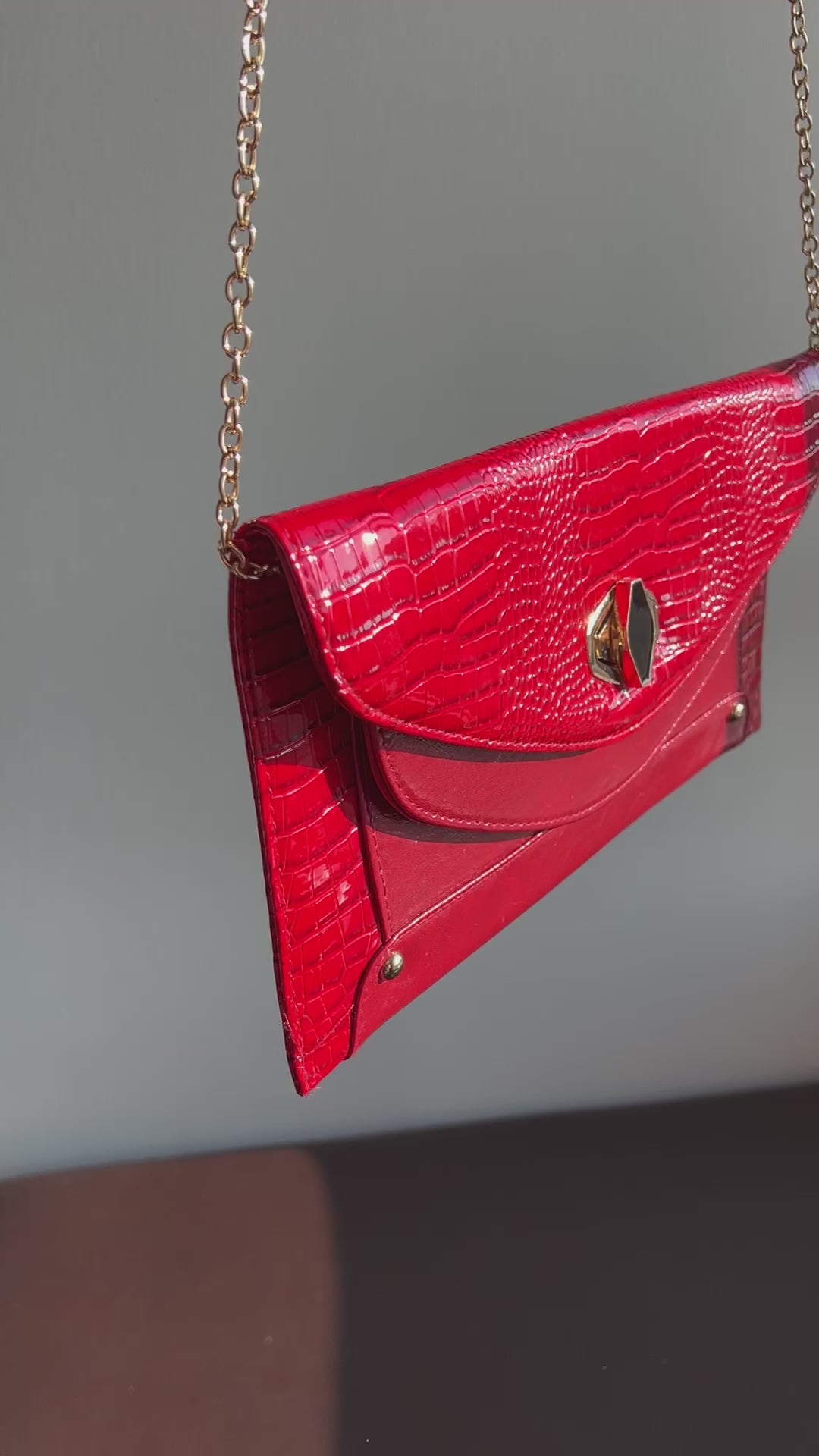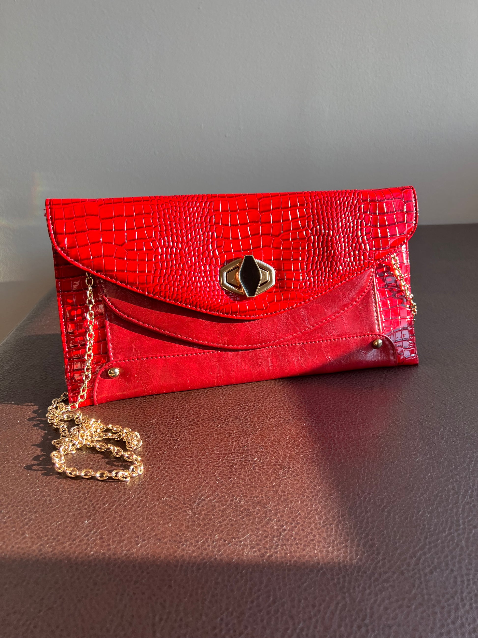 Kelly & Katie Red Vintage Snake Embossed Clutch Purse/ Handbag with Chain Strap