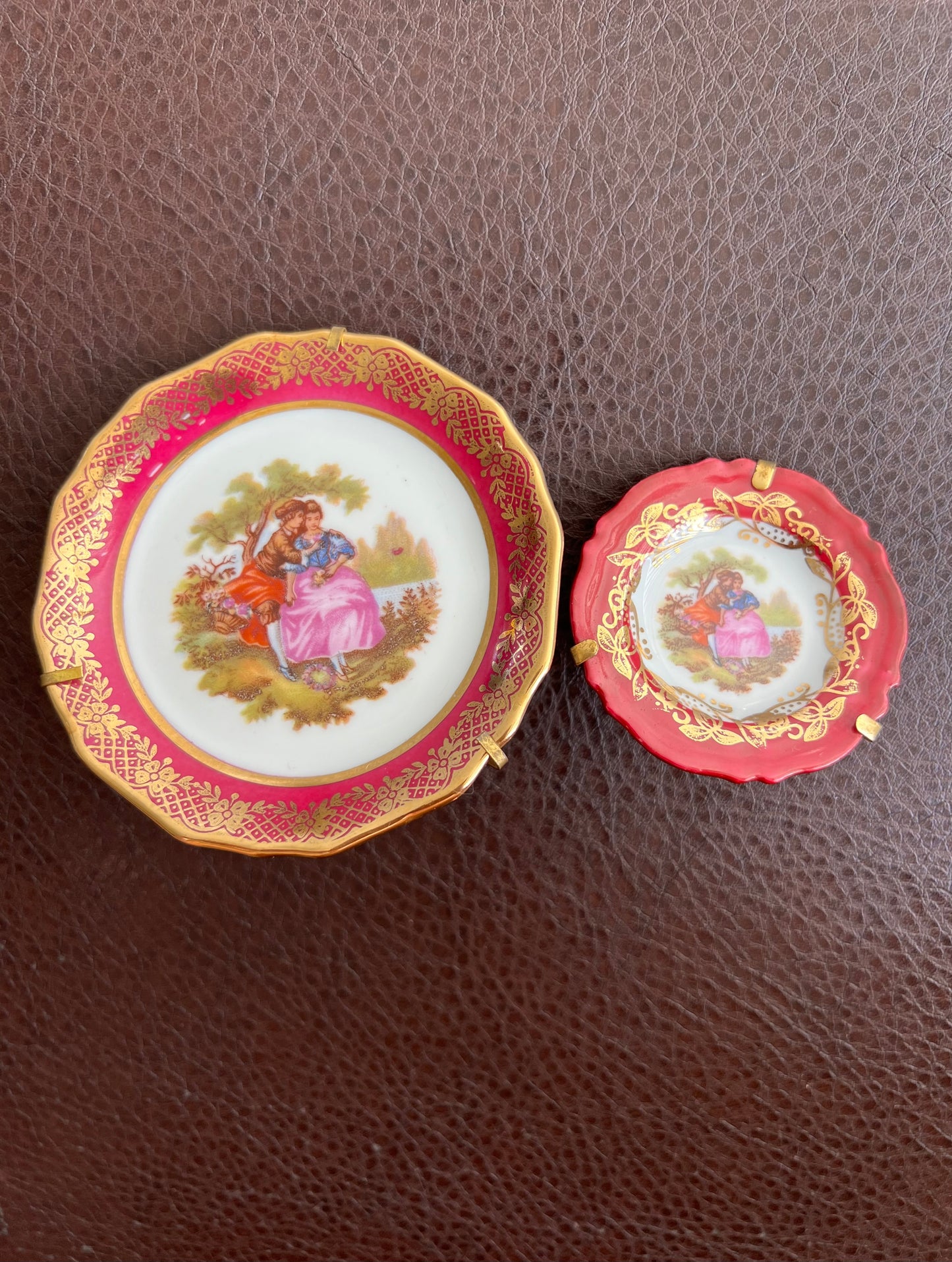Limoges Vintage Miniature Porcelain Pink Rimmed Plate with Victorian Courting Couple (I already sold the small plate - the big is available)