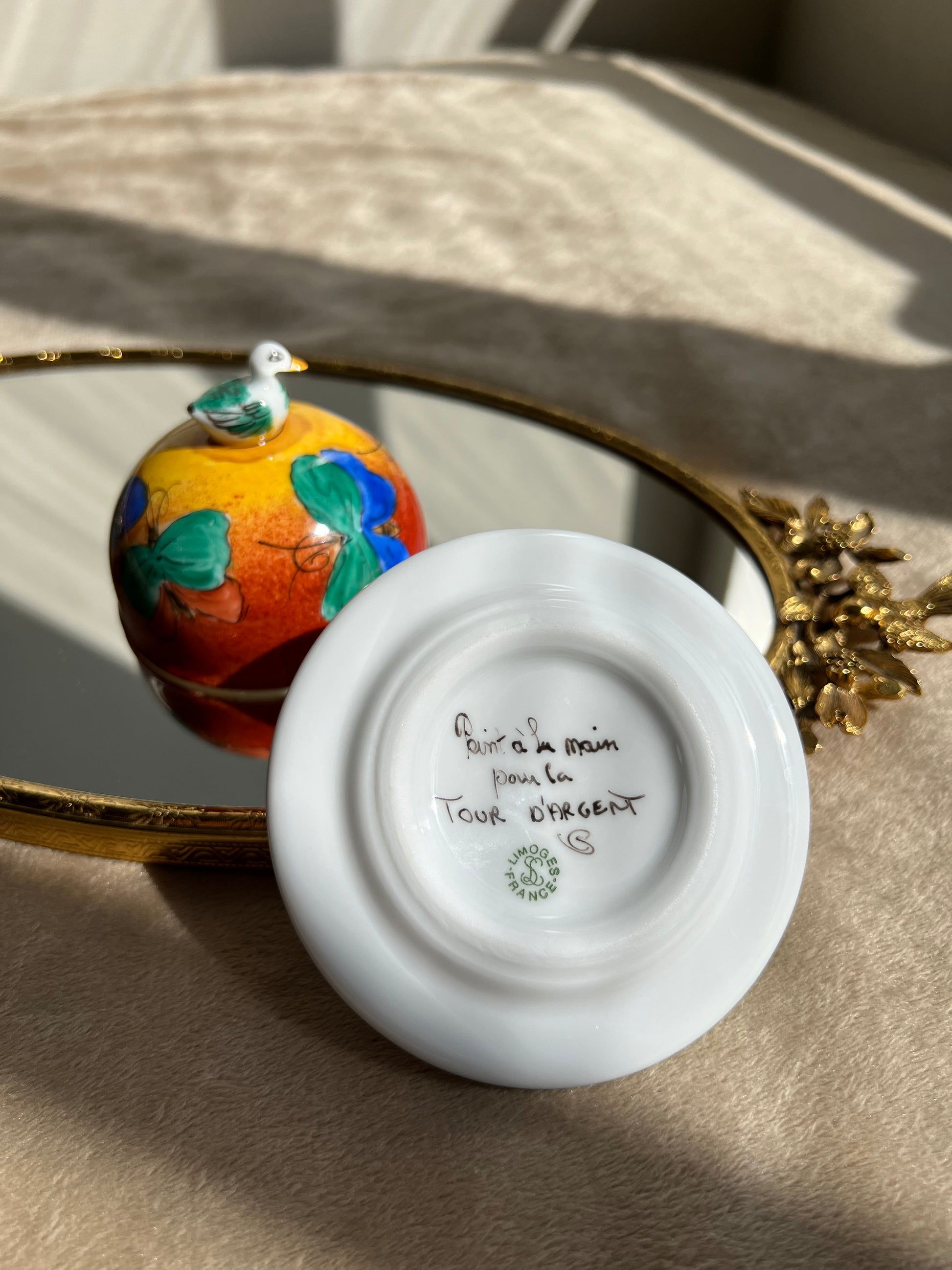 Limoges Porcelain Vintage Butter Dish Dome with Duck on the Lid