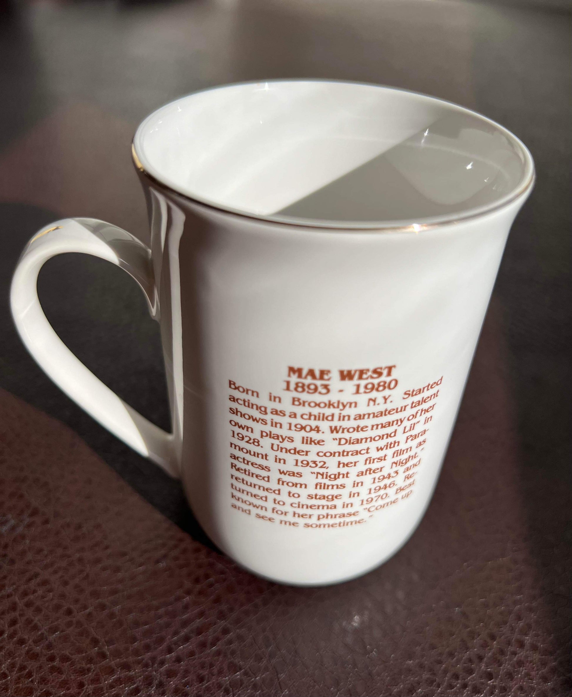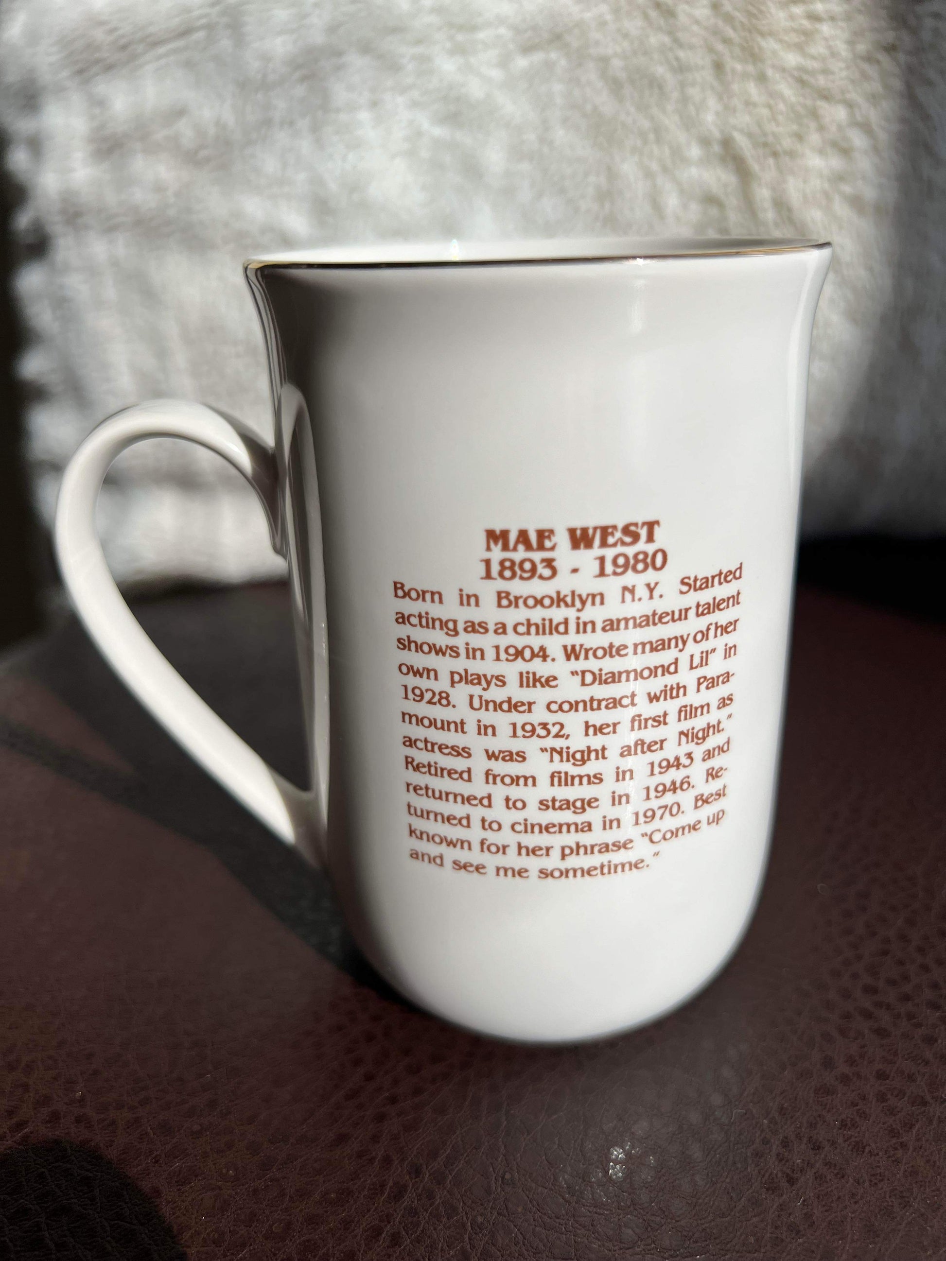 Vintage Hollywood Hall of Fame Museum Mae West porcelain mug