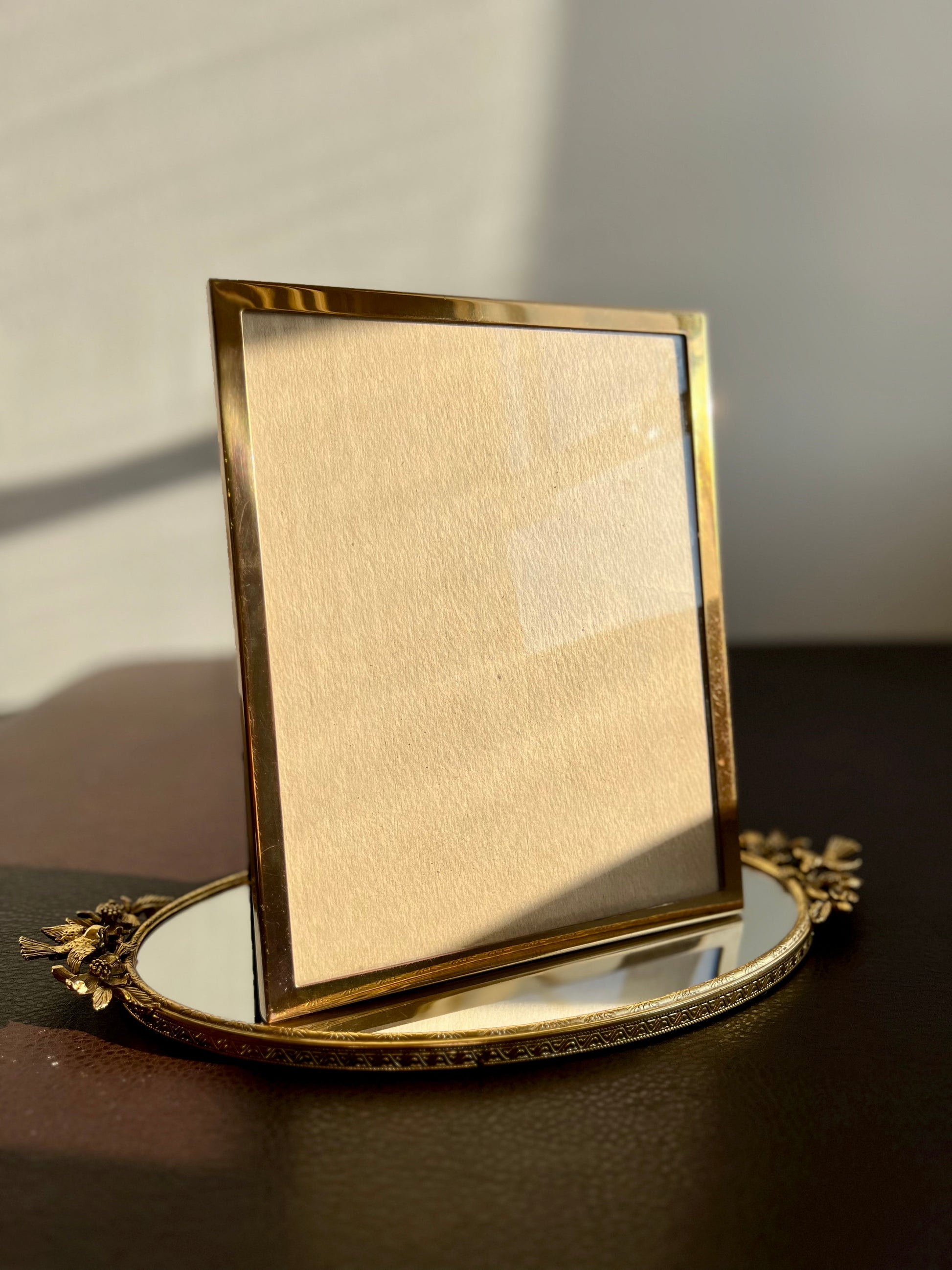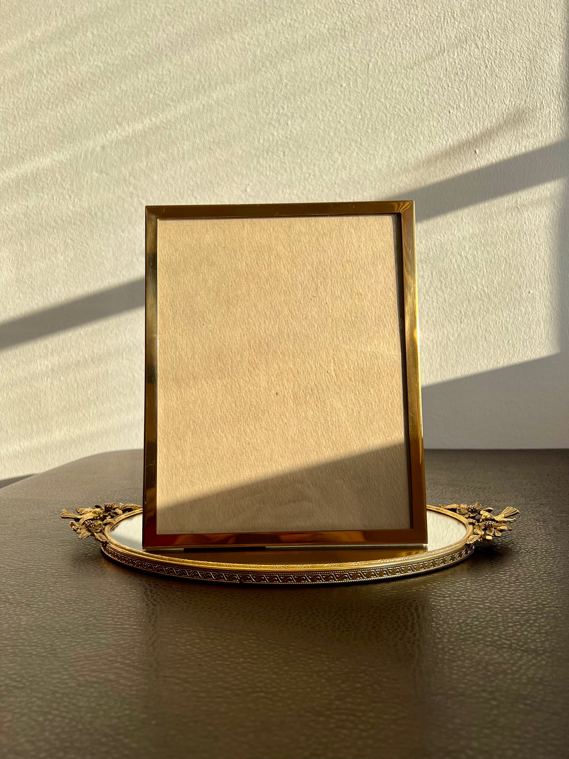 Beautiful Gold Tone Metal Vintage 8 X 10 Elegant Photo/ Picture Frame and Plush Cover on the Back, from Beverly Hills Estate Sale