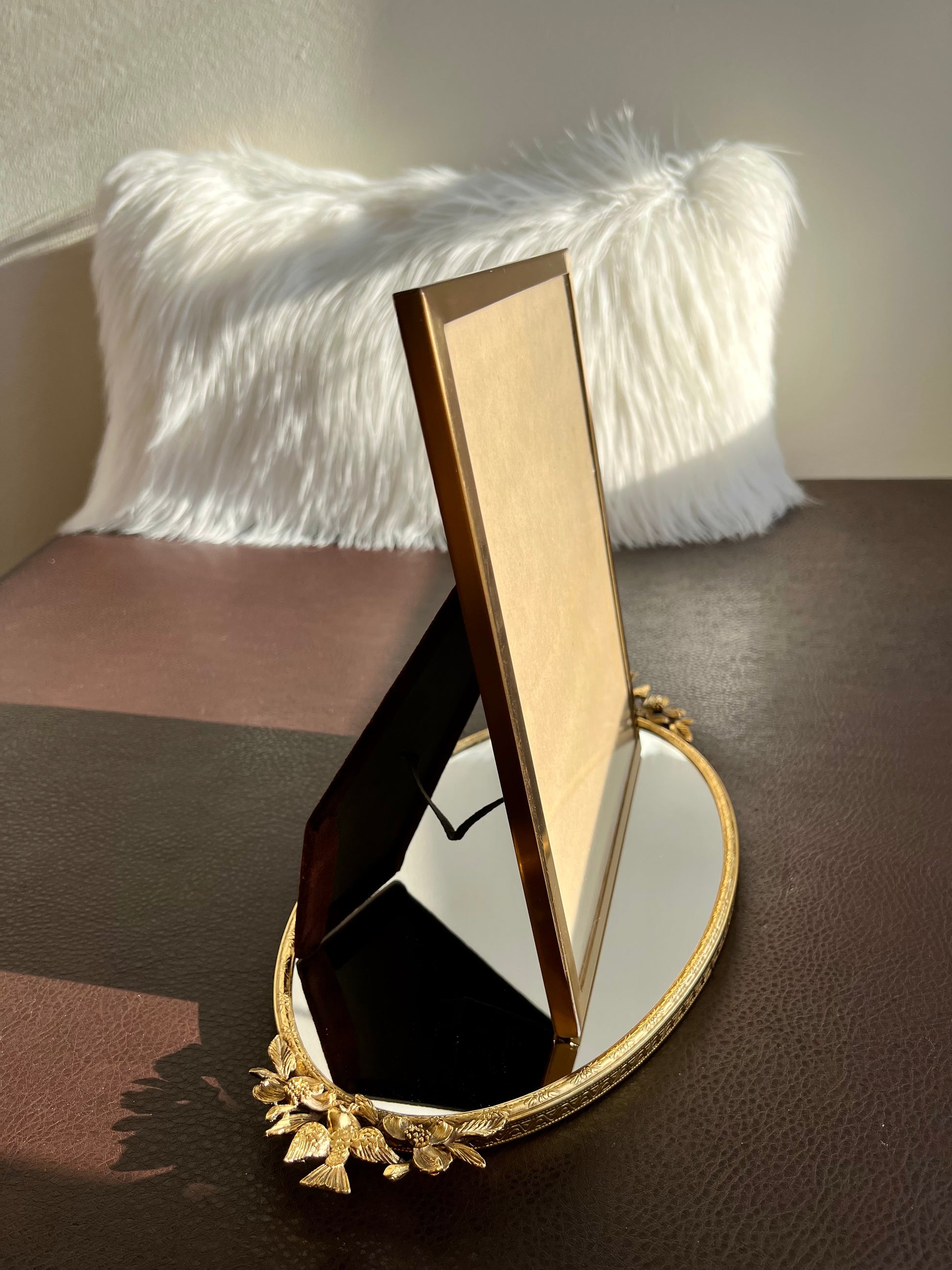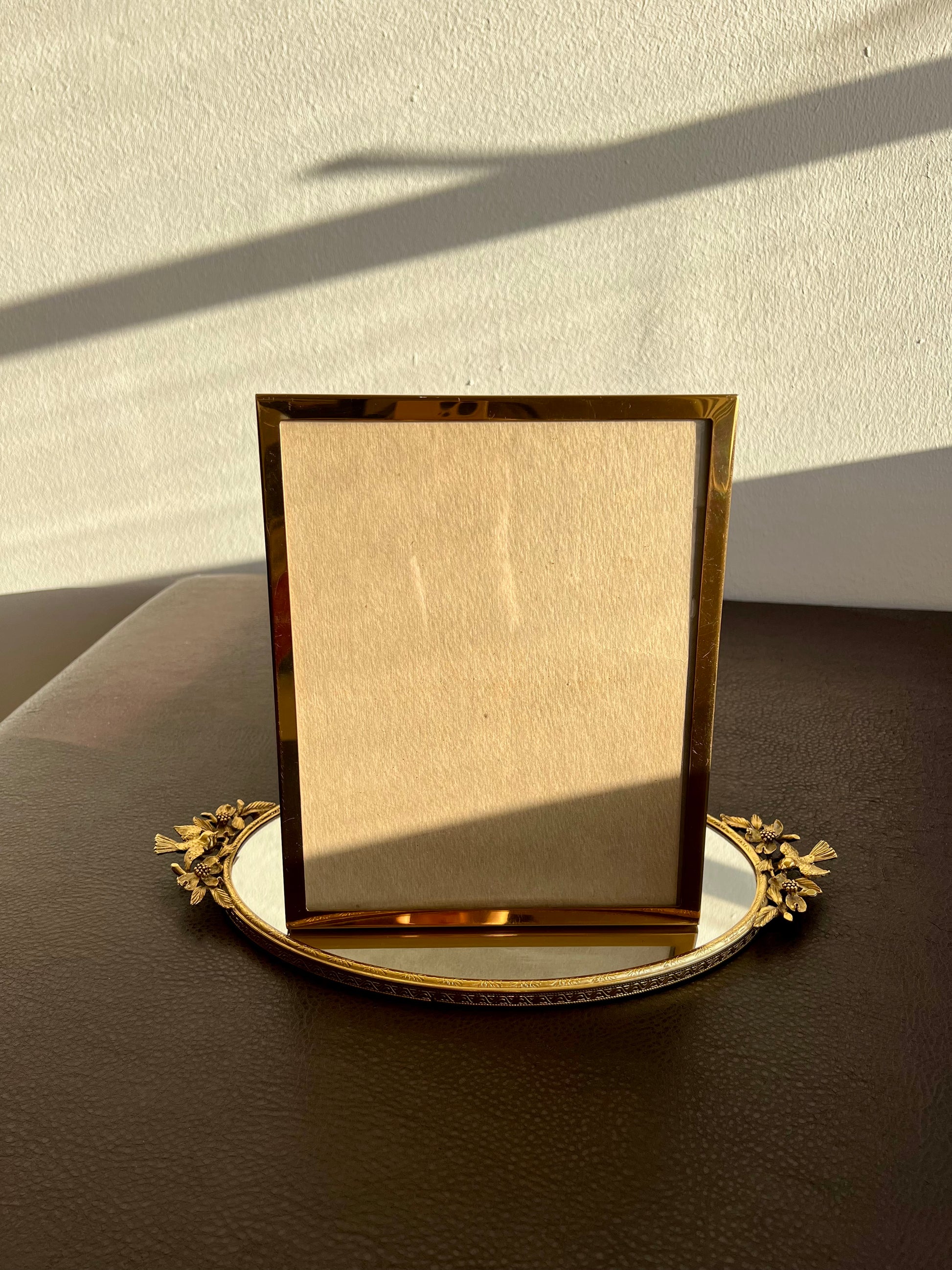 Beautiful gold tone metal vintage, very elegant, luxury photo or picture frame. The back of the picture frame is covered with a black plush coating. It’s in excellent vintage condition.