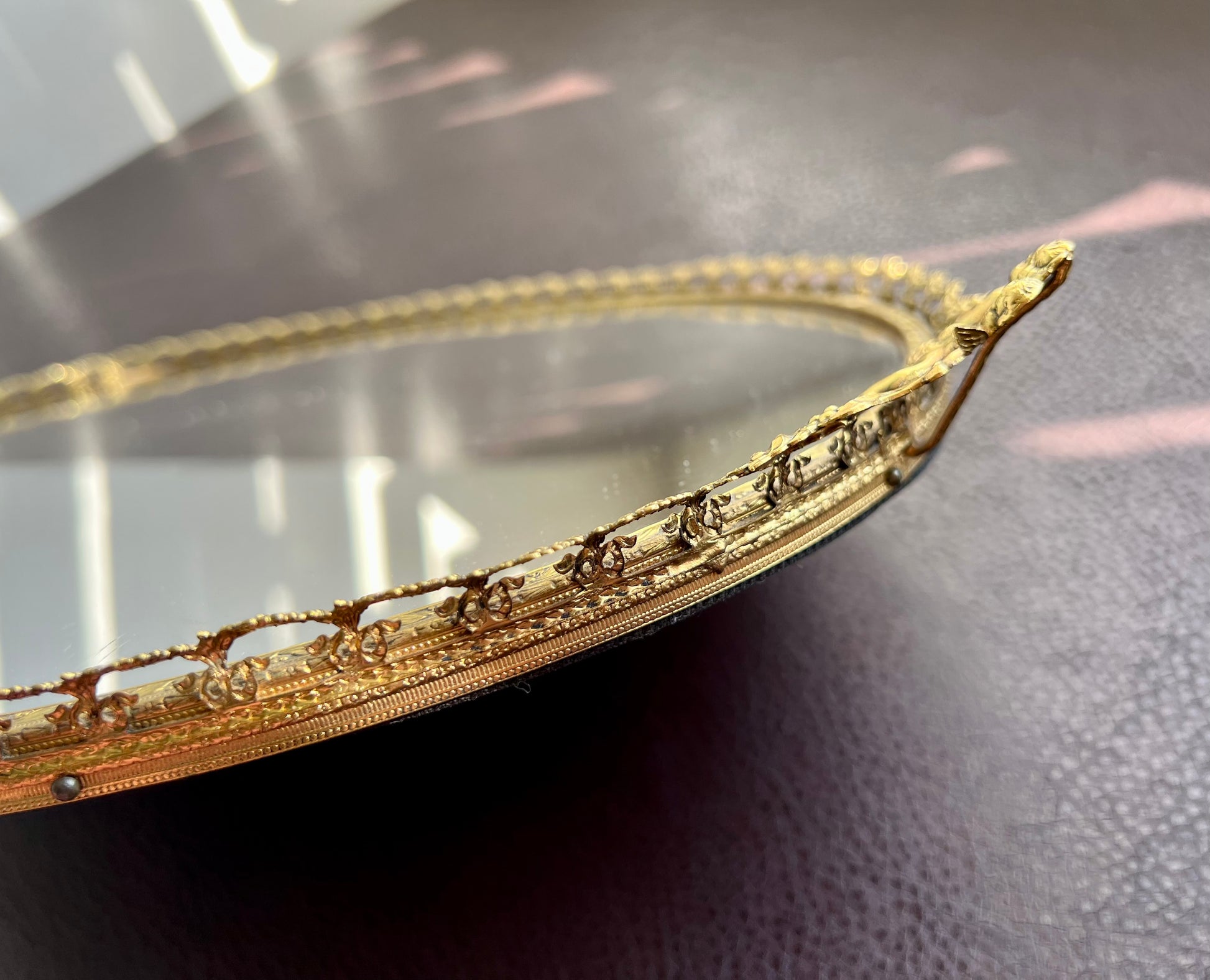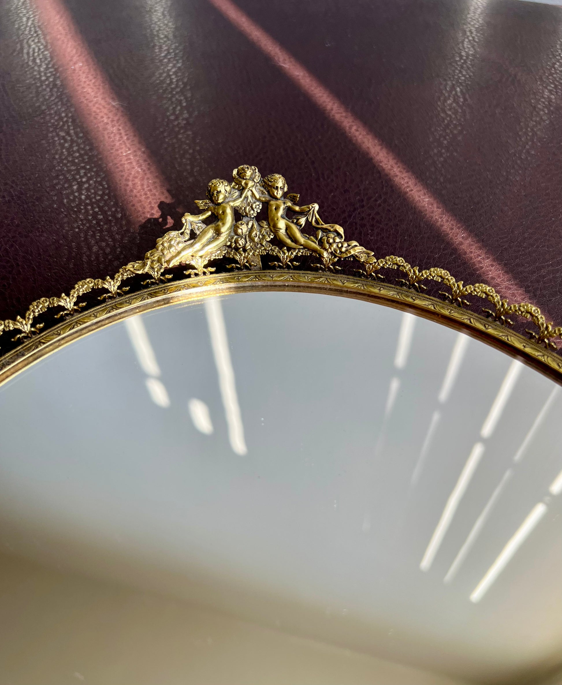 Cherubs Angels Brass Gold Vintage Ormolu Mirror Vanity Tray Oval