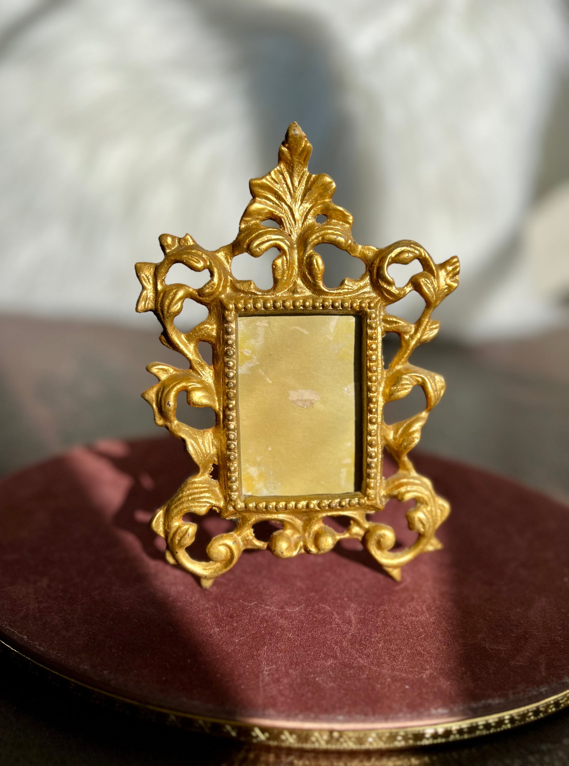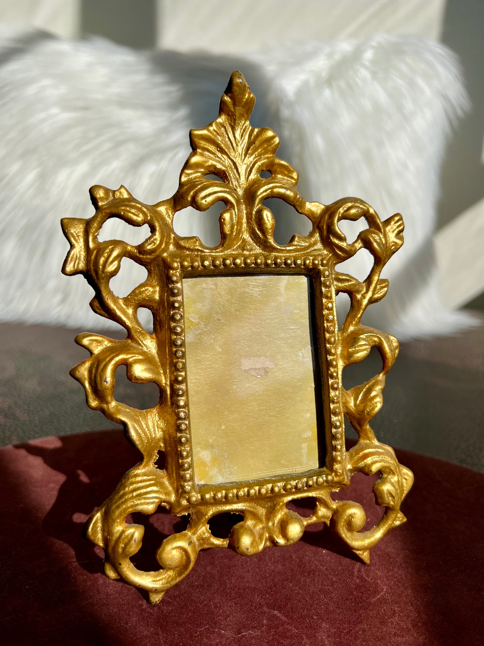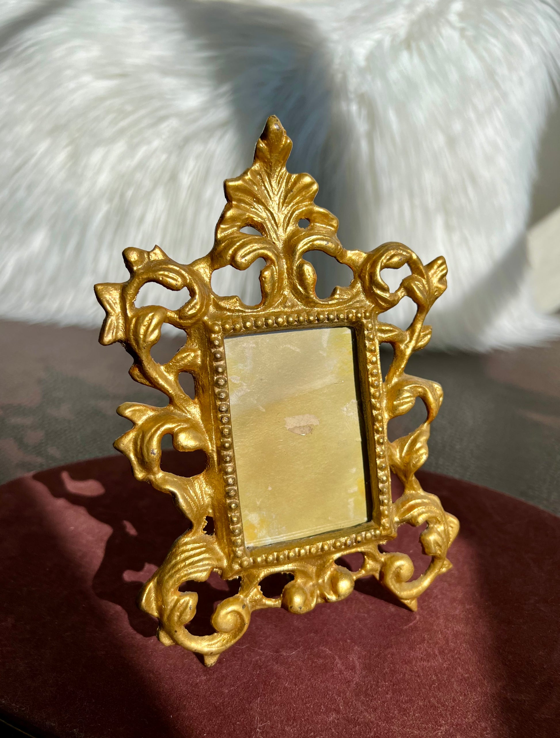 French Ornate Victorian Rococo Style Heavy Metal Brass Vintage Mini Square Picture Frame with Golden Gilt Finish (1 pc)