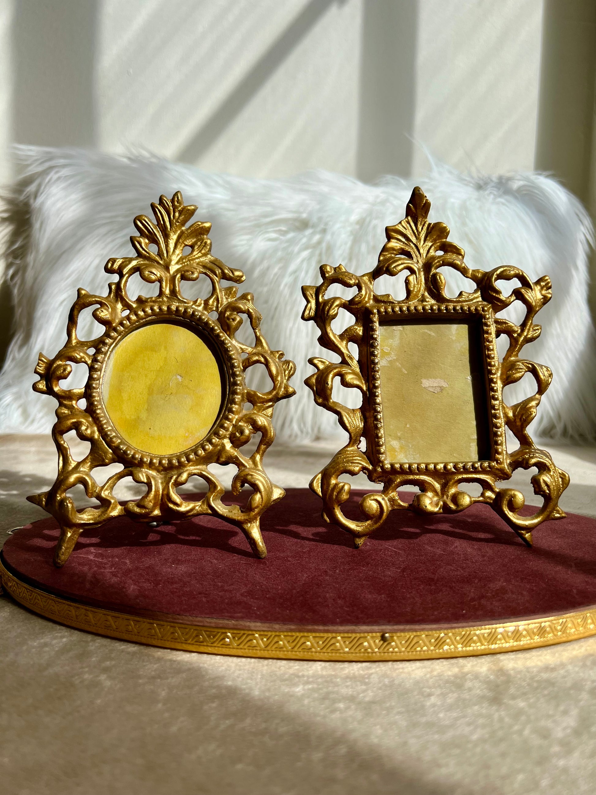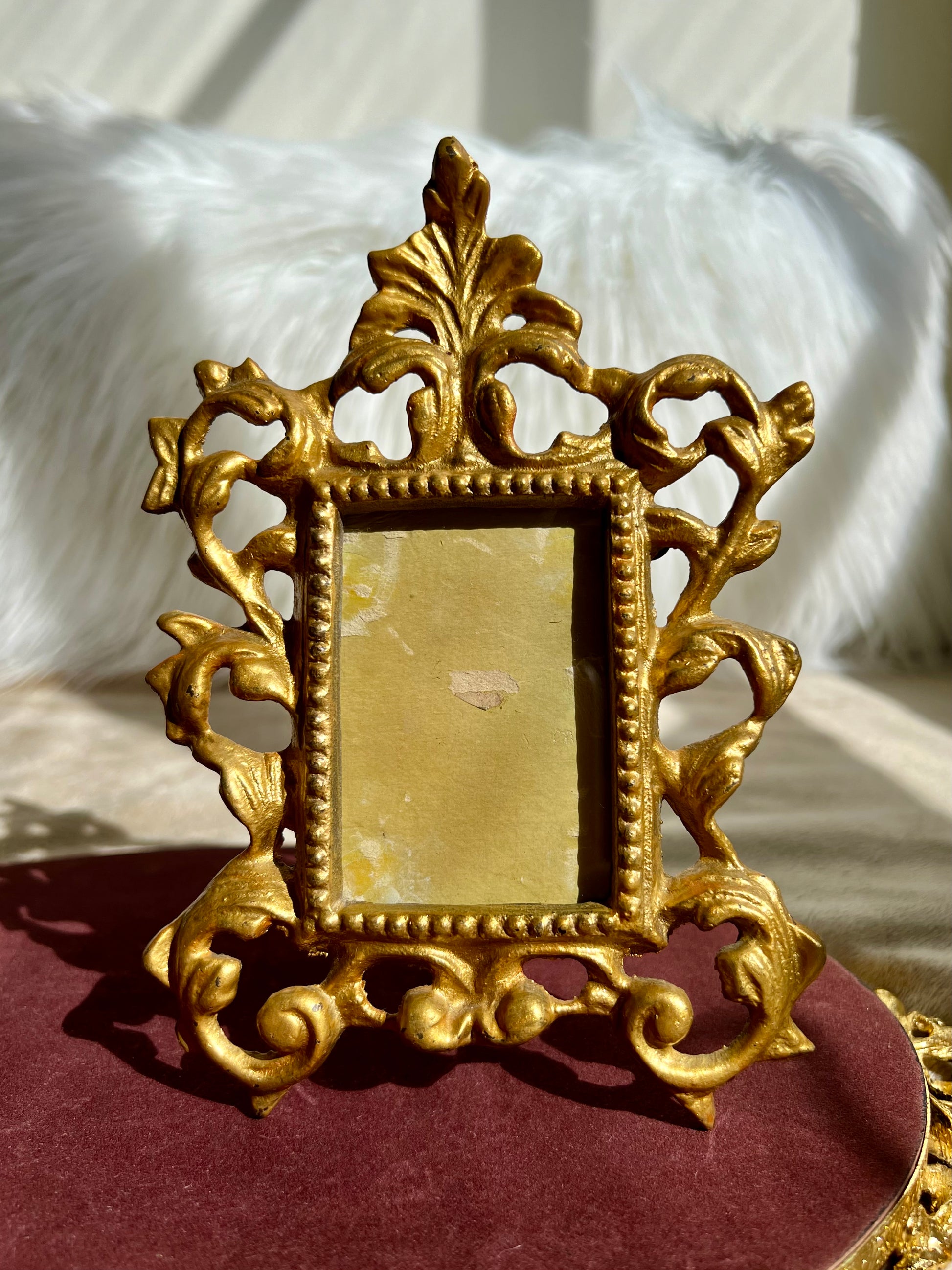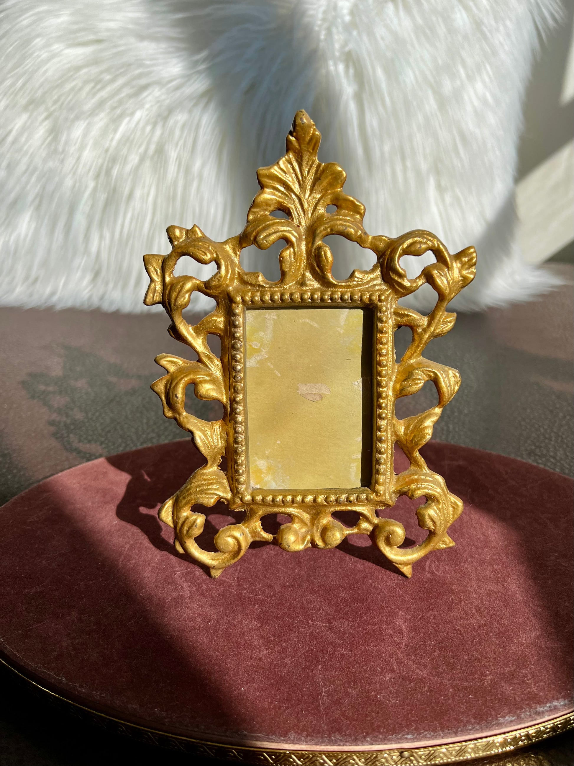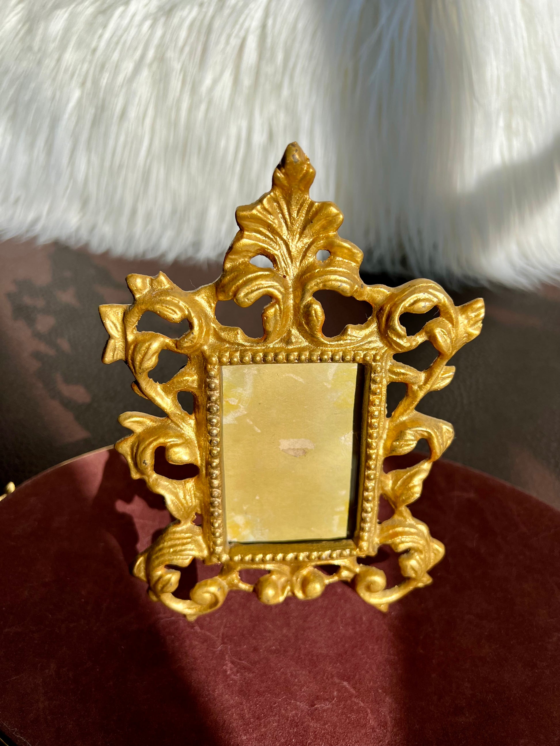 French Ornate Victorian Rococo Style Heavy Metal Brass Vintage Mini Square Picture Frame with Golden Gilt Finish (1 pc)