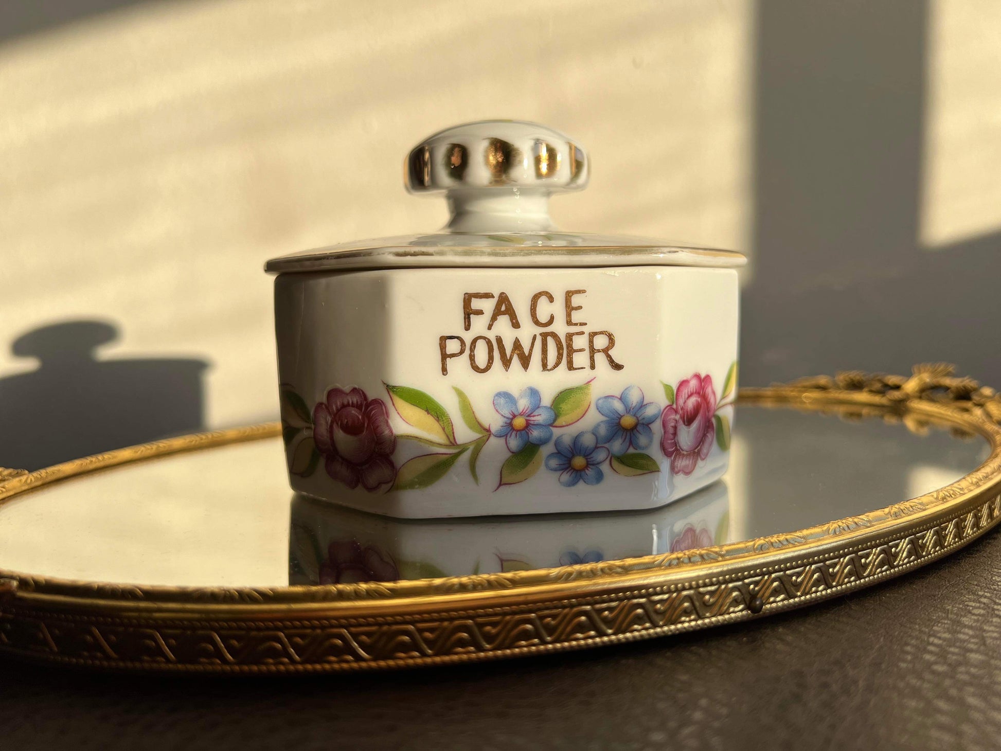 Lady Barrington Vintage Japan Face Powder Floral Porcelain Jar