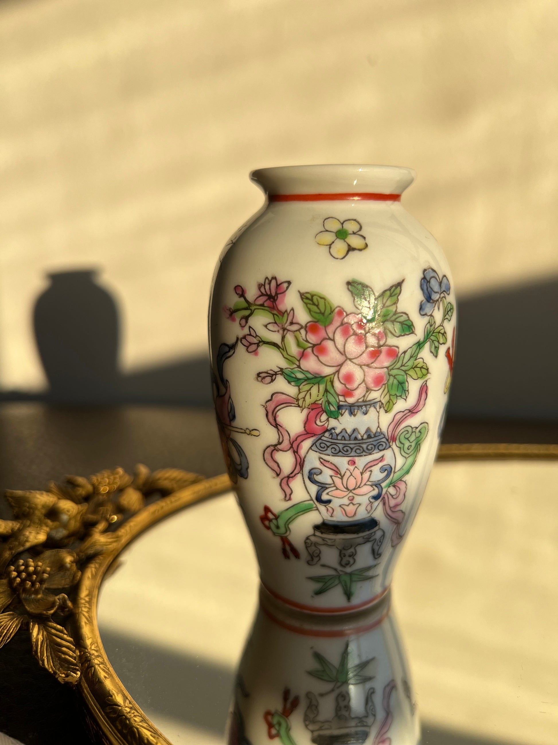 Vintage Miniature Chinese Porcelain Famille Rose Elegant Hand-painted Vase with Floral Decoration