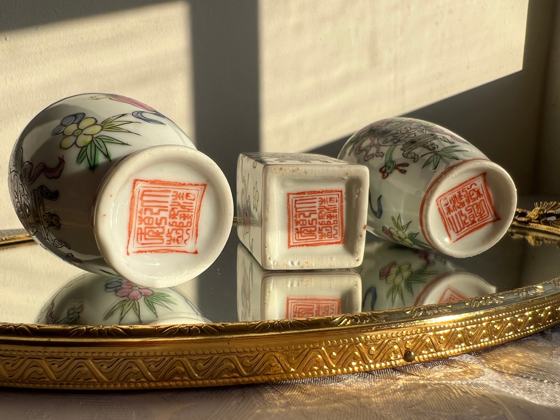 Beautiful vintage miniature chinese handmade and hand-painted porcelain famille rose elegant vase with floral decoration. It’s in excellent vintage condition.