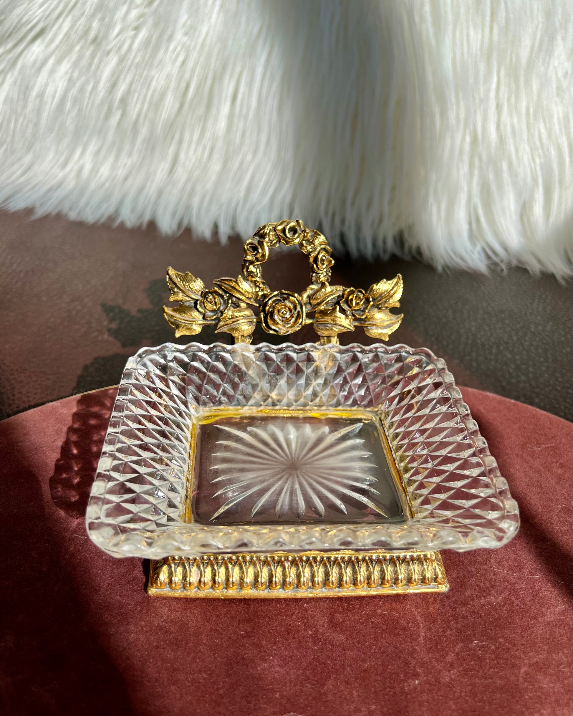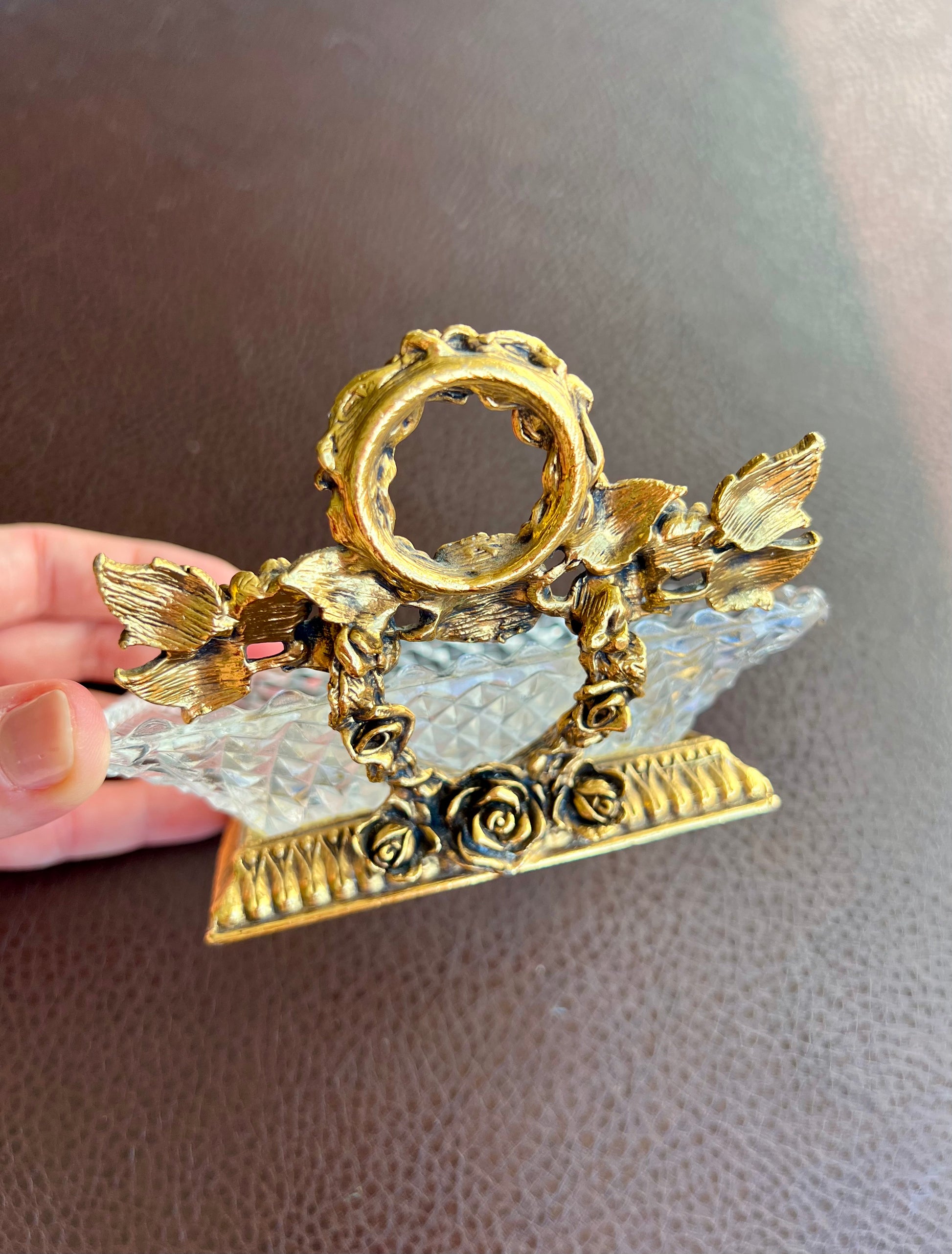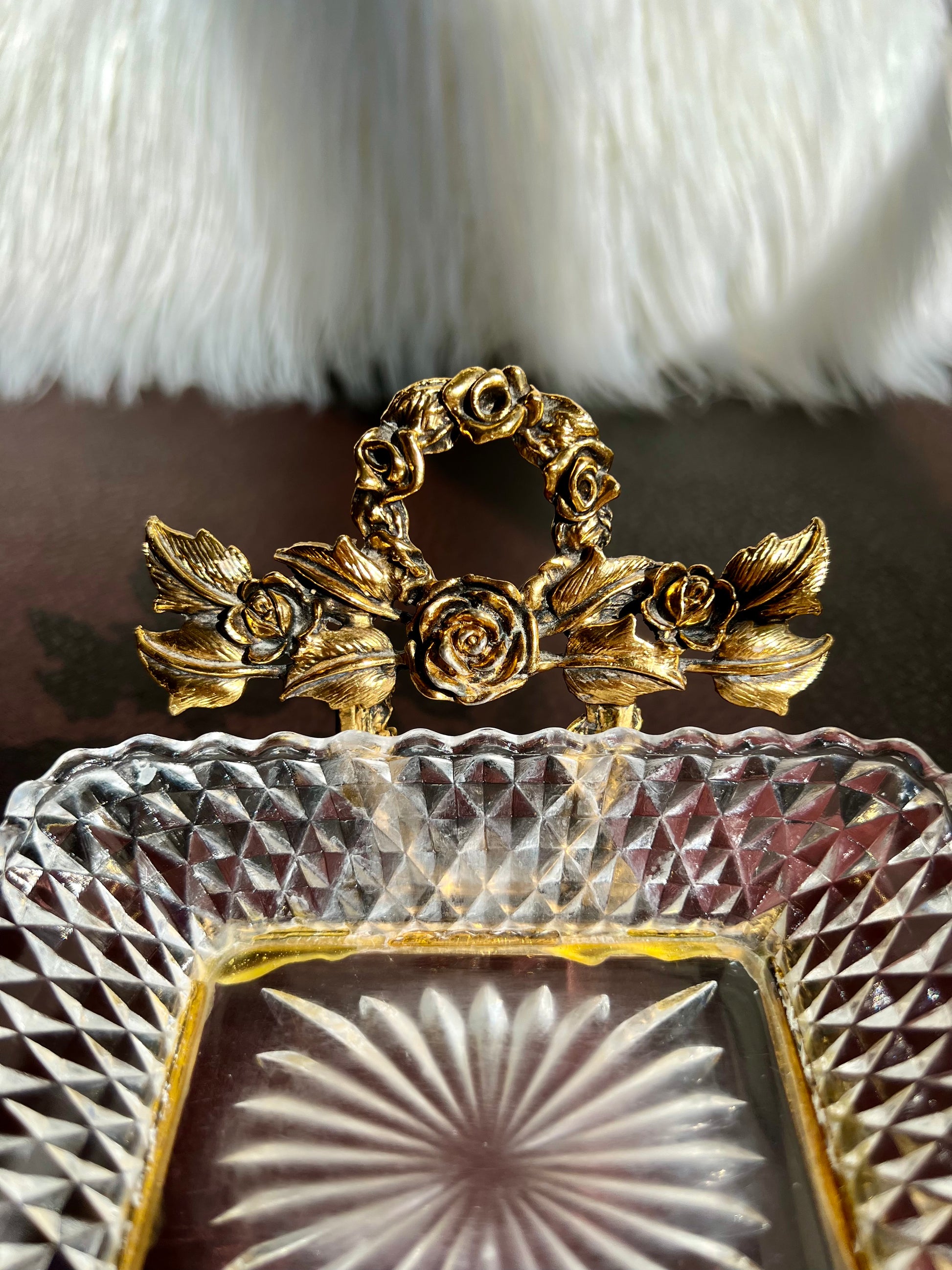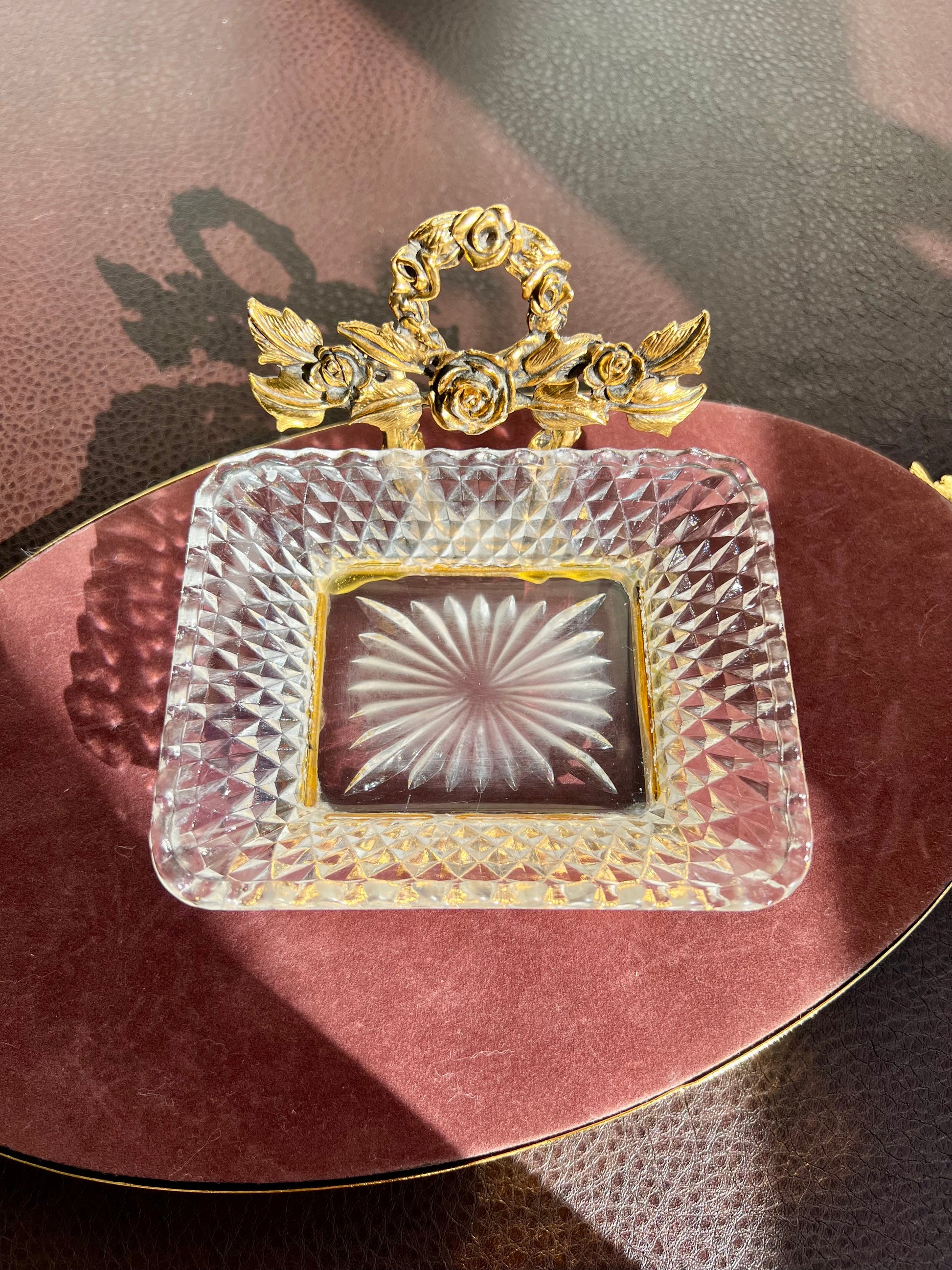 Hollywood Regency Gold Roses Designed with Cut Glass Soap Dish
