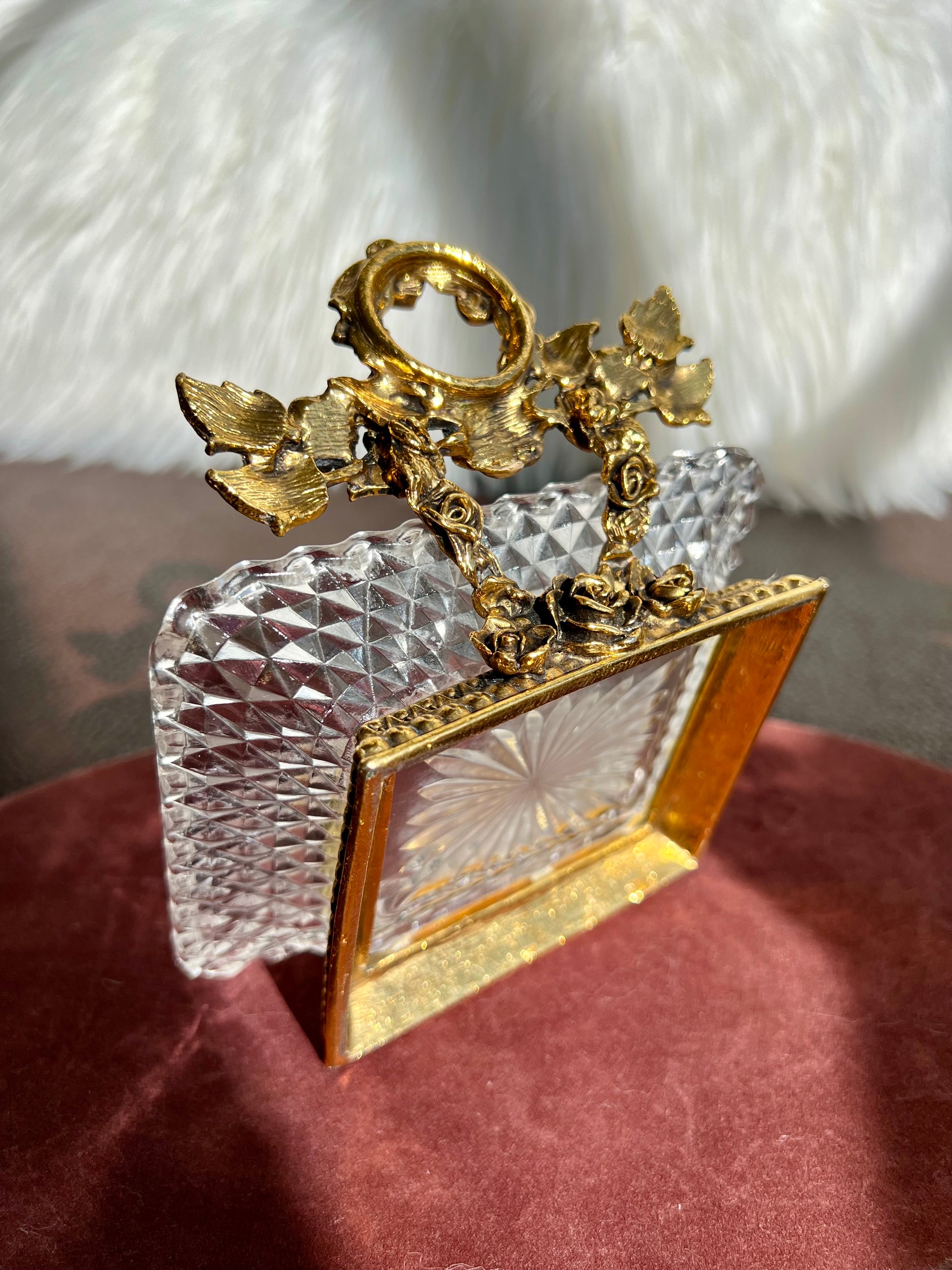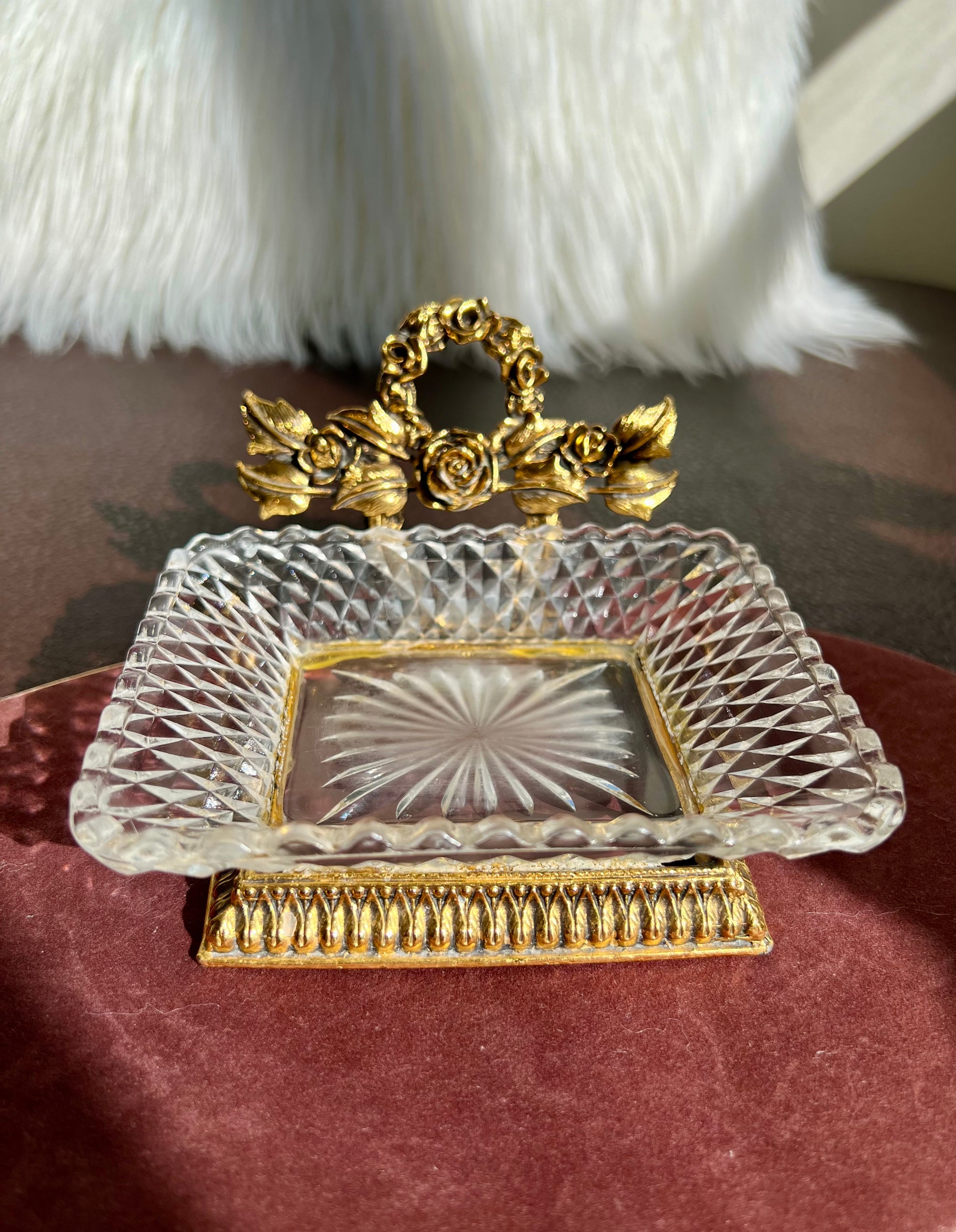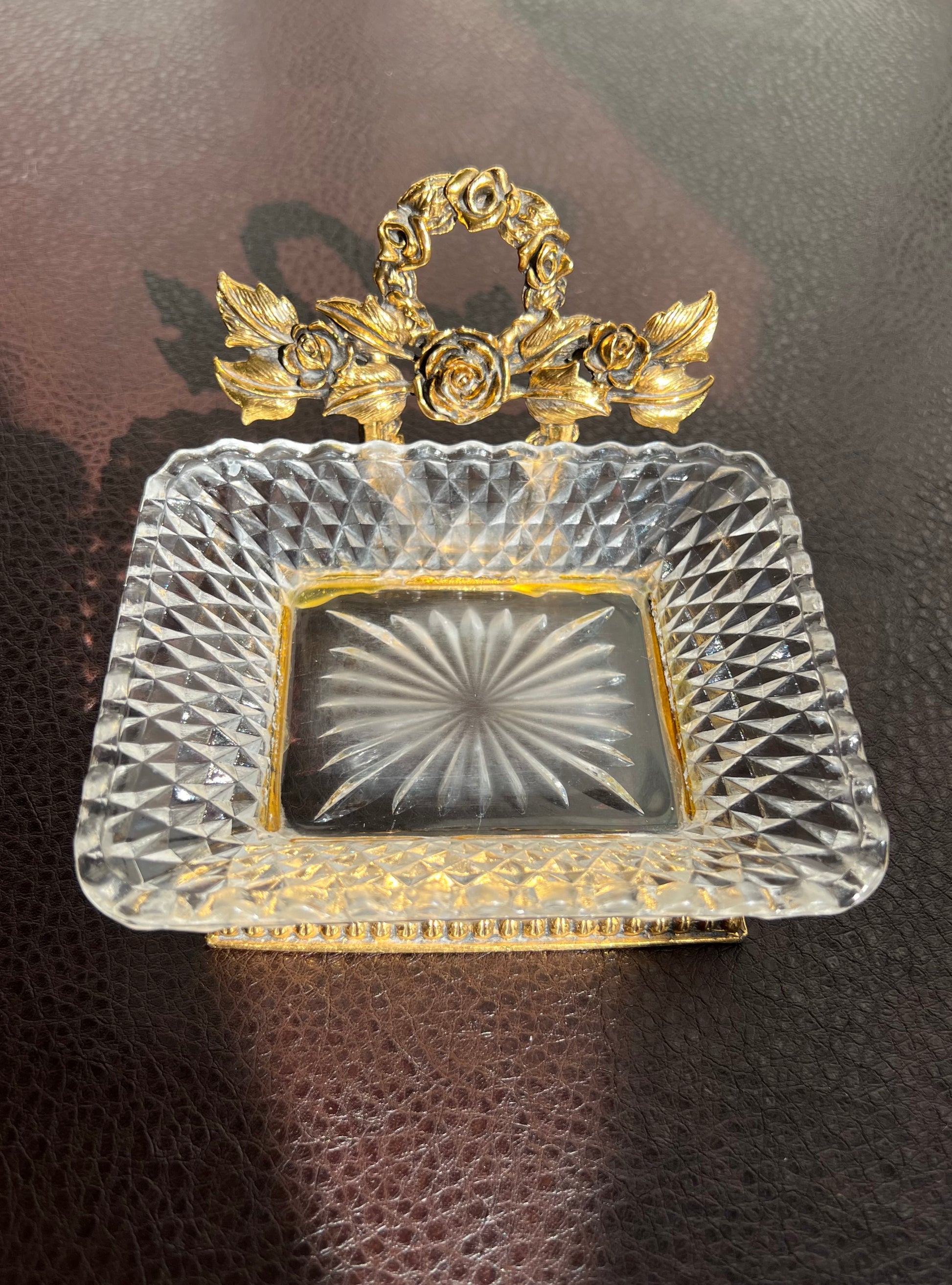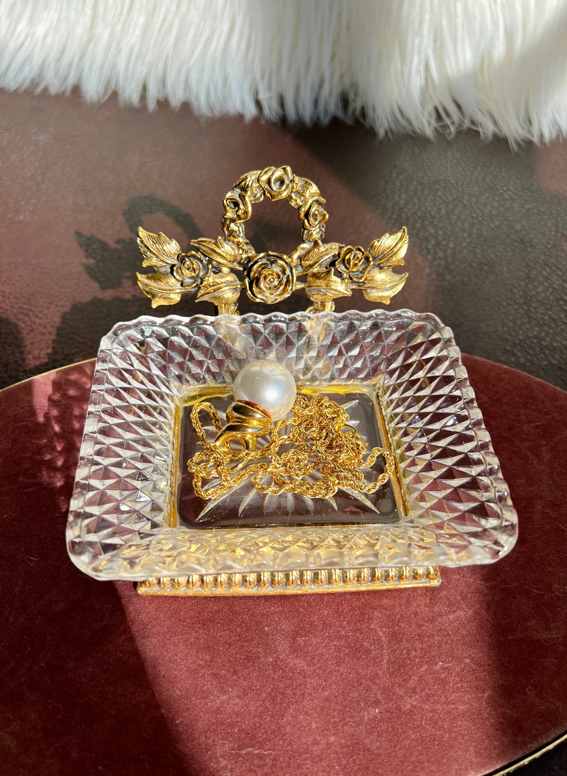 Hollywood Regency Gold Roses Designed with Cut Glass Soap Dish