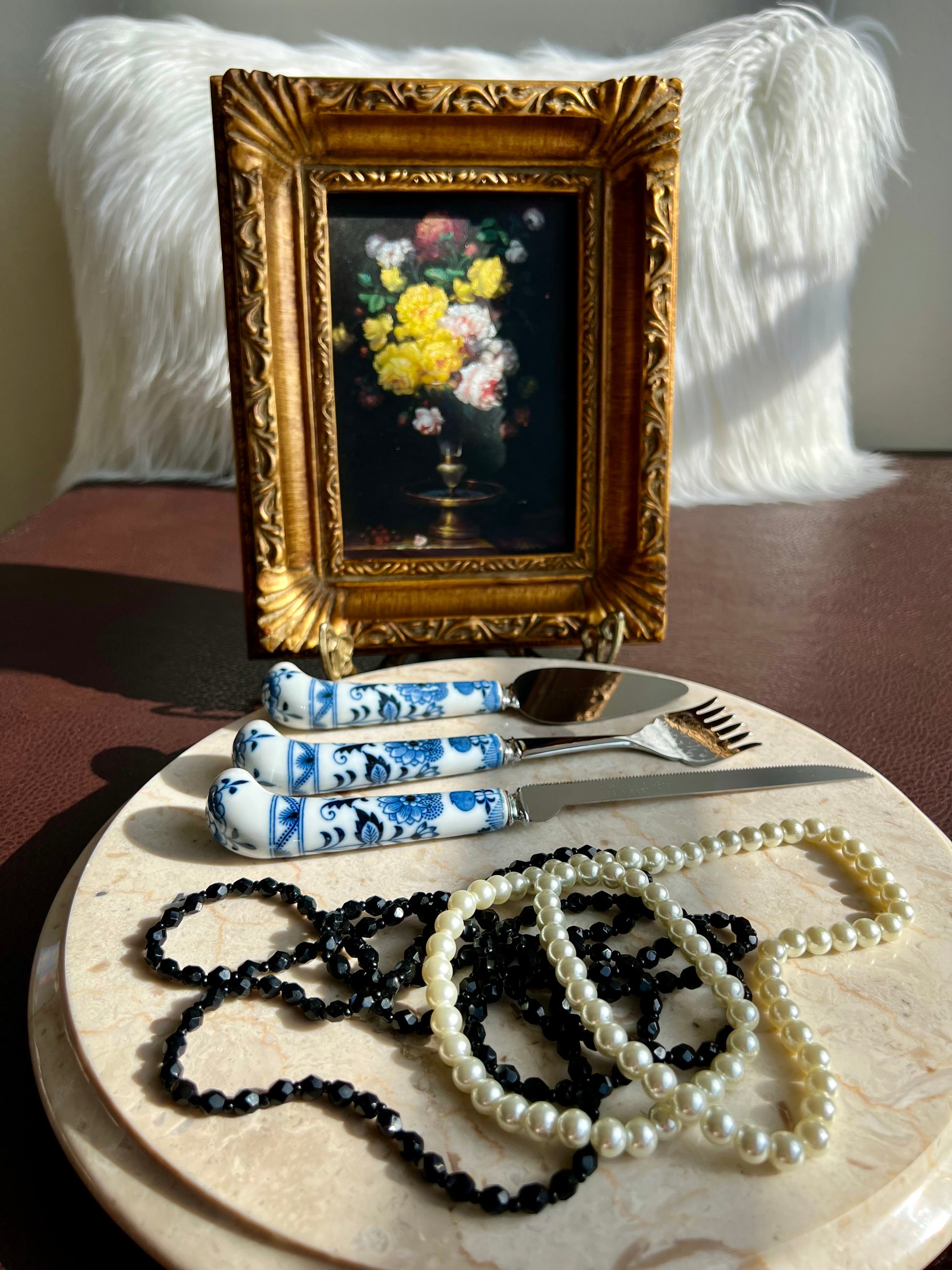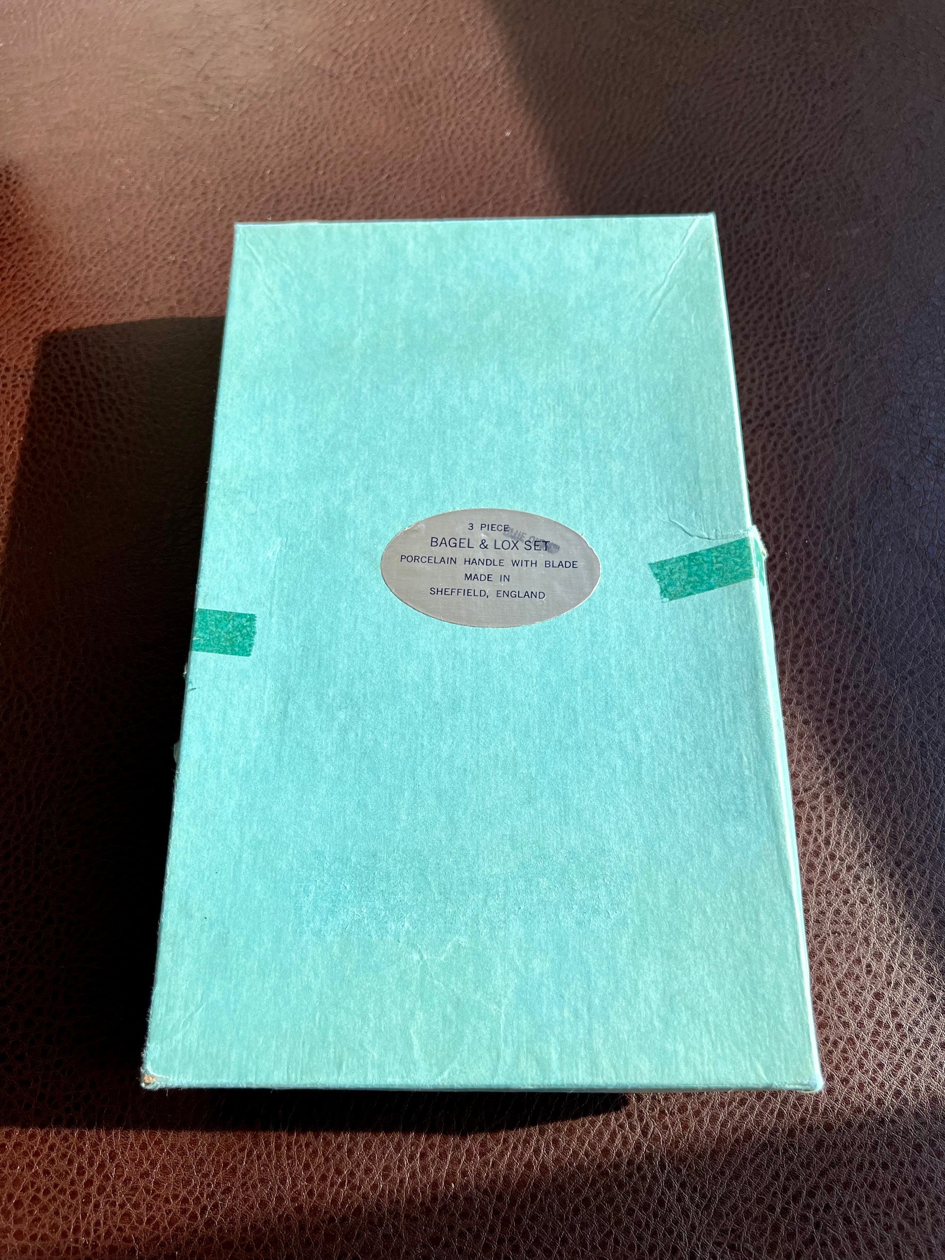 Very beautiful Sheffield (made in England) blue and white porcelain handle with blade. Bagel & Lox vintage set it’s in original box.(3 piece) These are in excellent (very good) vintage condition. It looks to me like the set has never been used.
