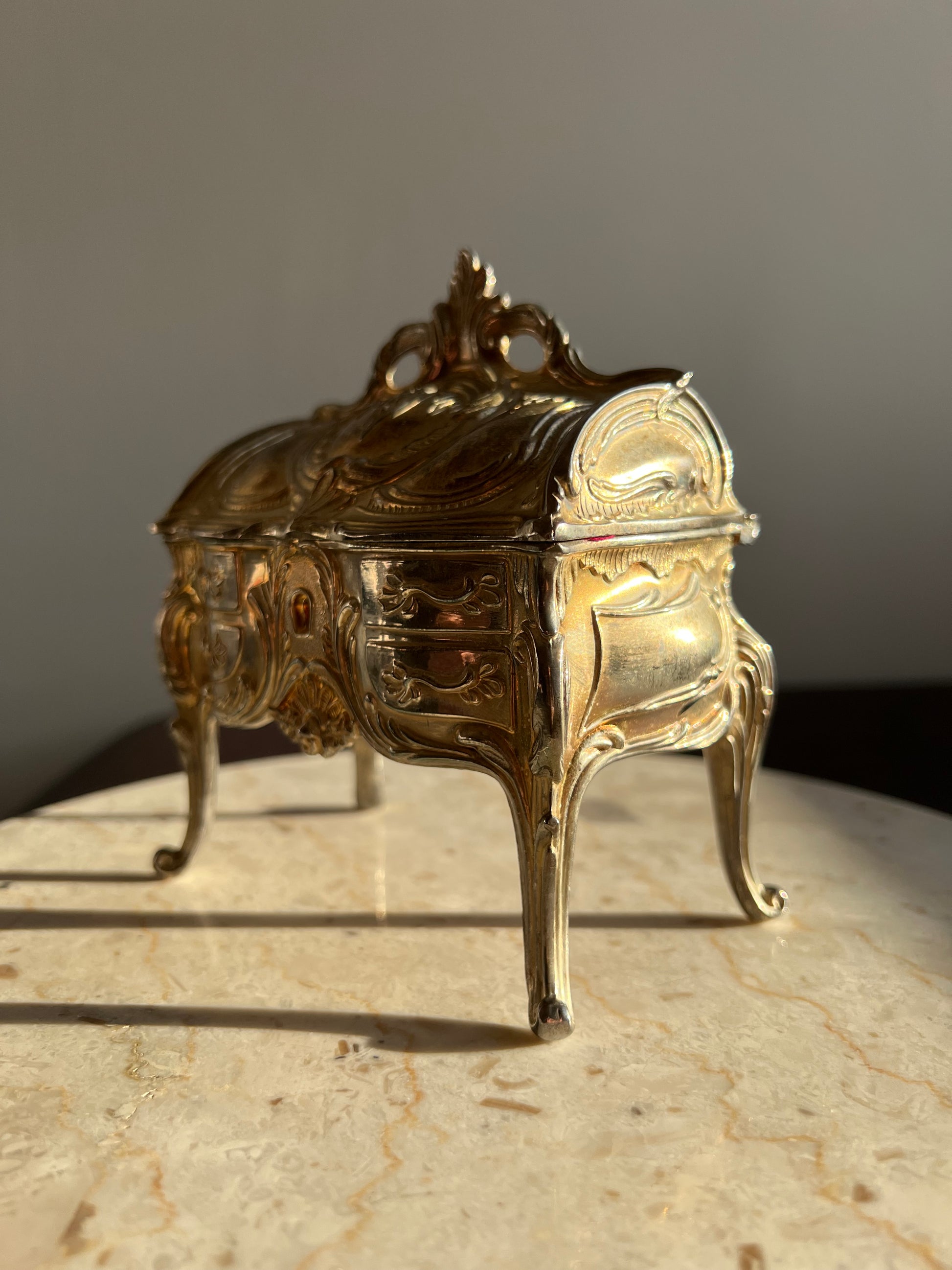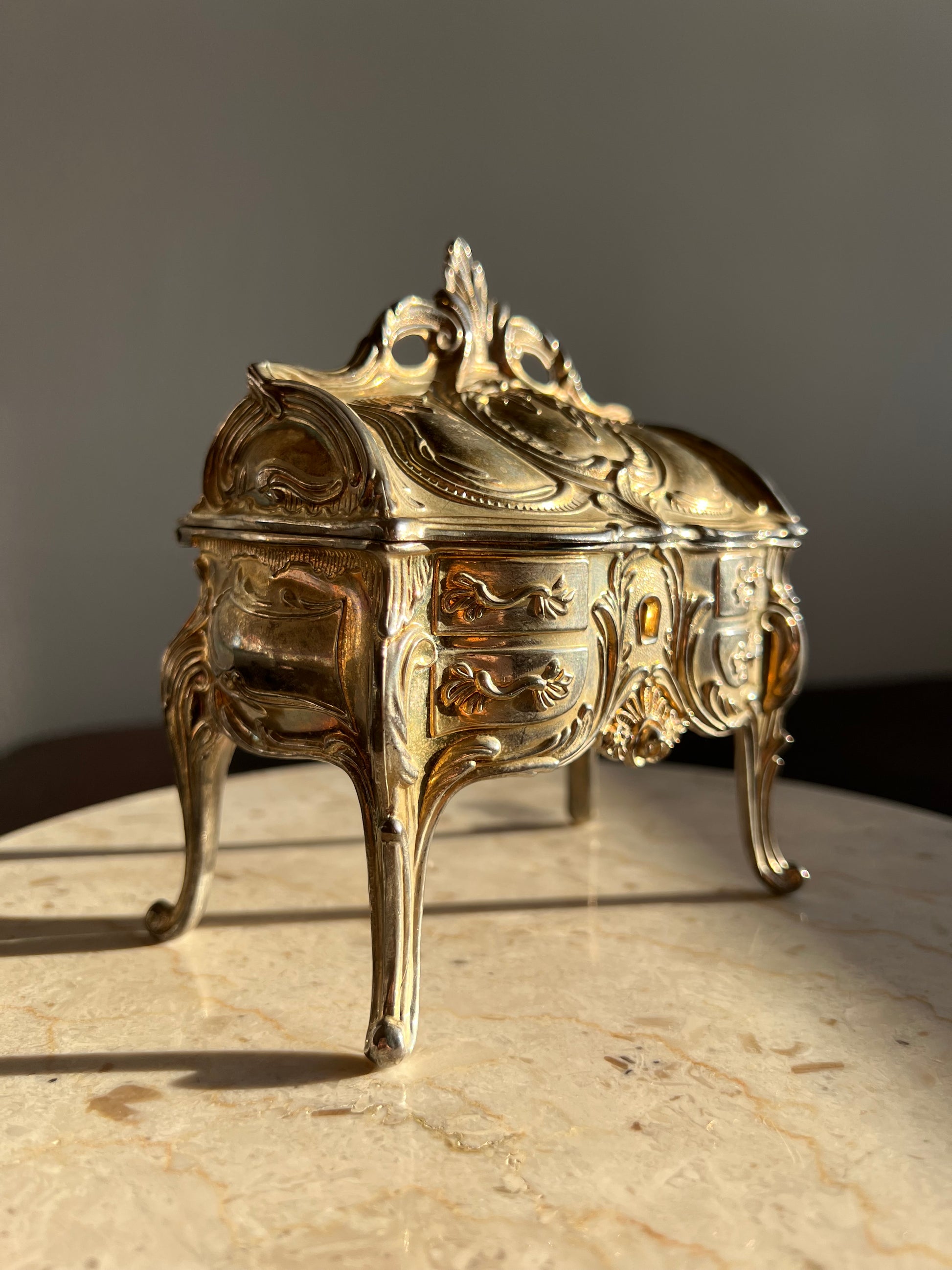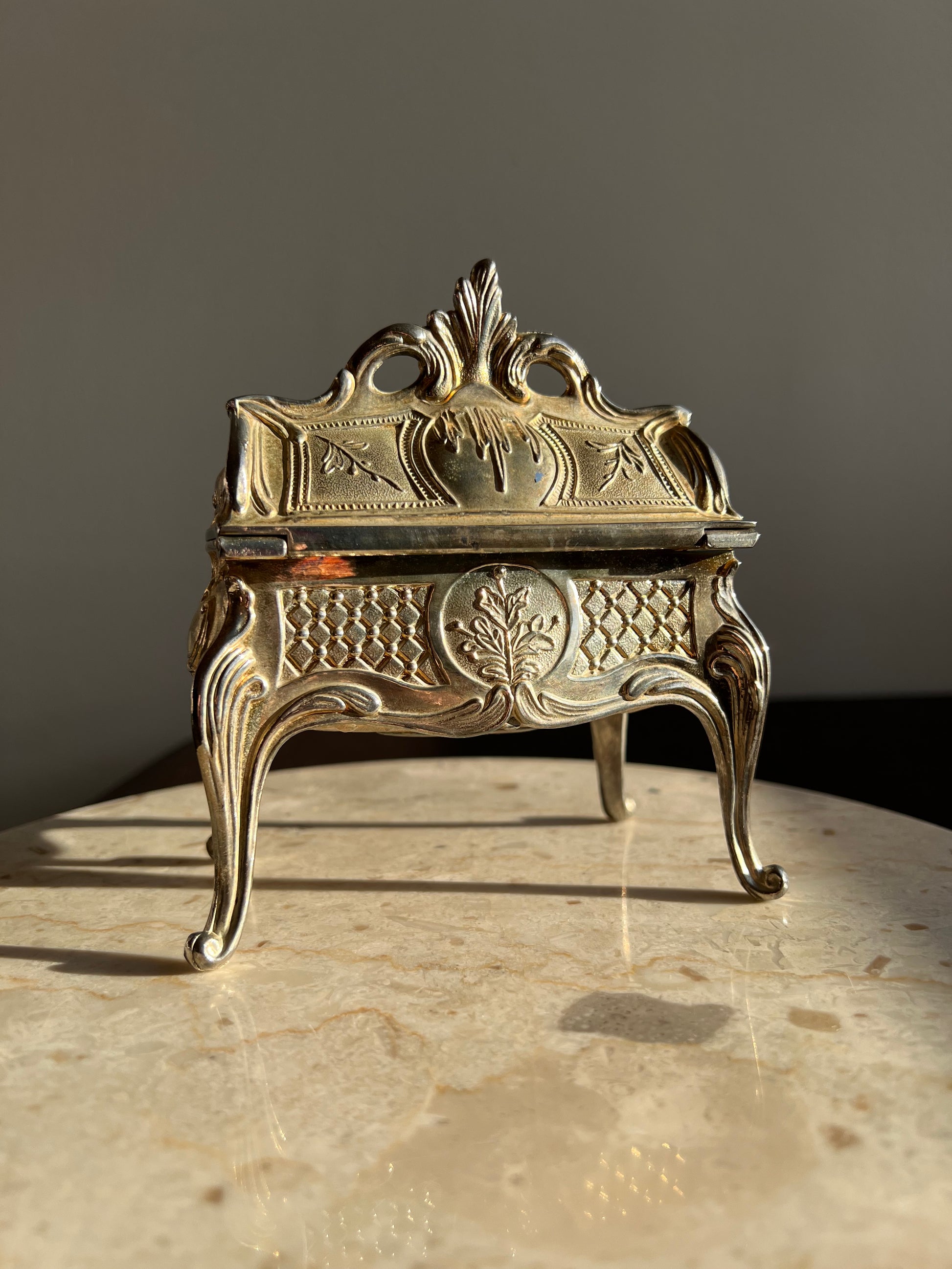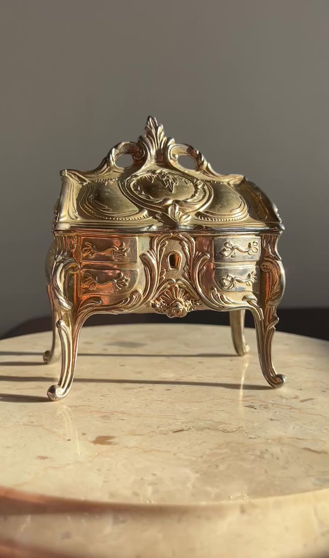 Art Nouveau Silver Plated Jewelry Casket Velvet Lined Romantic Antique/ Vintage French Style Trinket Ring Box