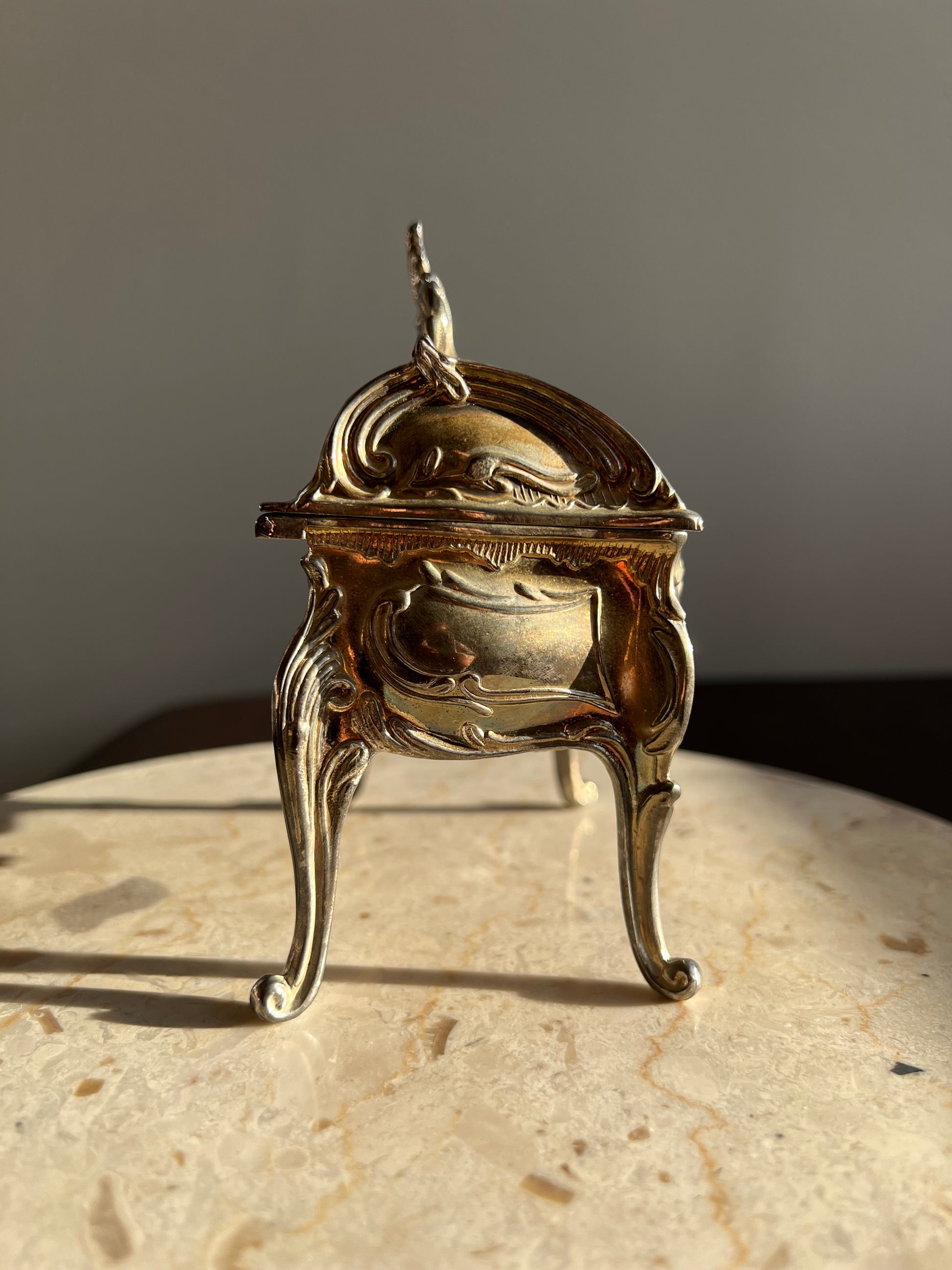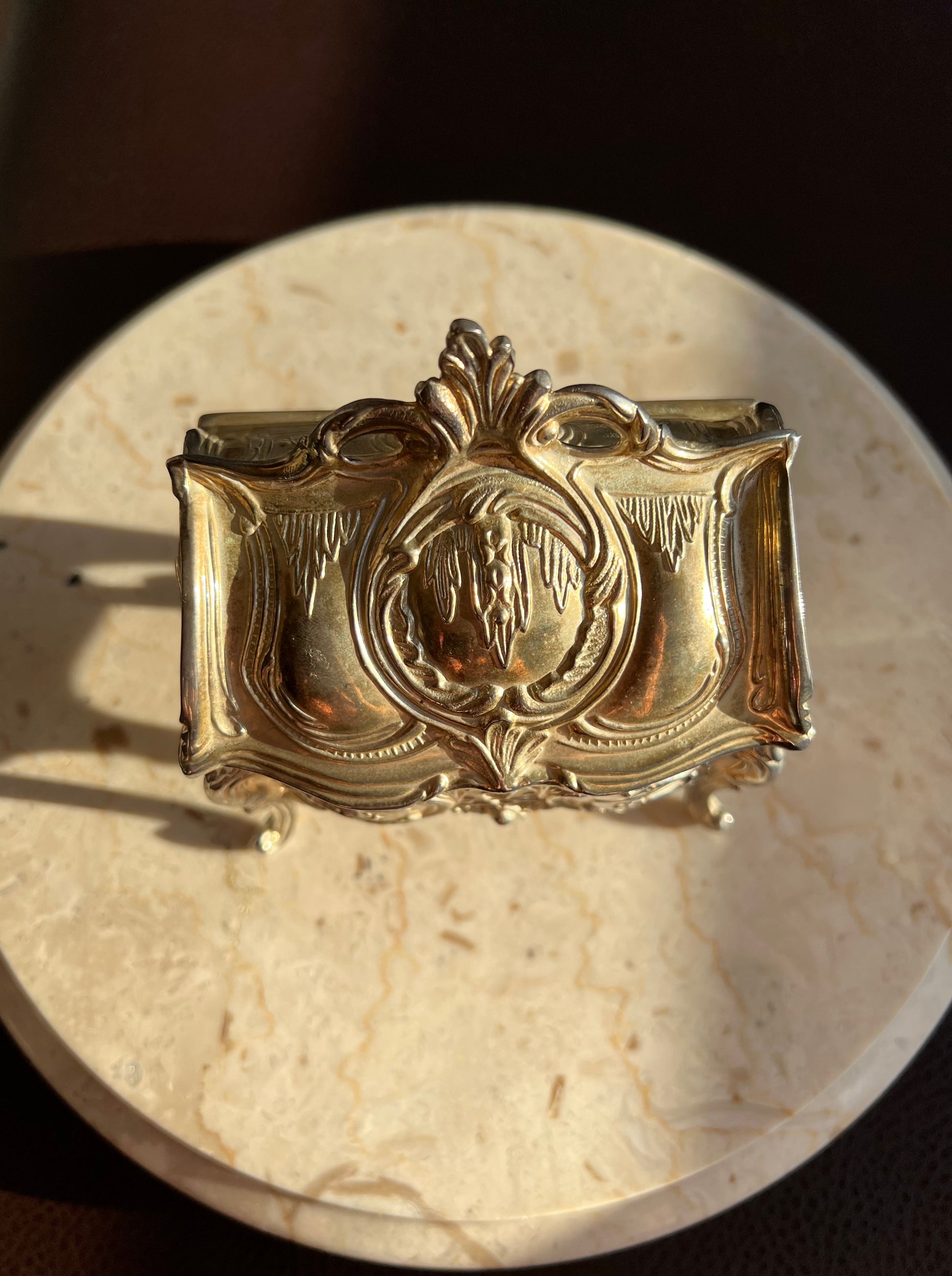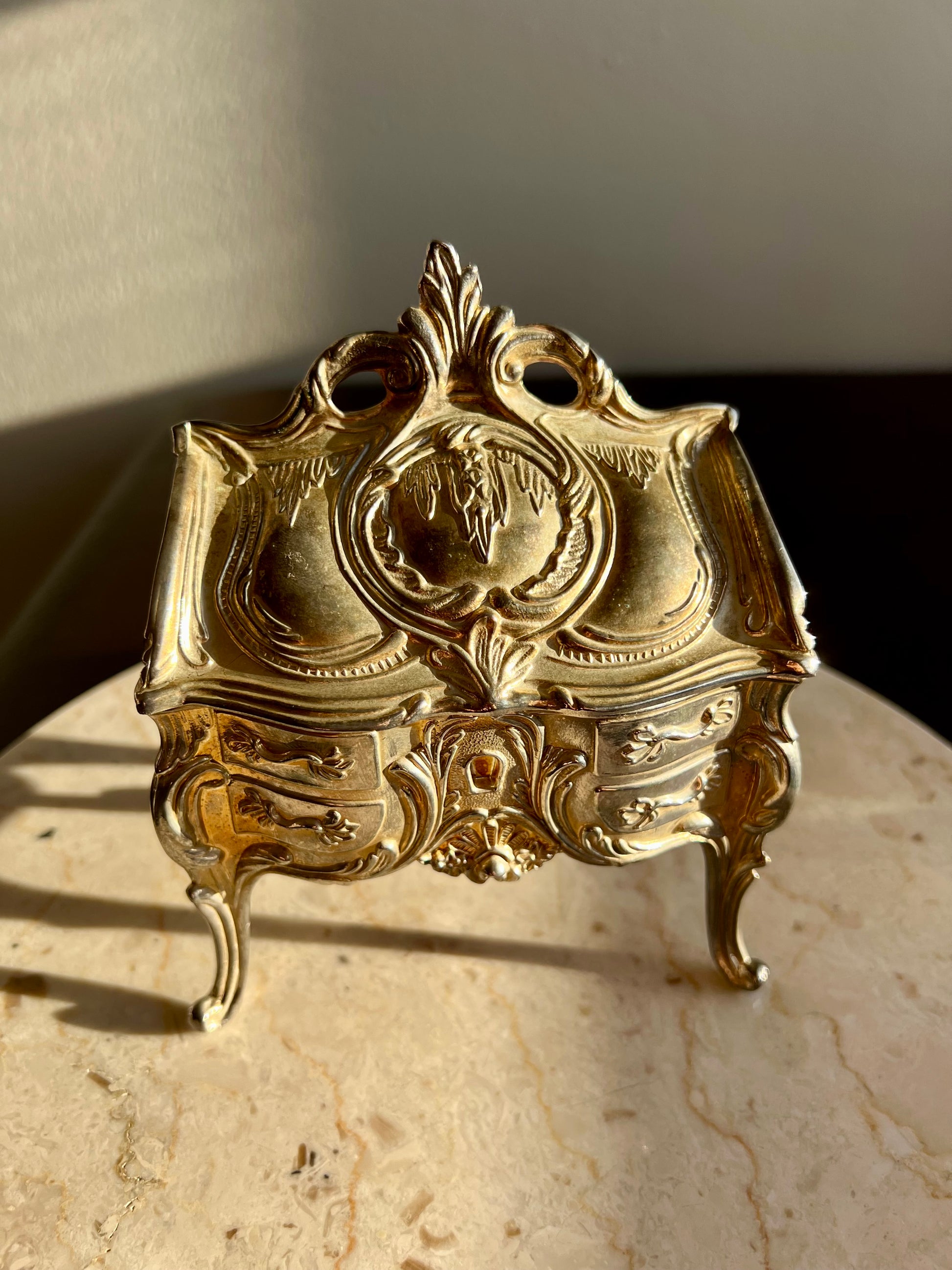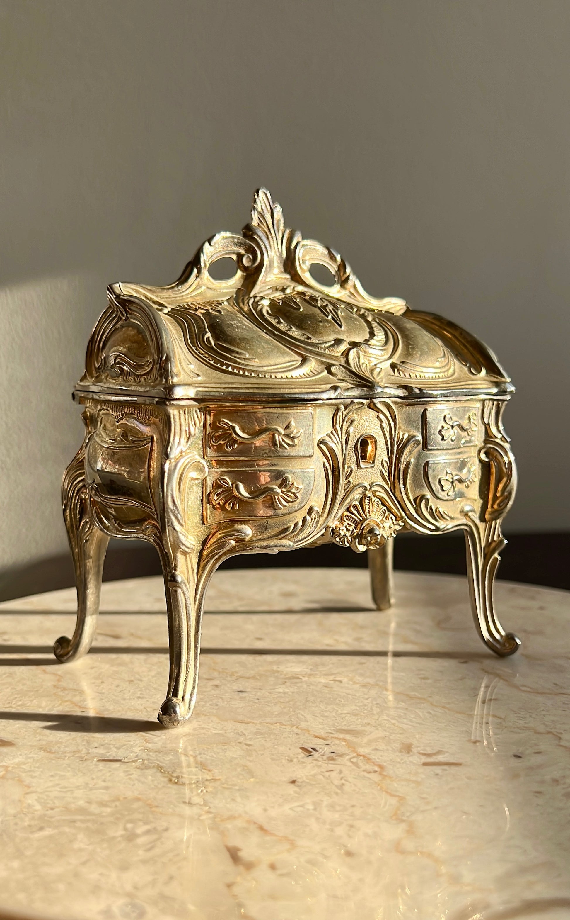 Art Nouveau Silver Plated Jewelry Casket Velvet Lined Romantic Antique/ Vintage French Style Trinket Ring Box