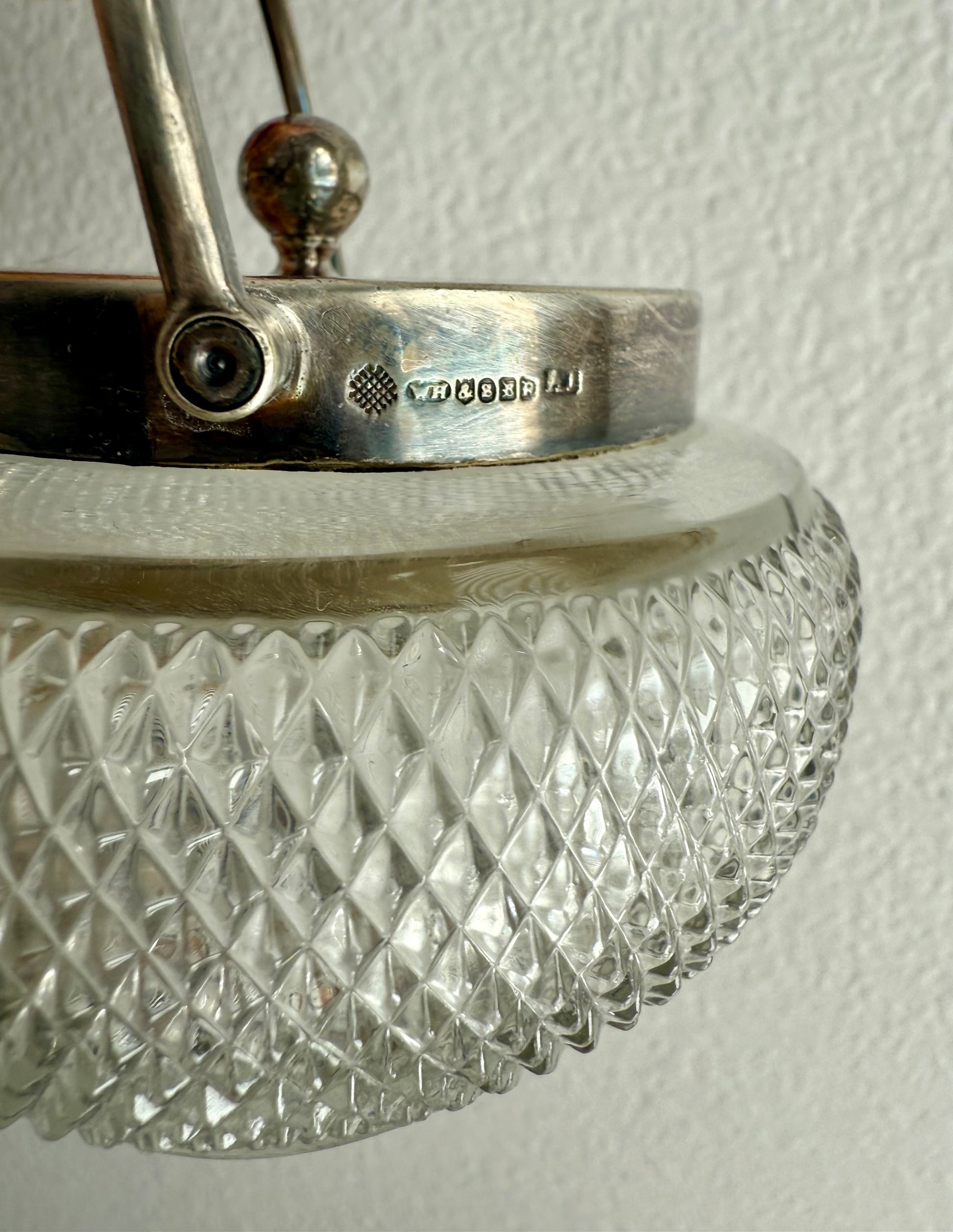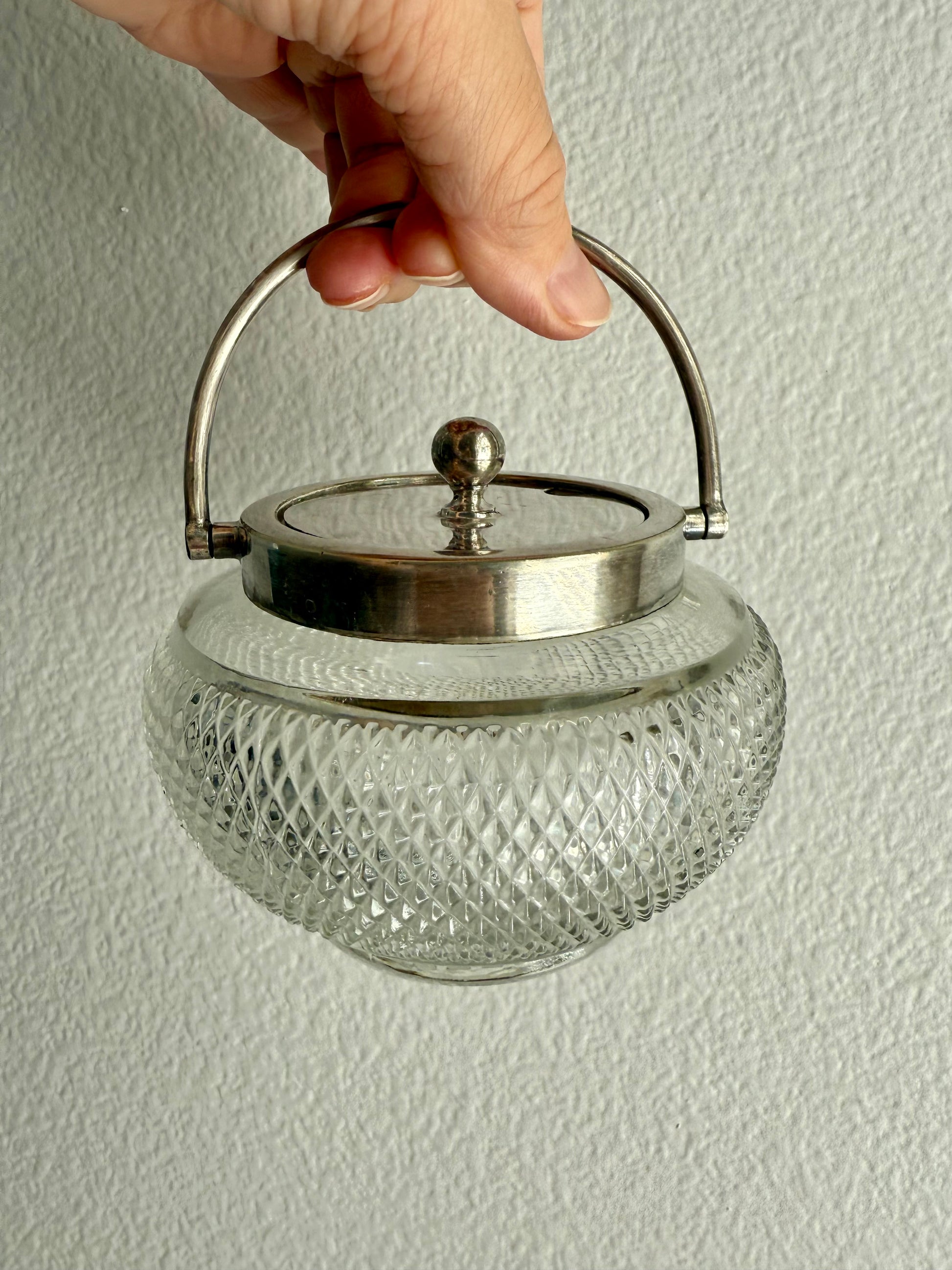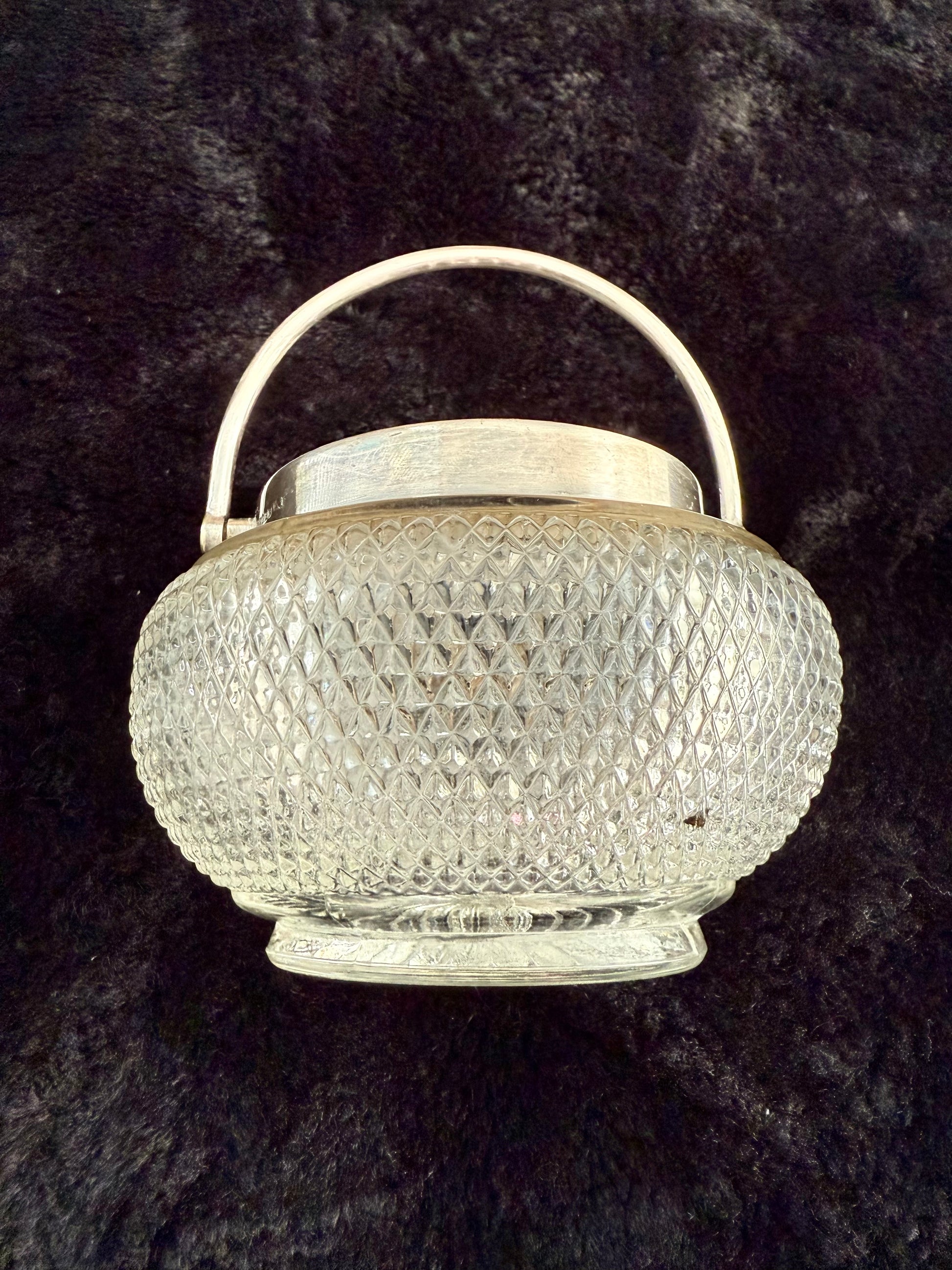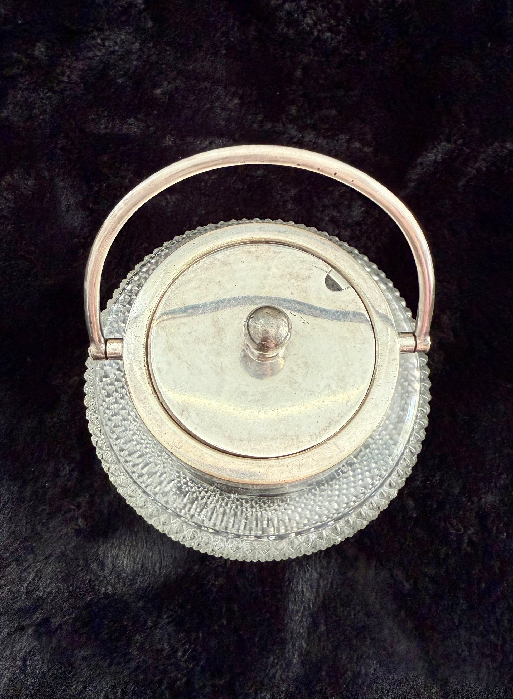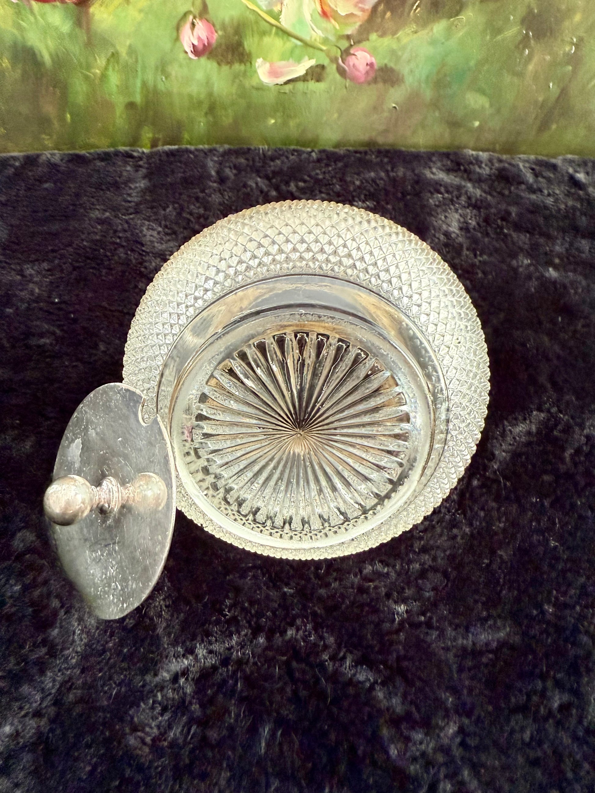 Antique Silver-Plated William Hutton & Sons British Cut Glass Biscuit Jar or Candy Holder with Lid and Handle