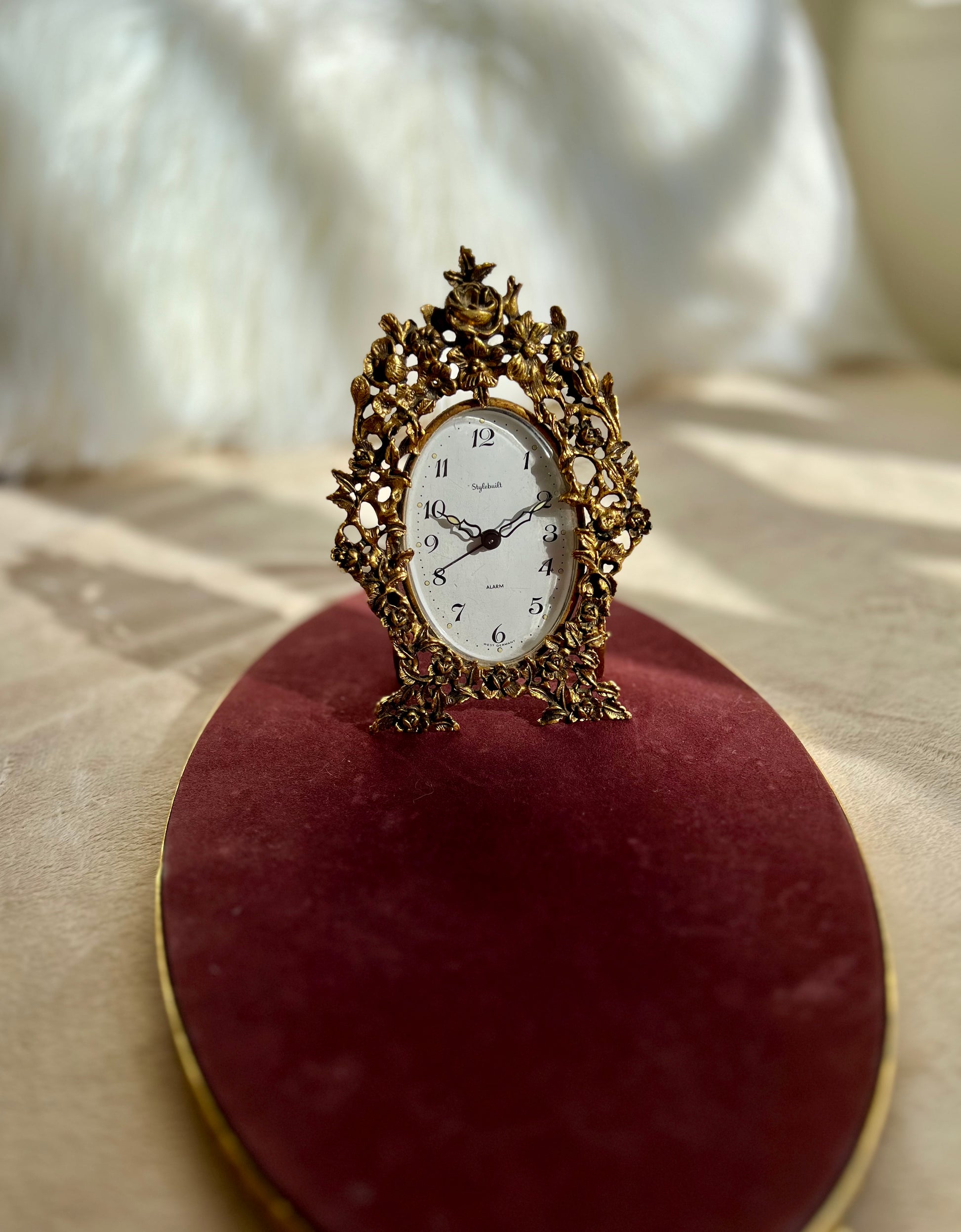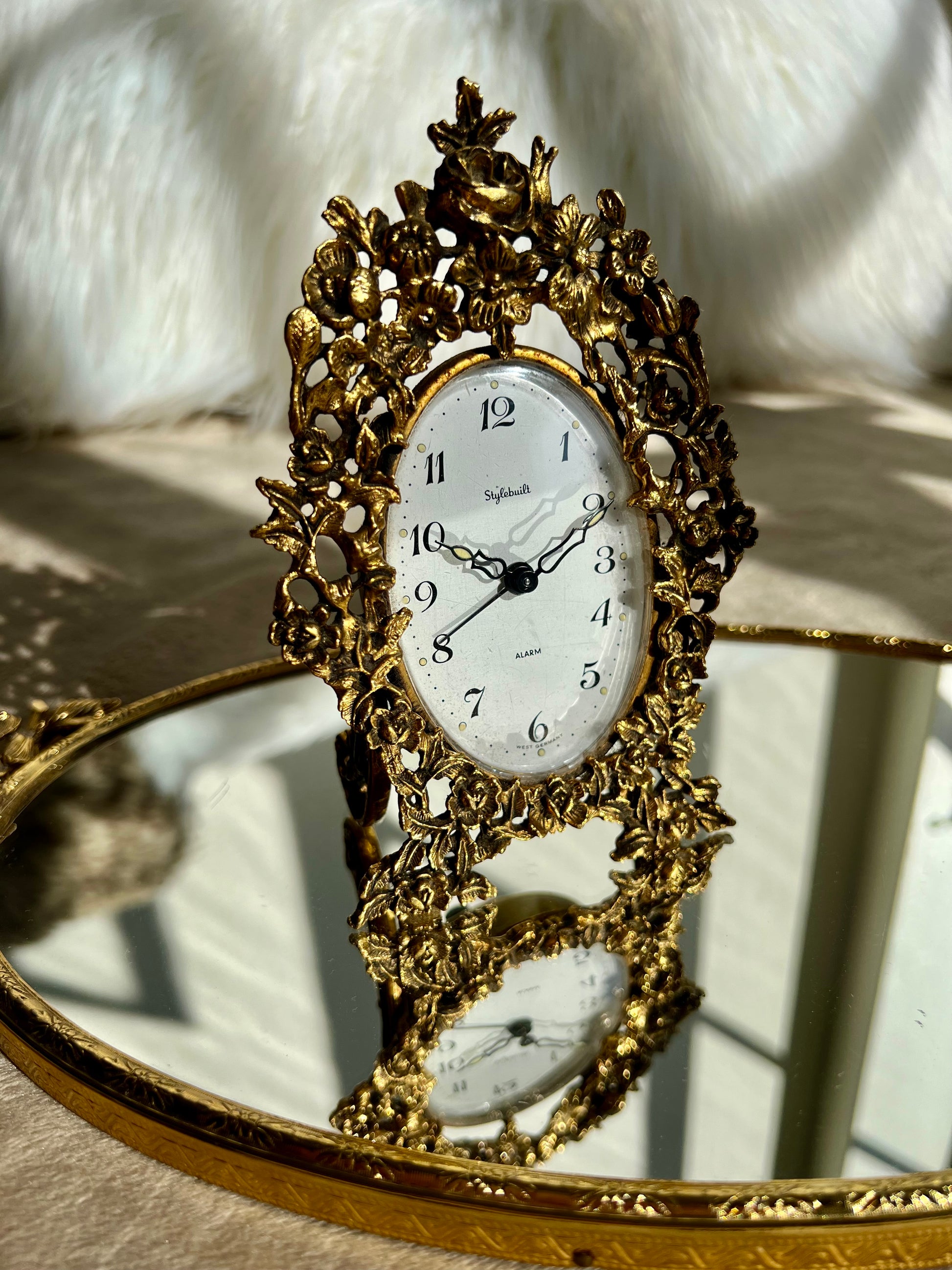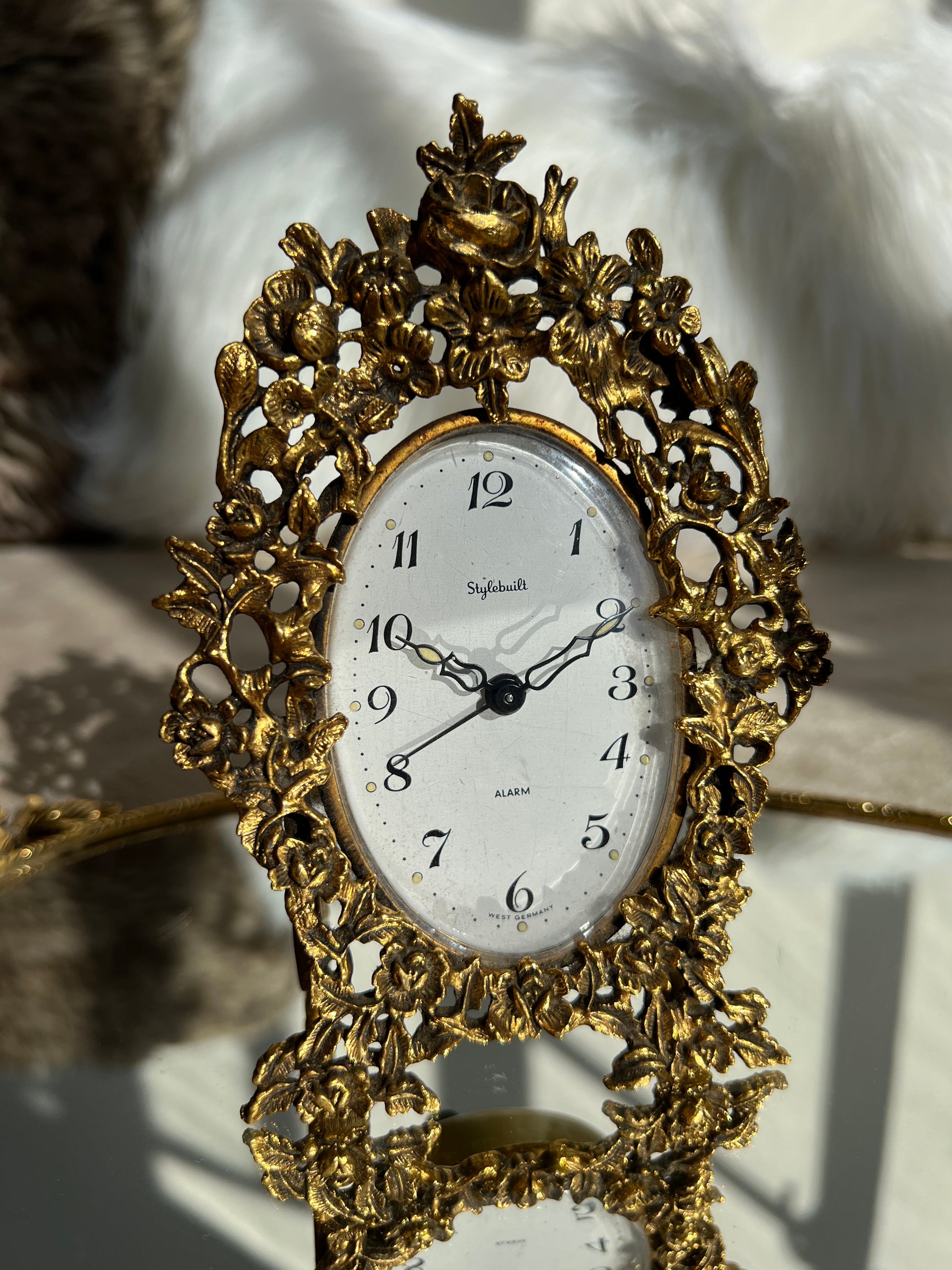 Stylebuilt Vintage Roses Ornate Metal Alarm Clock From West Germany