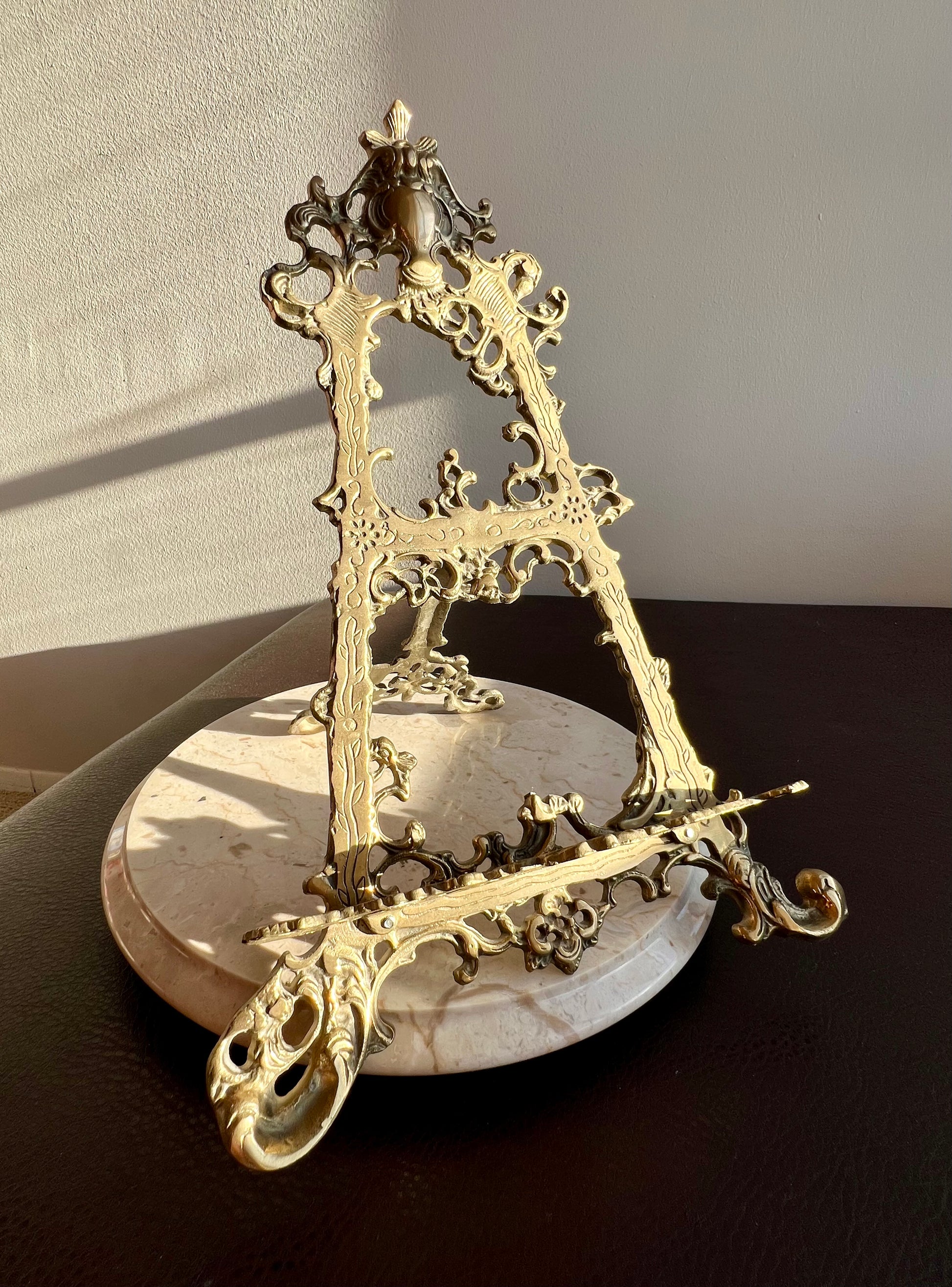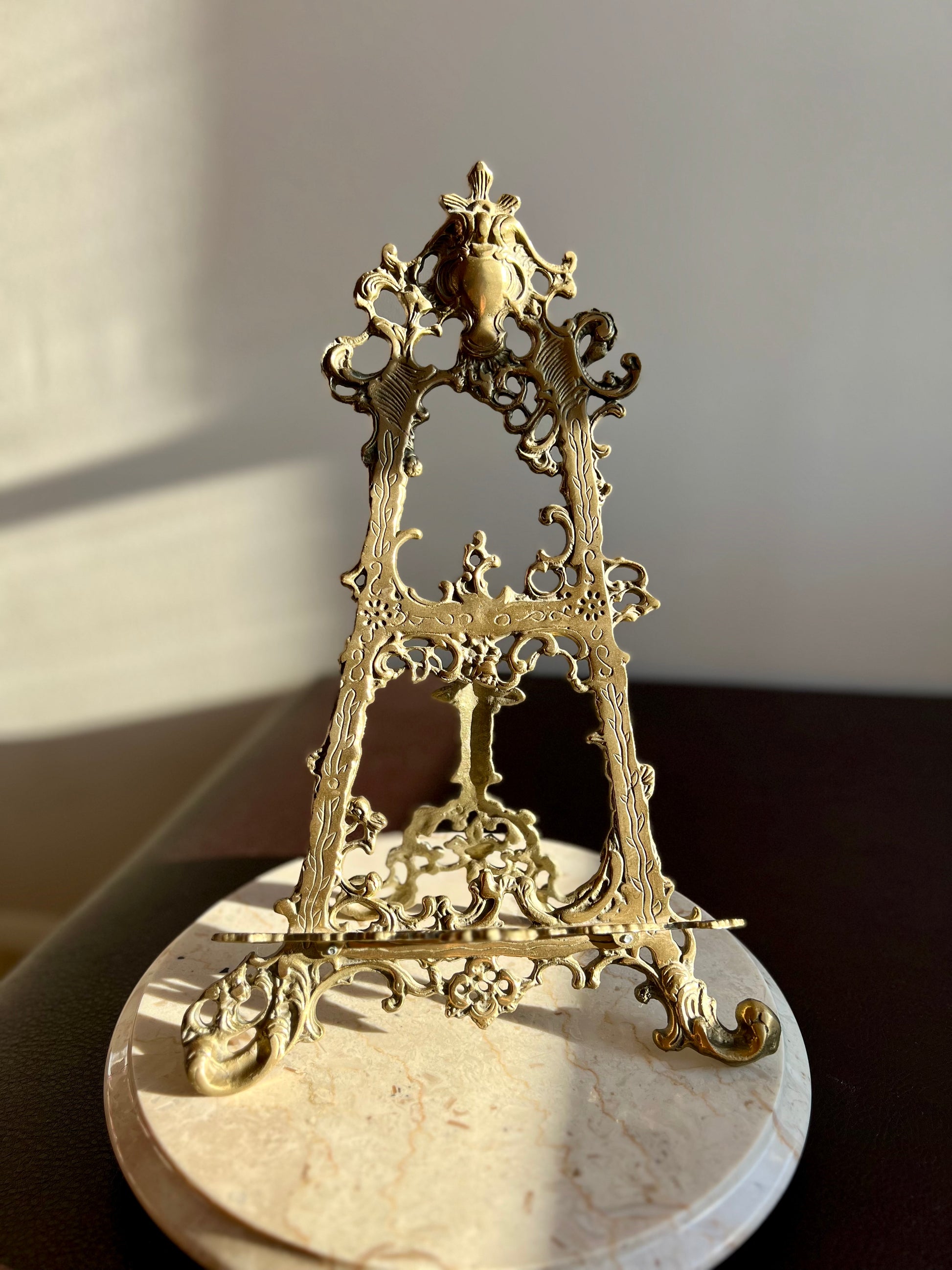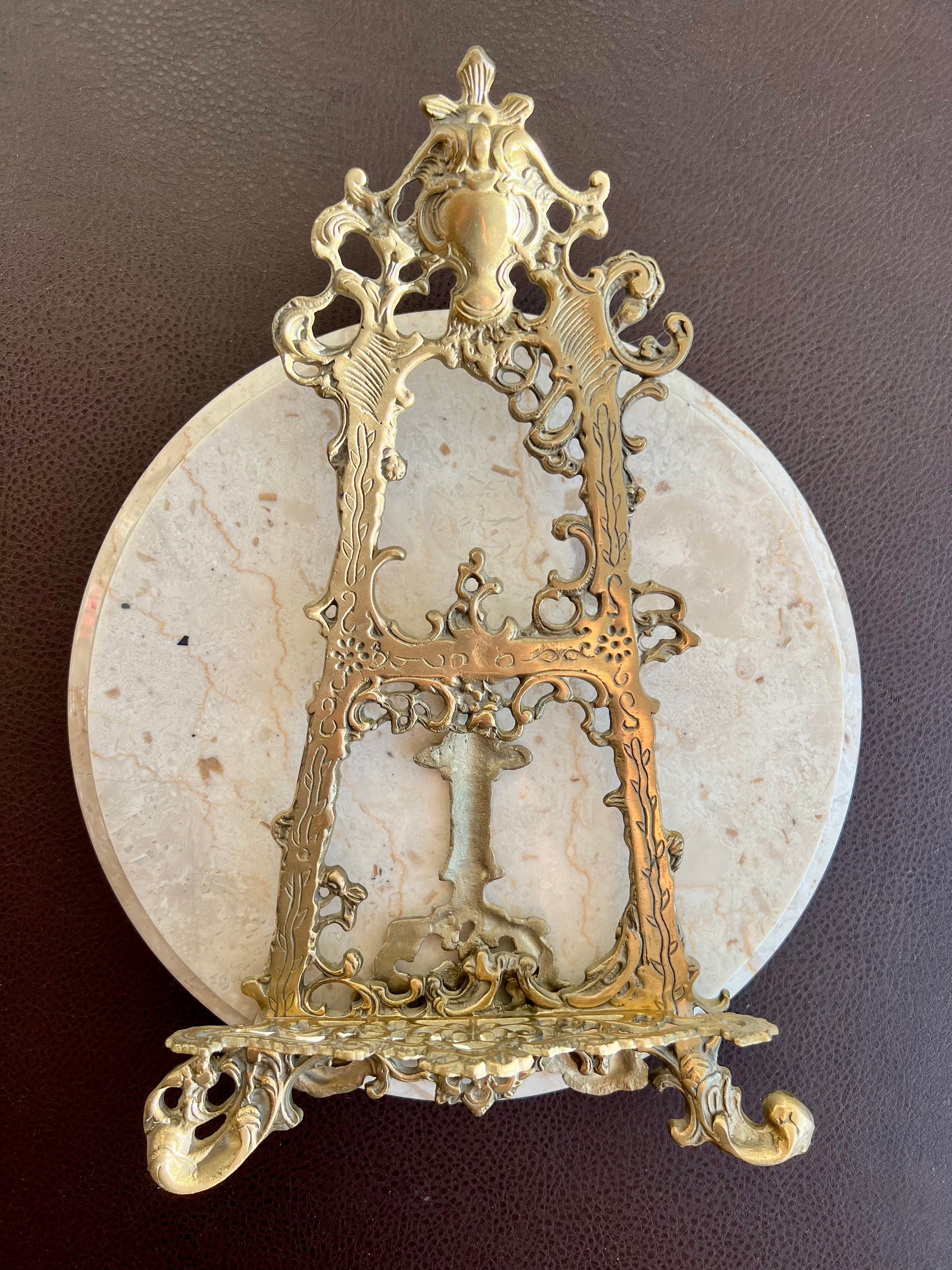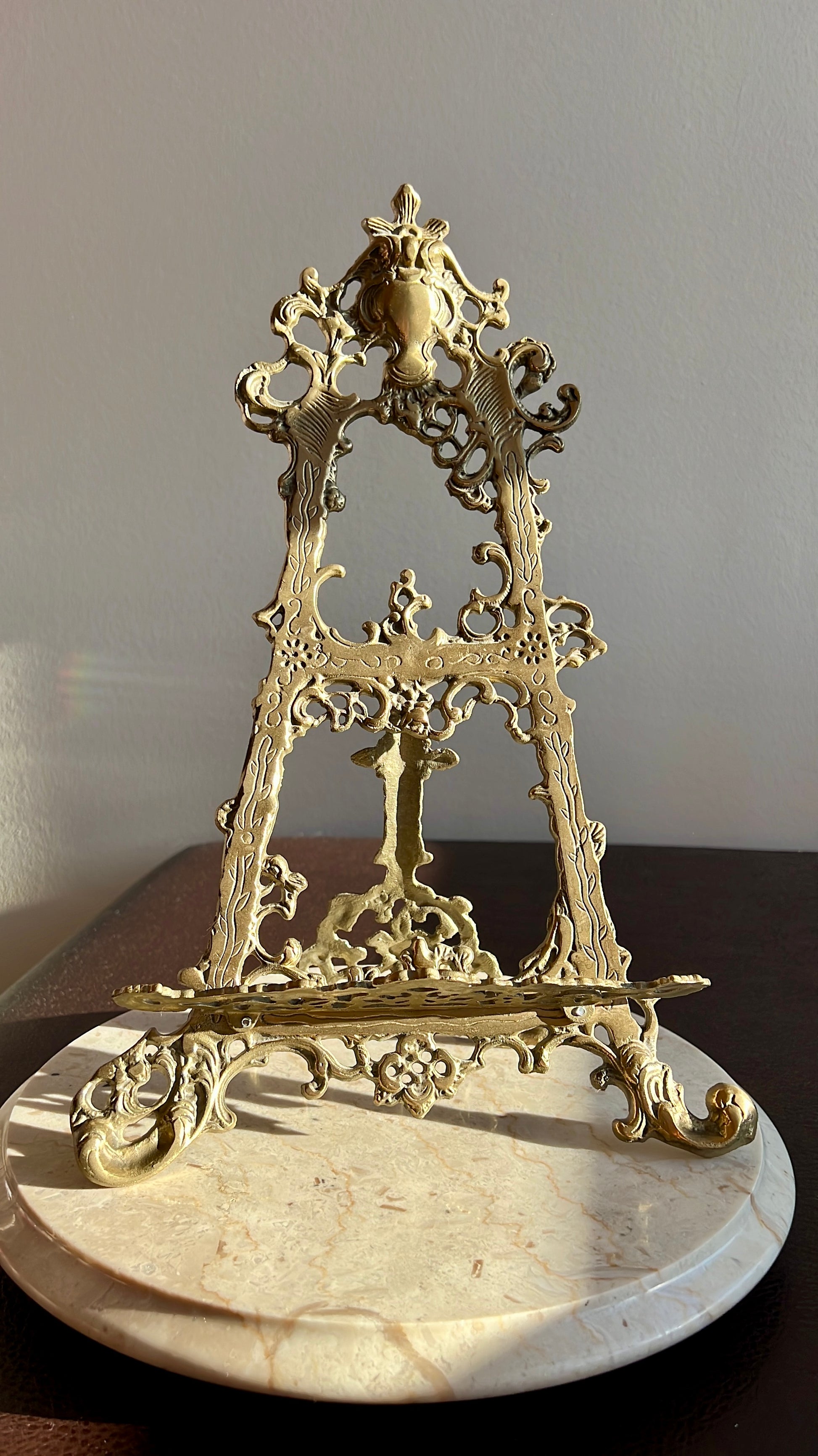 Beautiful vintage decorative brass display easel, cookbook, picture or painting holder. It’s in excellent vintage condition.