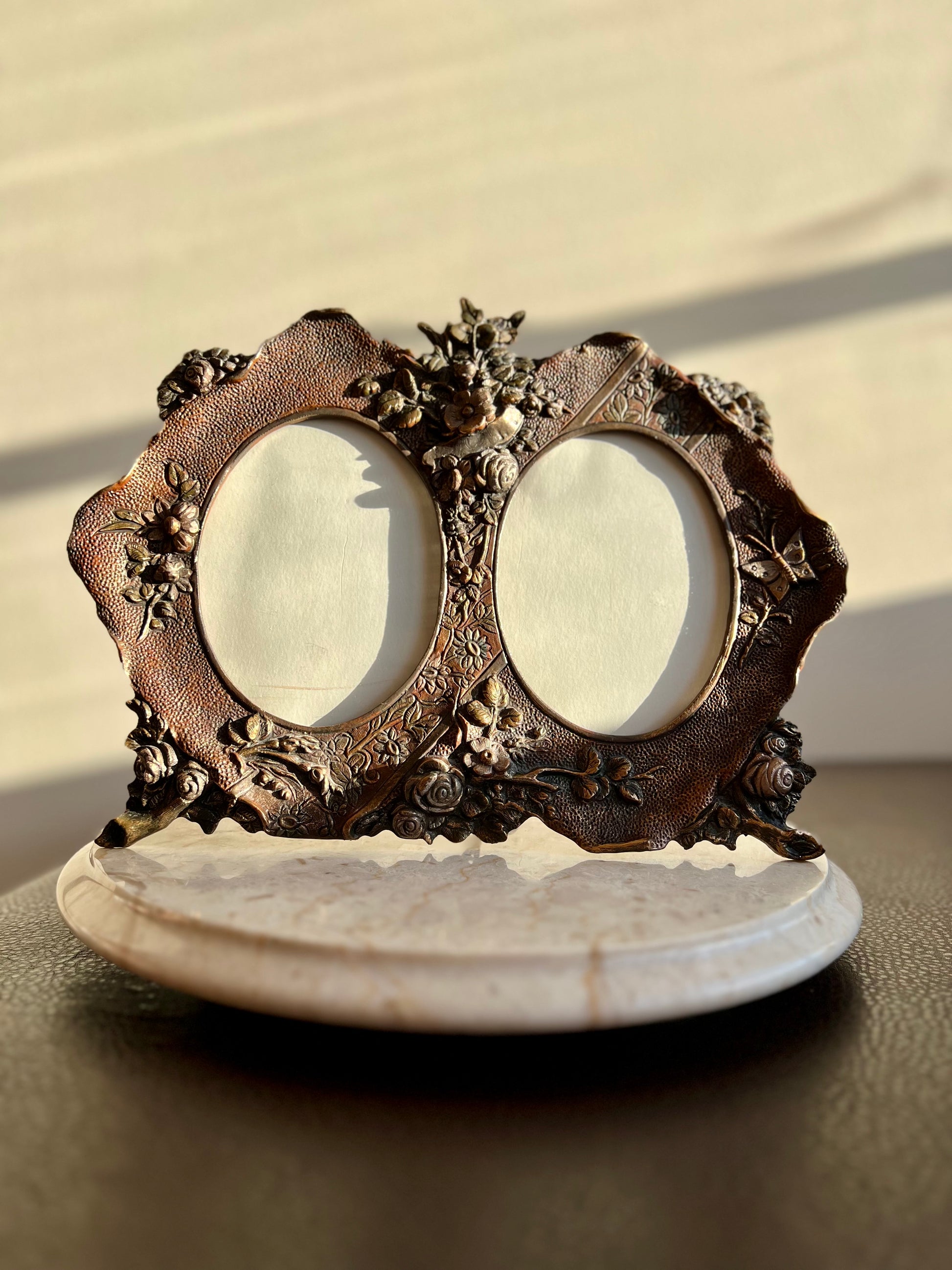 ➡️ 💯 This Victorian double cast iron photo frame comes from the legacy of an elderly influencer lady, “Champagne glamma”, who was a true diva and lived here in Los Angeles.🤩📸🥂💖💫