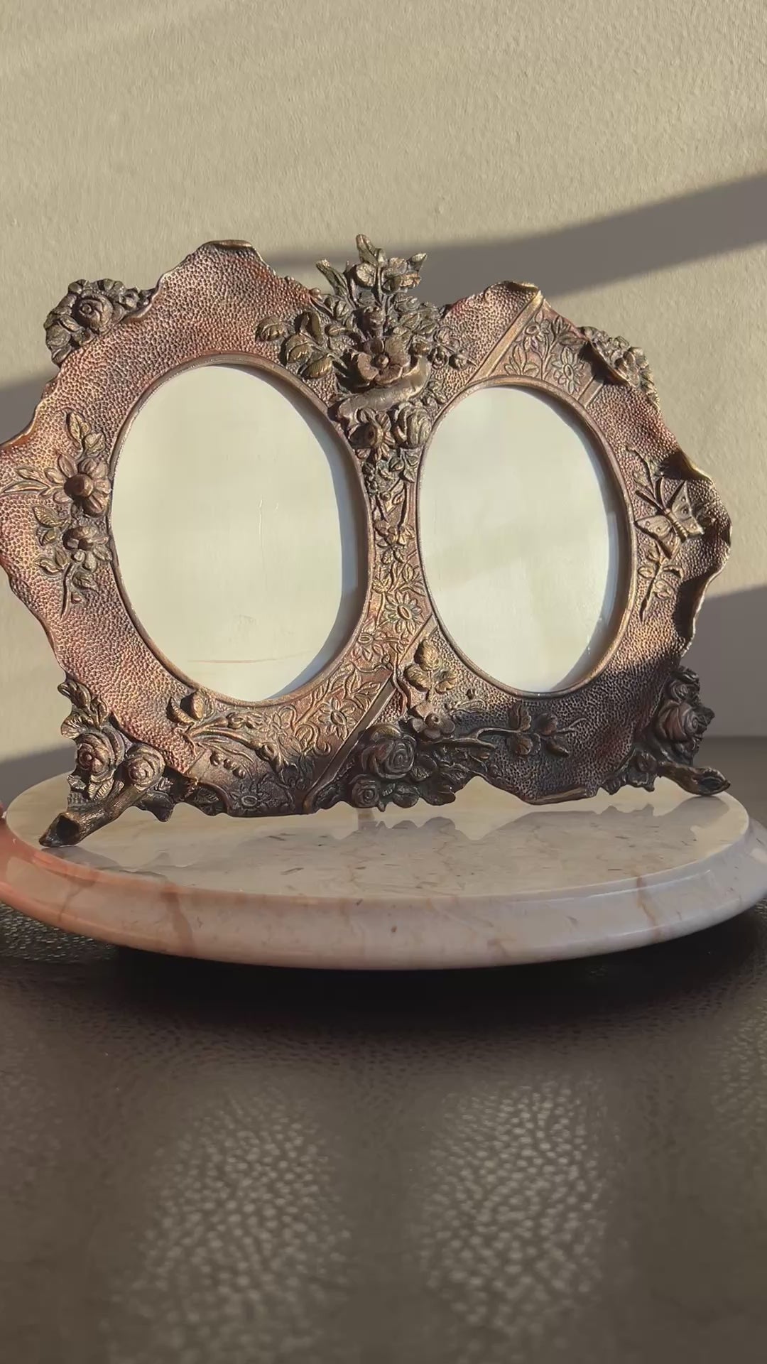 Antique Victorian Style Double Copper Decorative Oval Photo/ Picture Frame with Easel Back