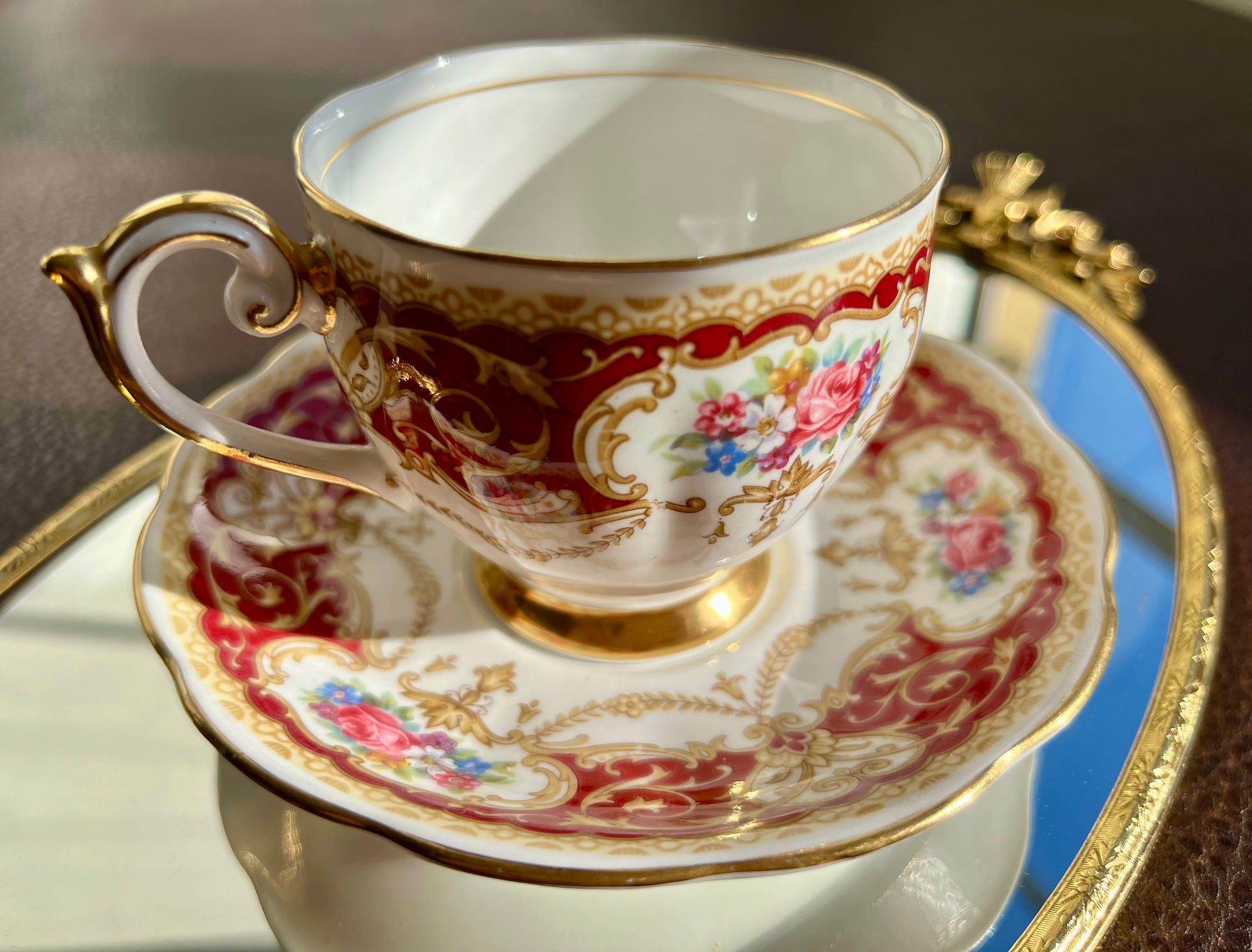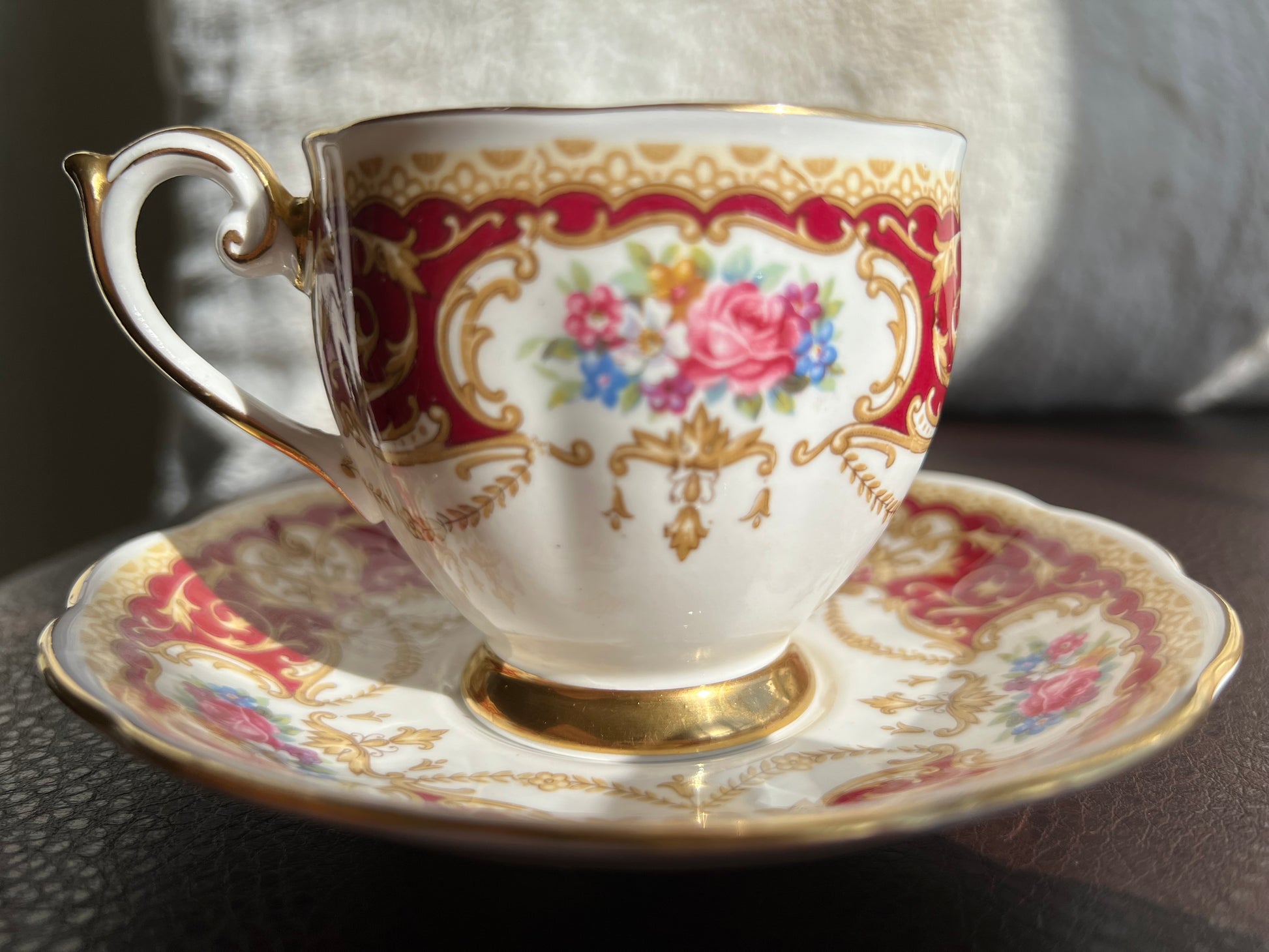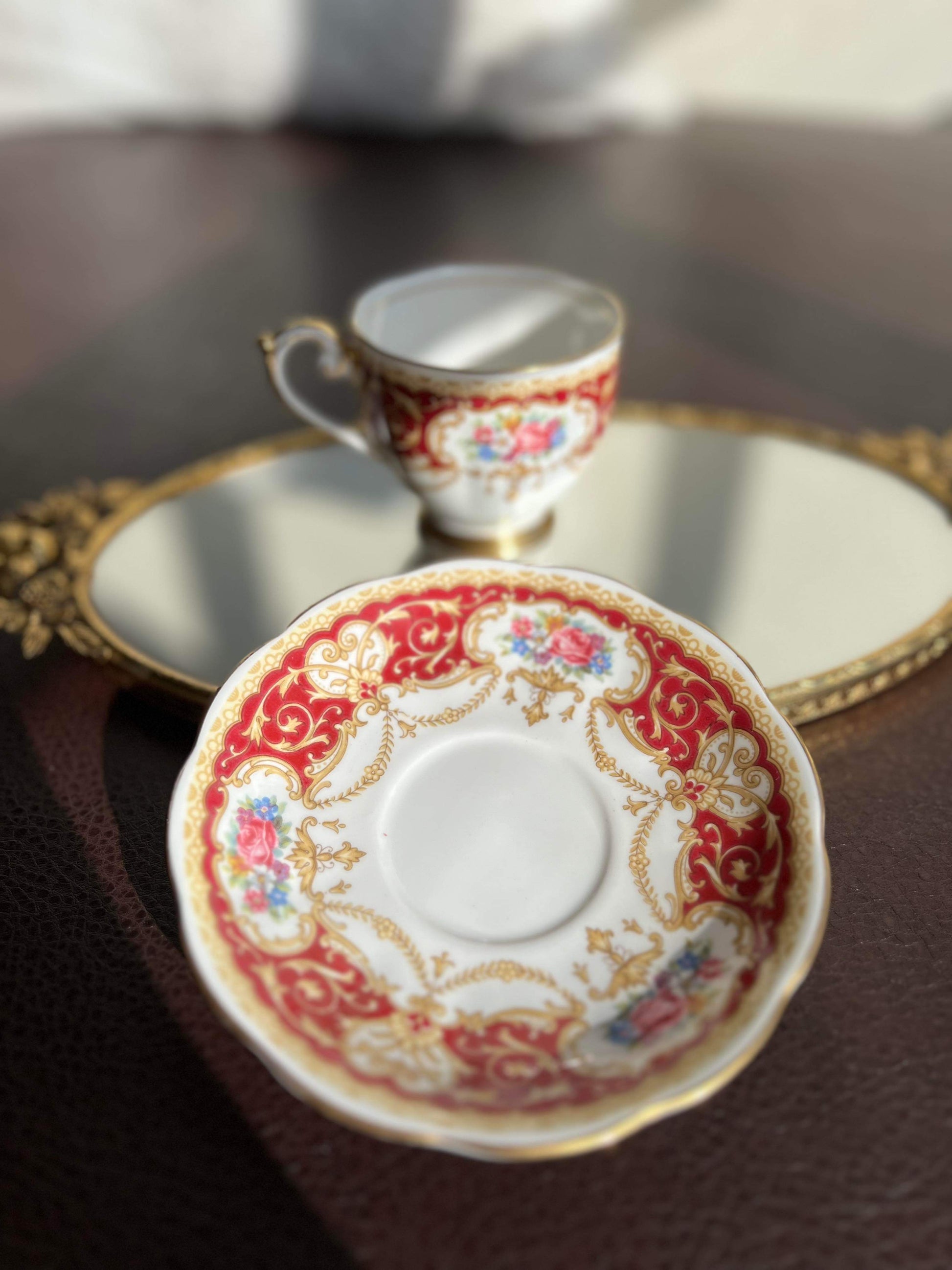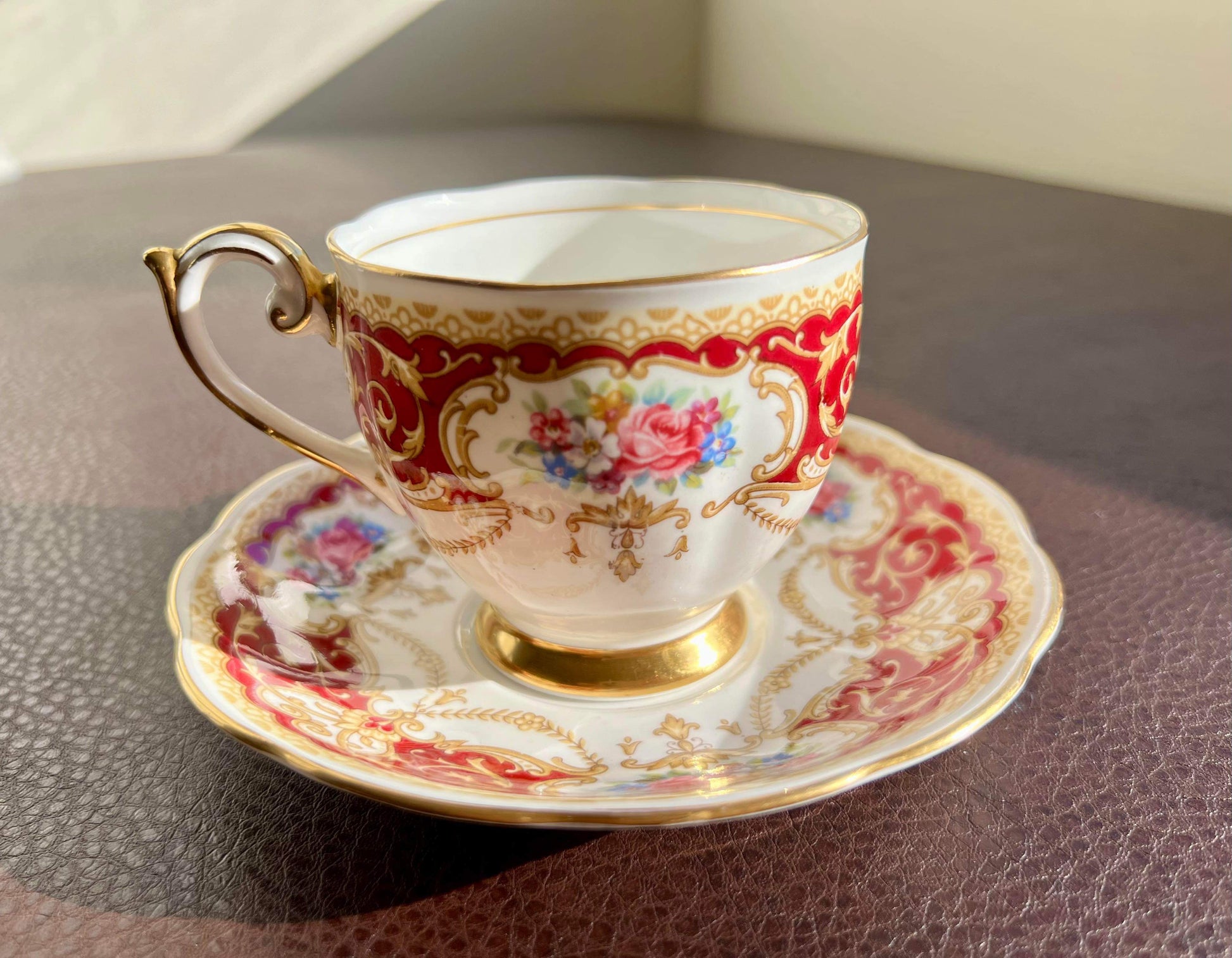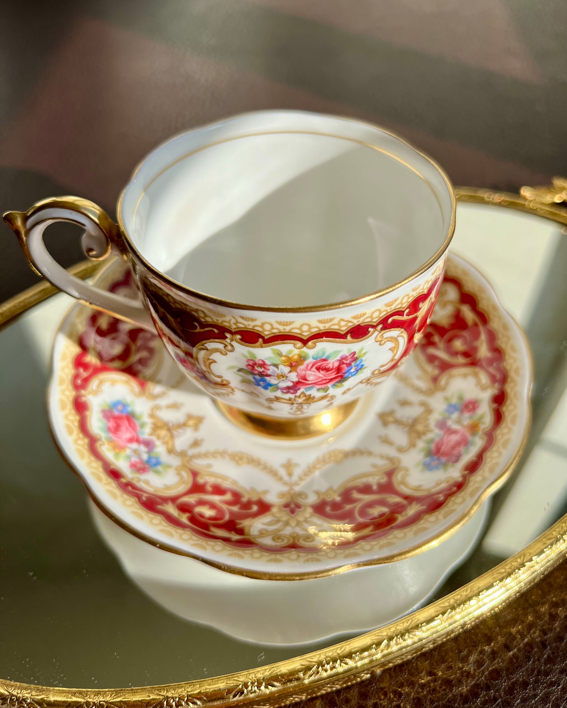 Vintage England Regency Queen Anne Floral Bone China Tea Cup Saucer