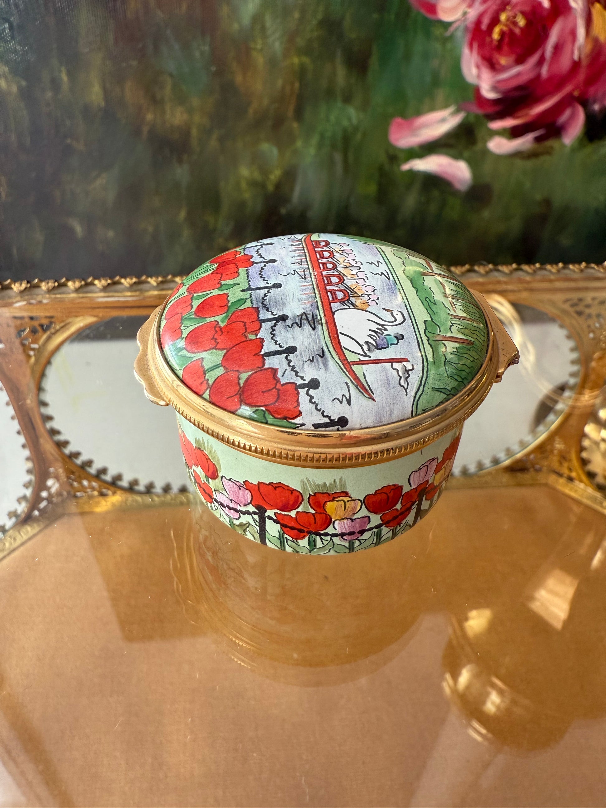 Halcyon Days Designed by Tiffany & Co. Boston Swan Boats Vintage Enamel Pill, Jewelry or Trinket Box
