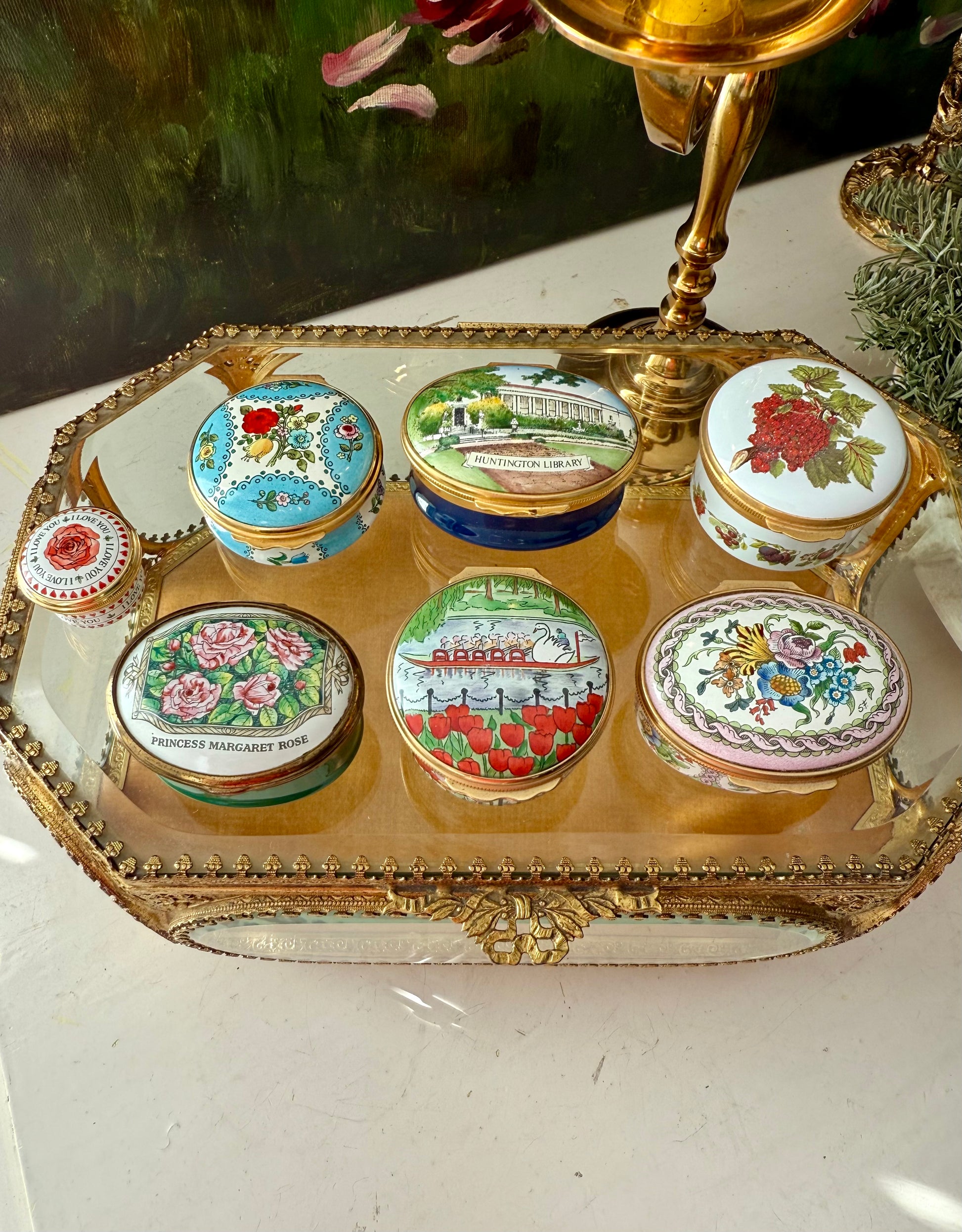 Halcyon Days Vintage Hand-Painted Enamel Floral Jewelry or Trinket Box, Made in England