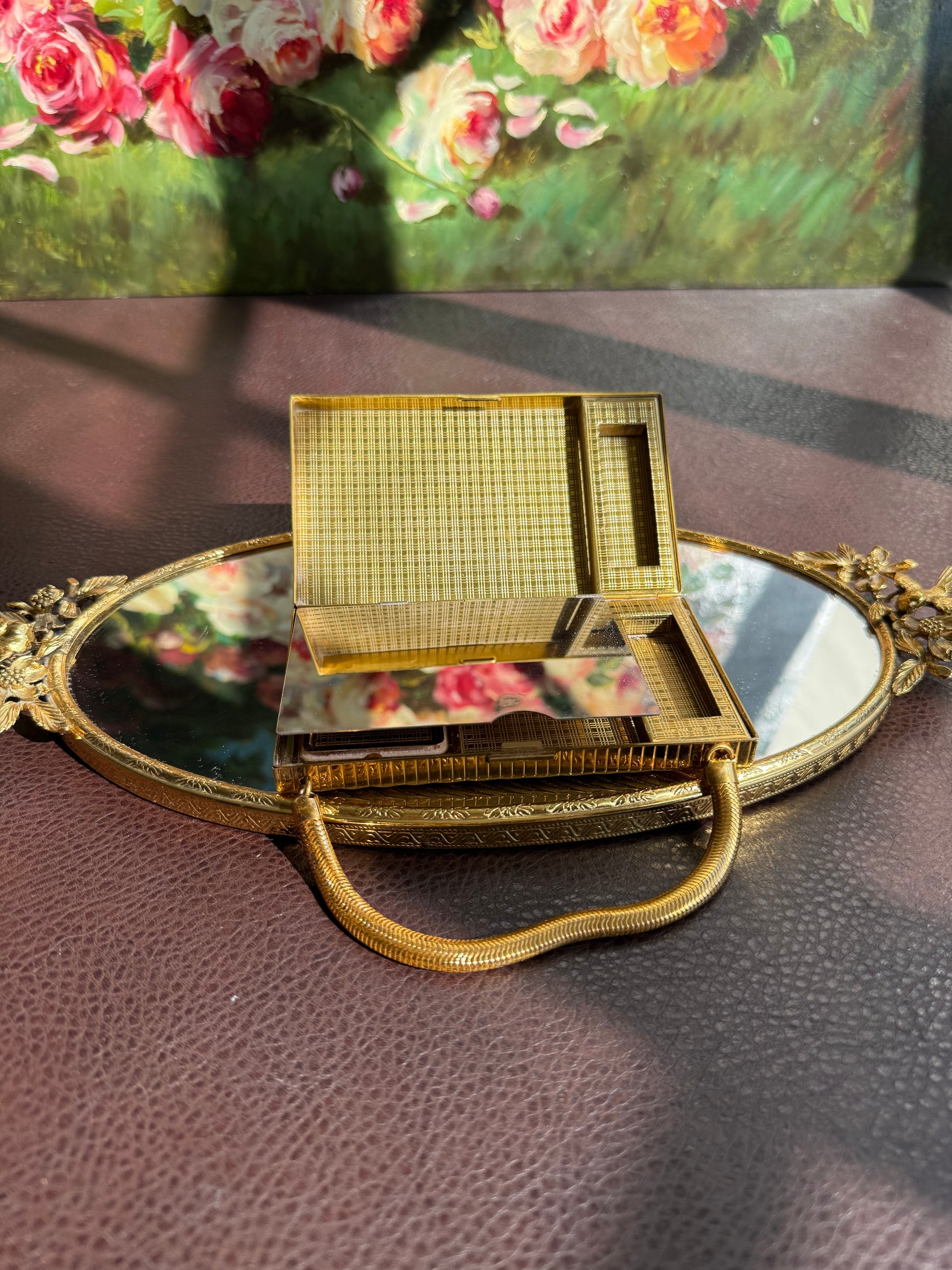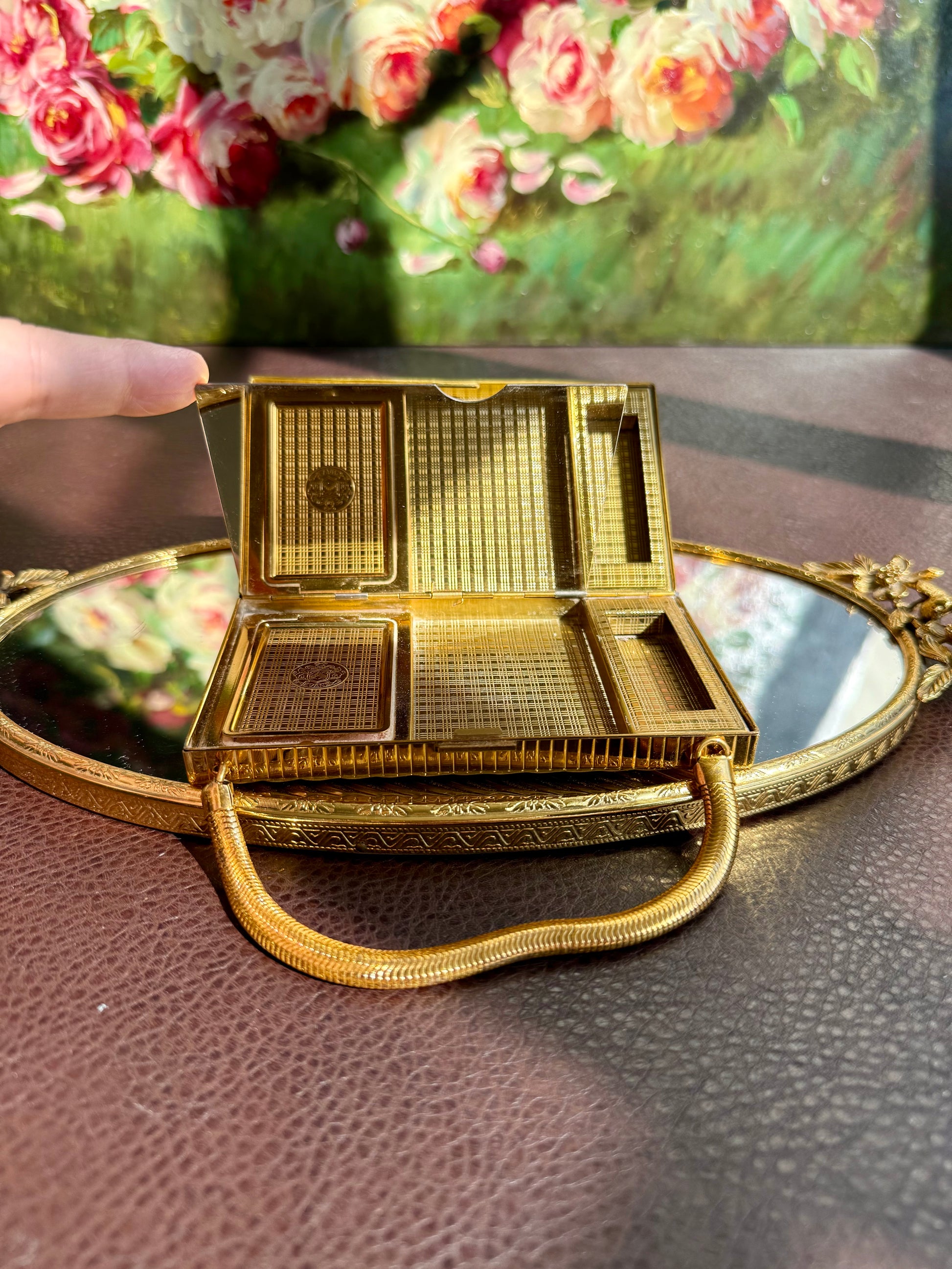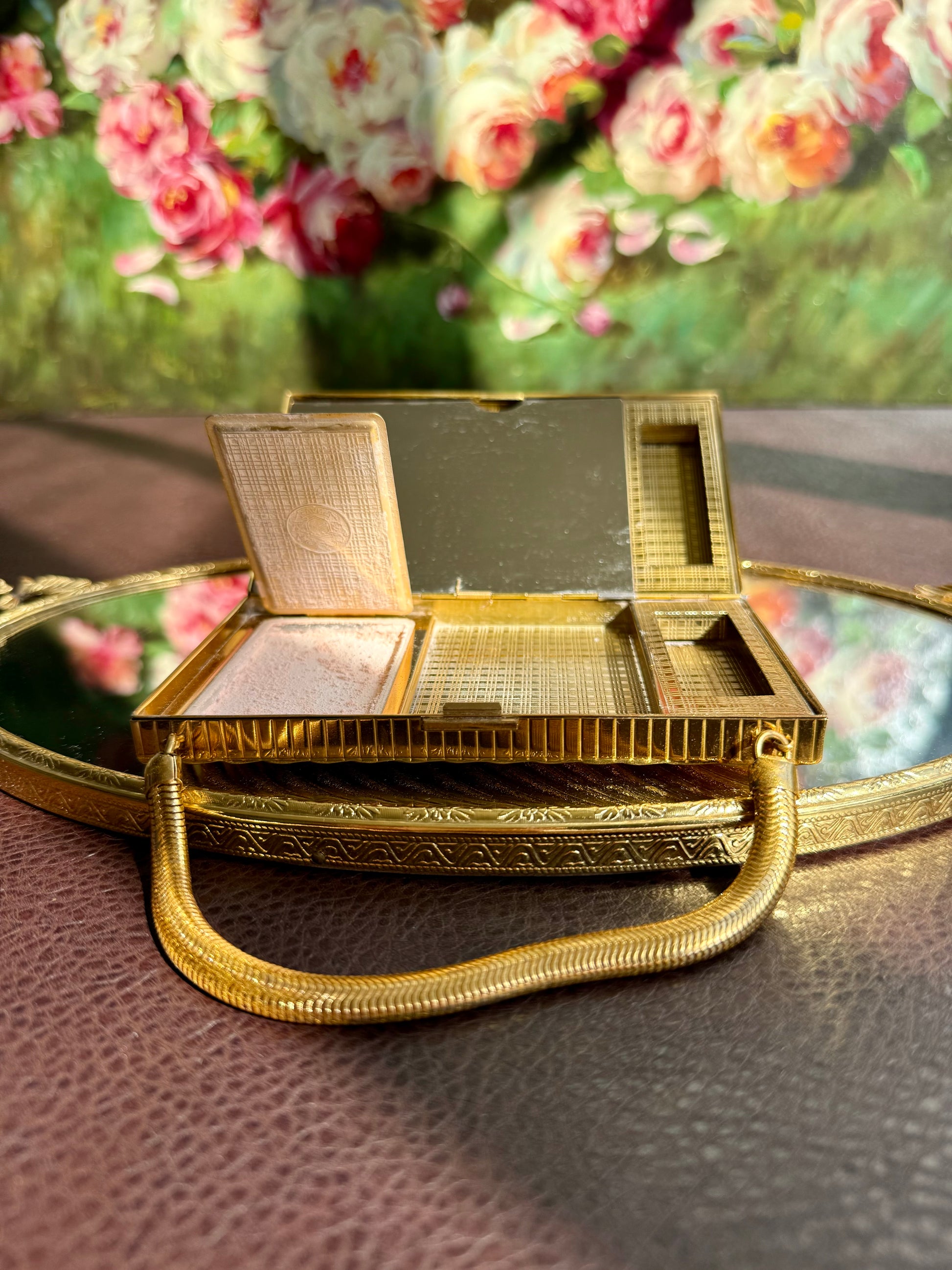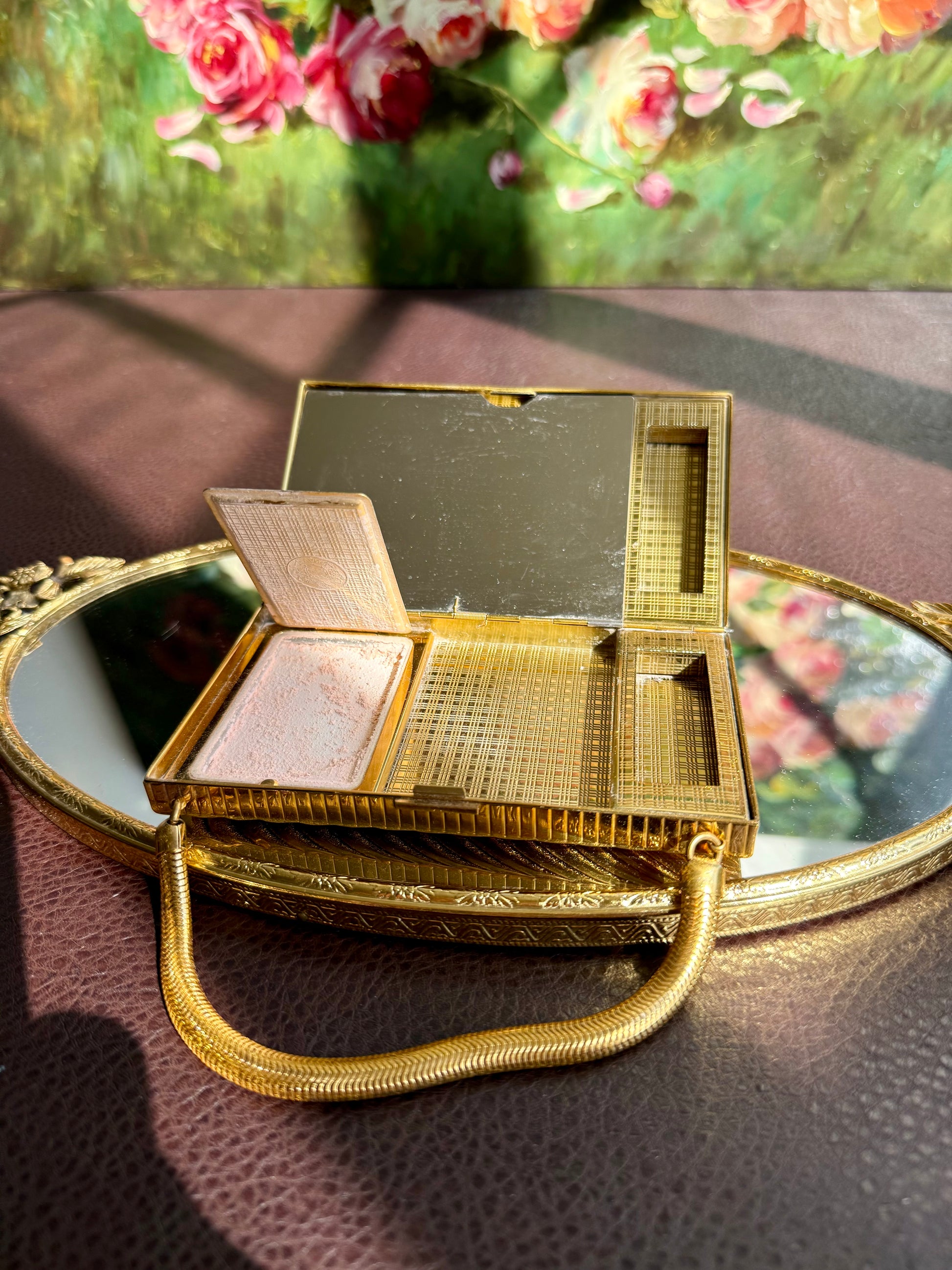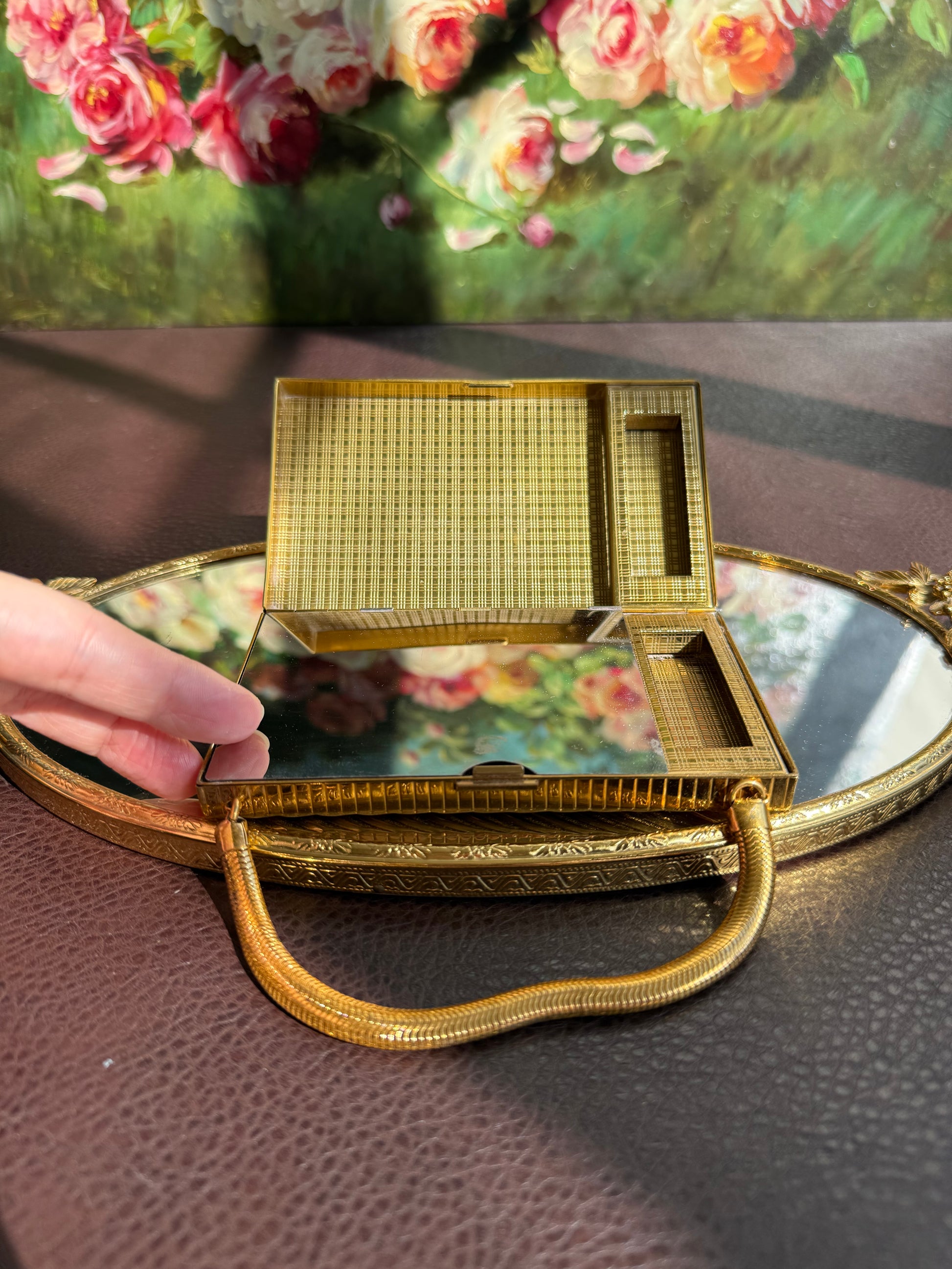 Classic Vintage Evans Gold Tone Cosmetic Cigarette Case Mirror, Makeup Powder Purse/Clutch with Snake Chain Handle