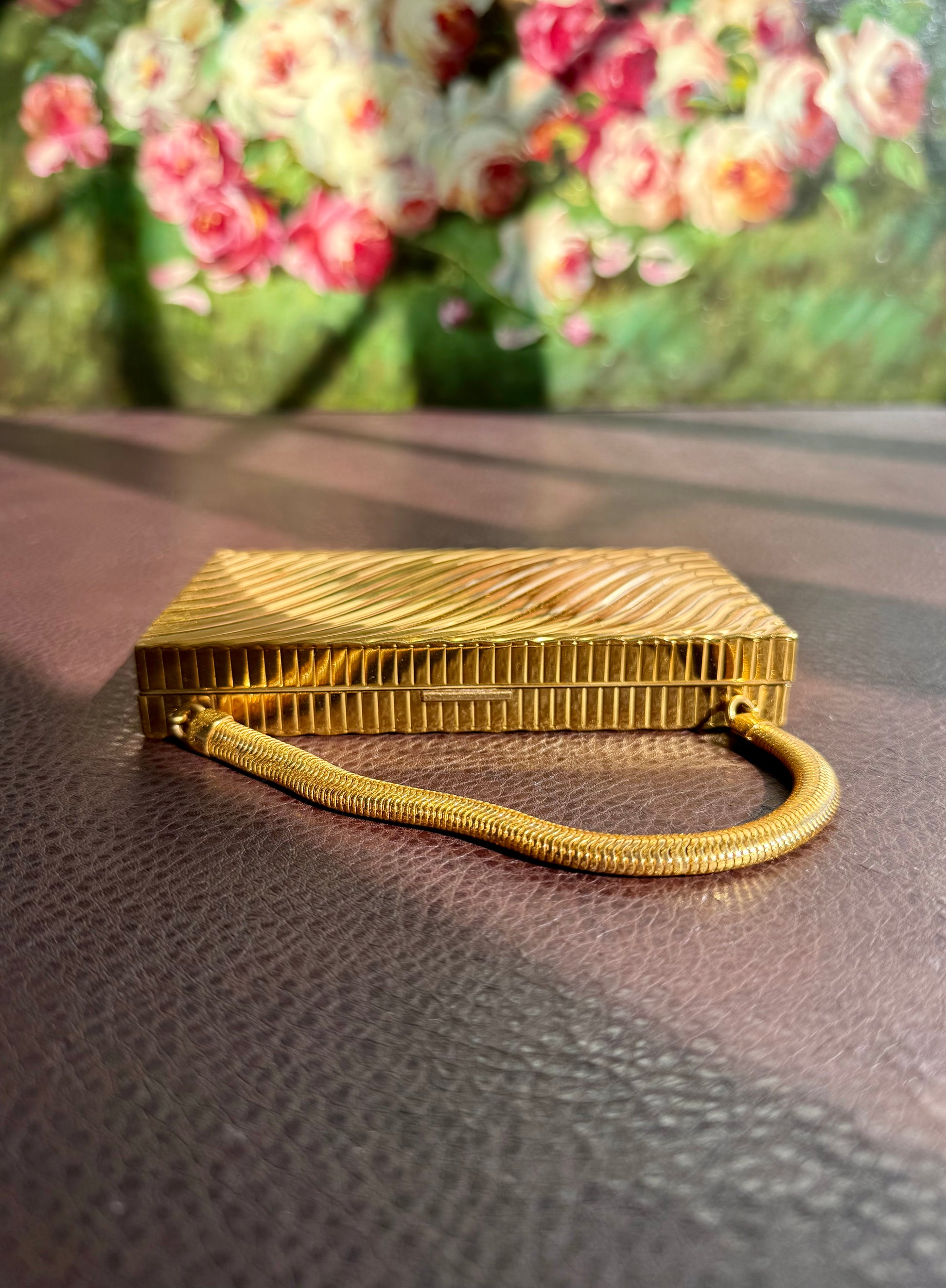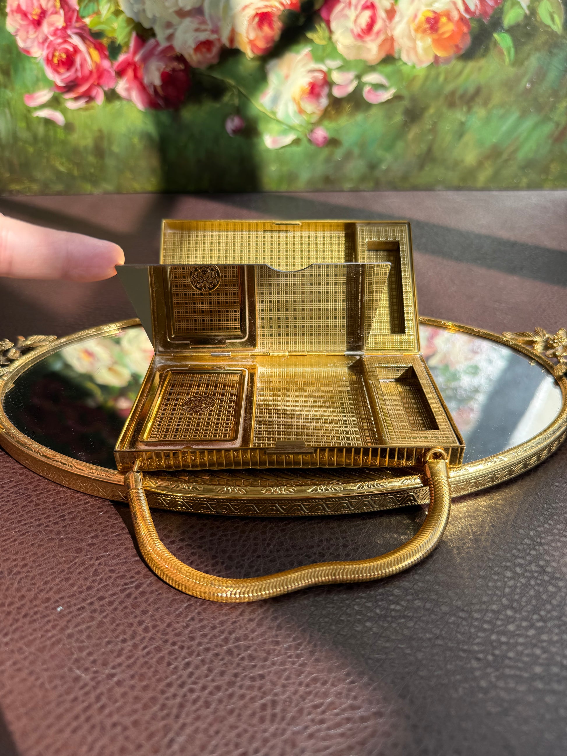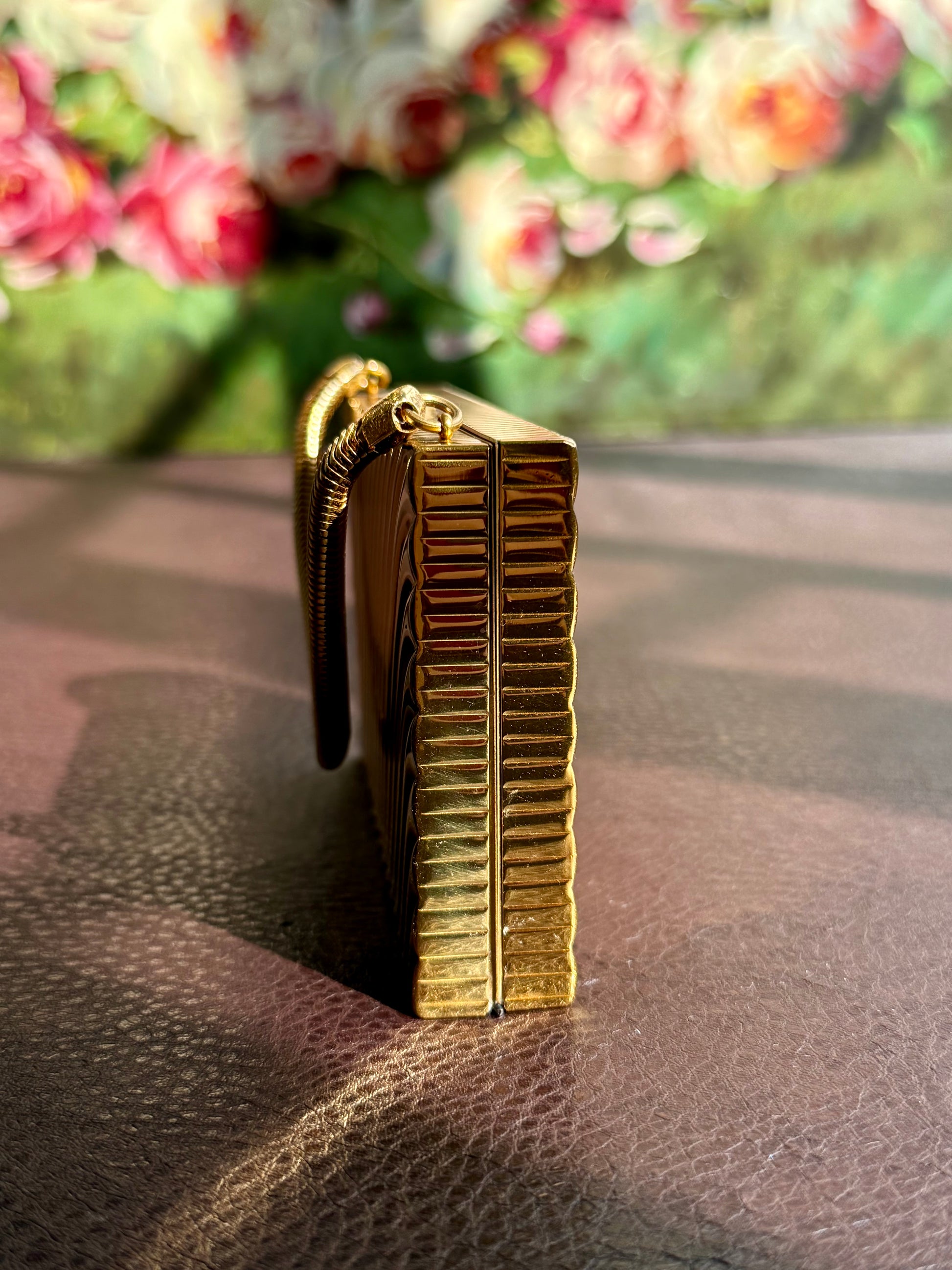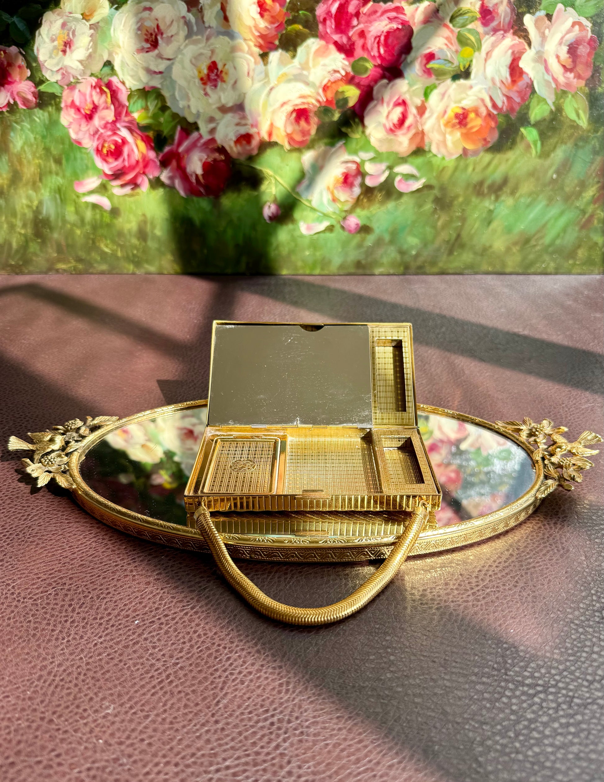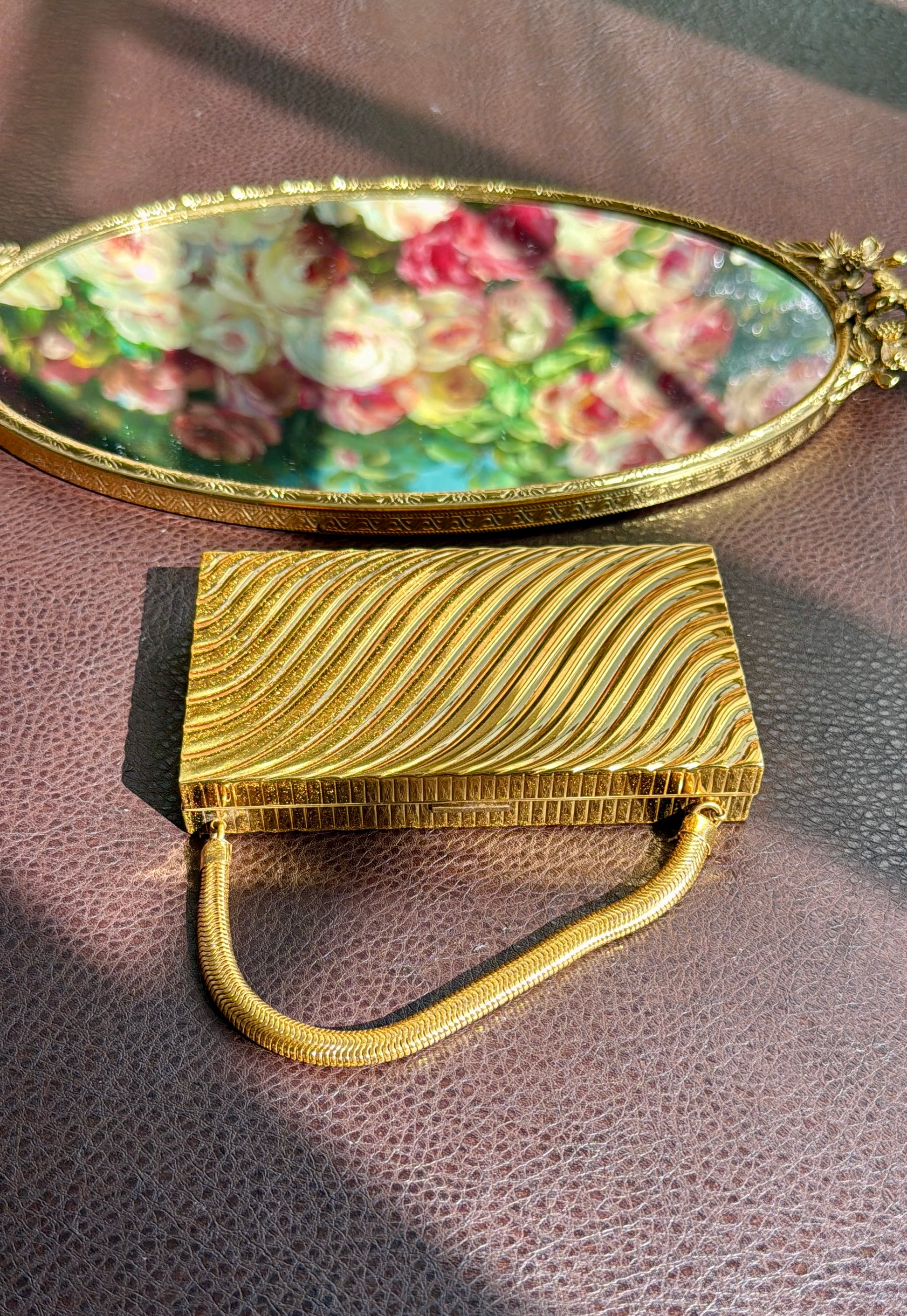 Classic Vintage Evans Gold Tone Cosmetic Cigarette Case Mirror, Makeup Powder Purse/Clutch with Snake Chain Handle