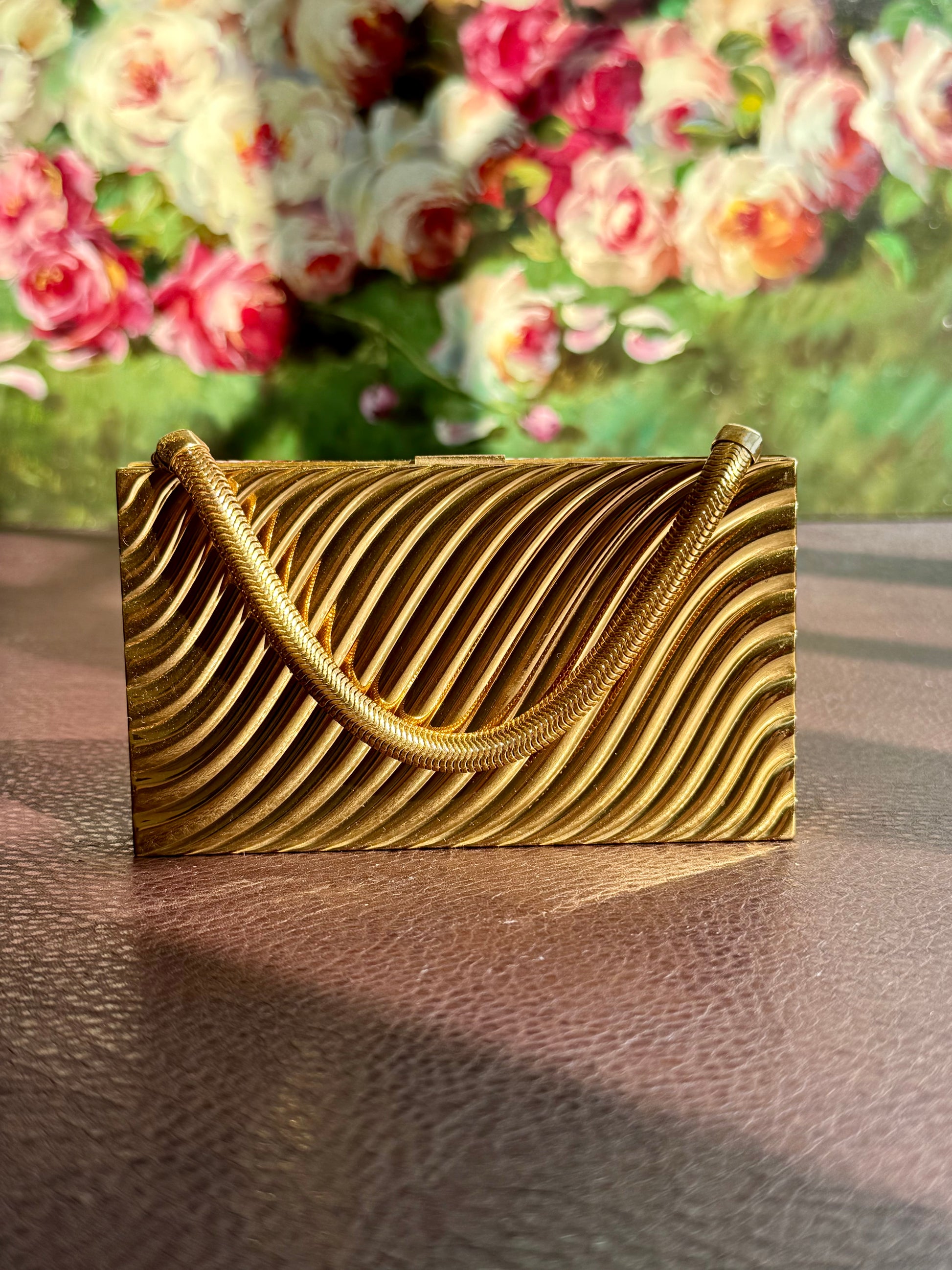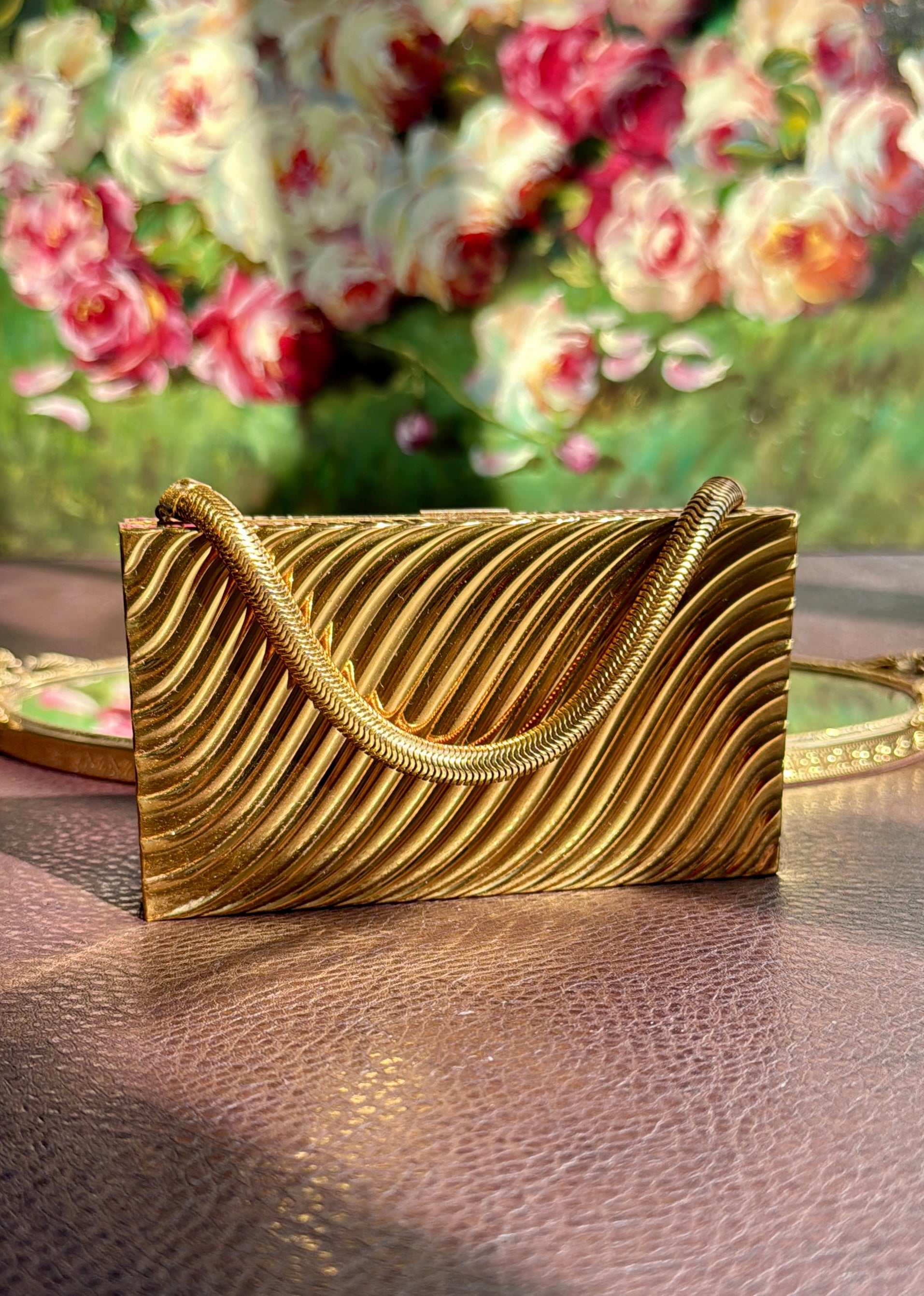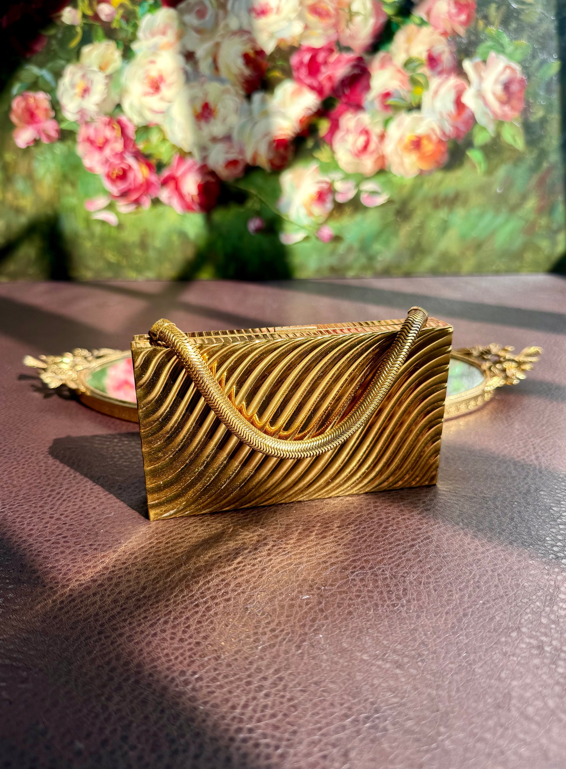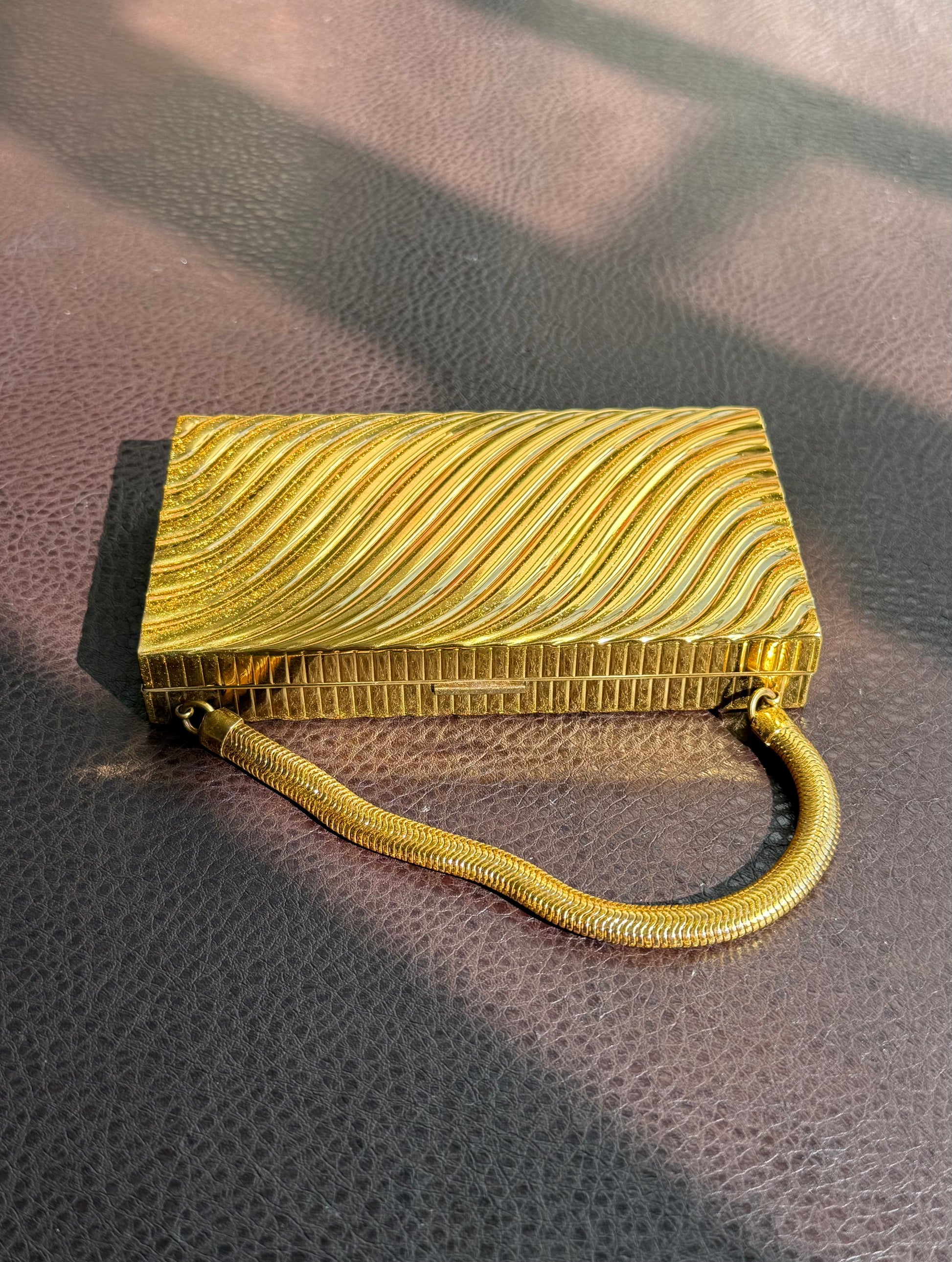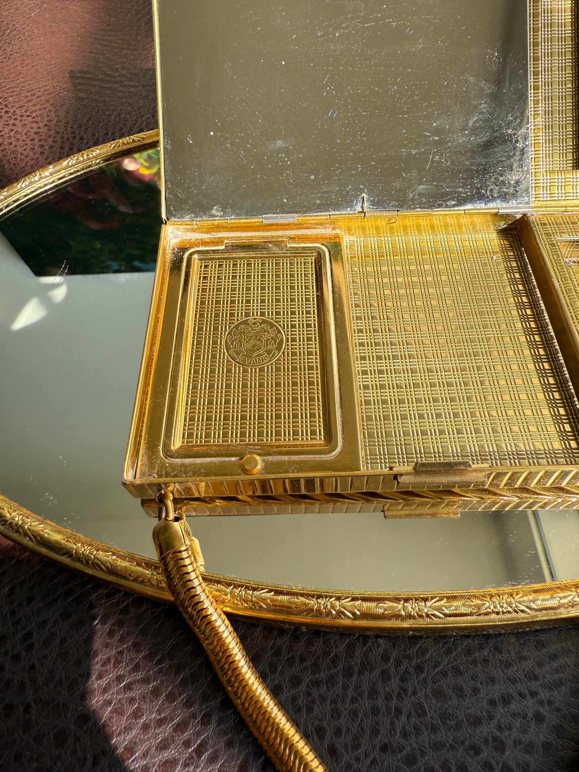 Classic Vintage Evans Gold Tone Cosmetic Cigarette Case Mirror, Makeup Powder Purse/Clutch with Snake Chain Handle