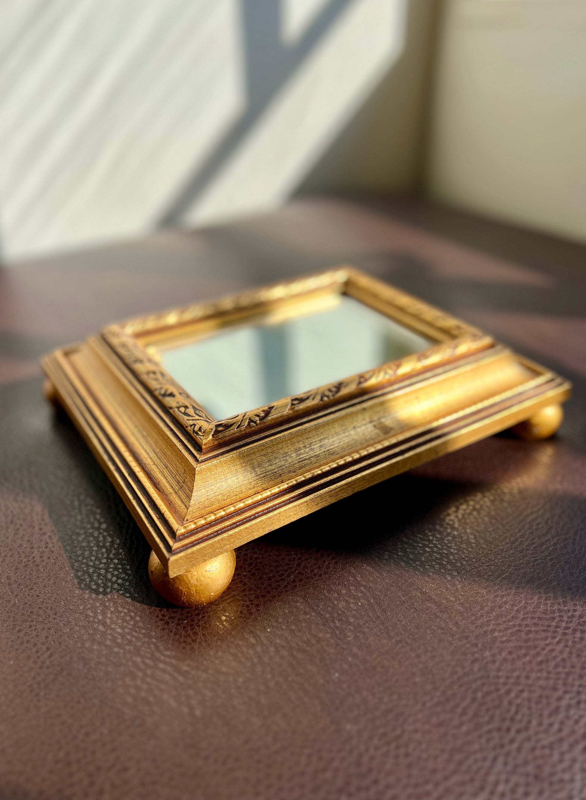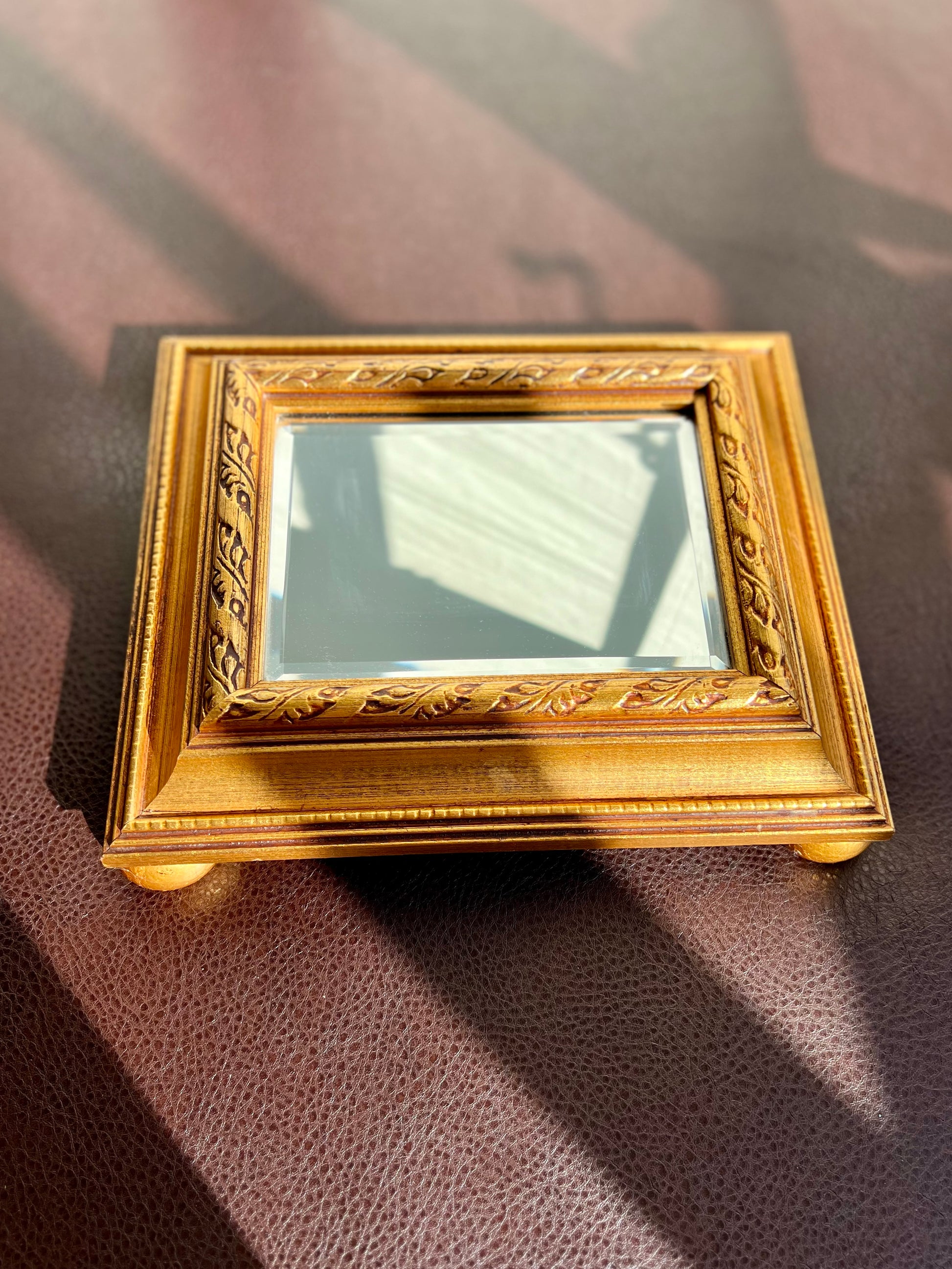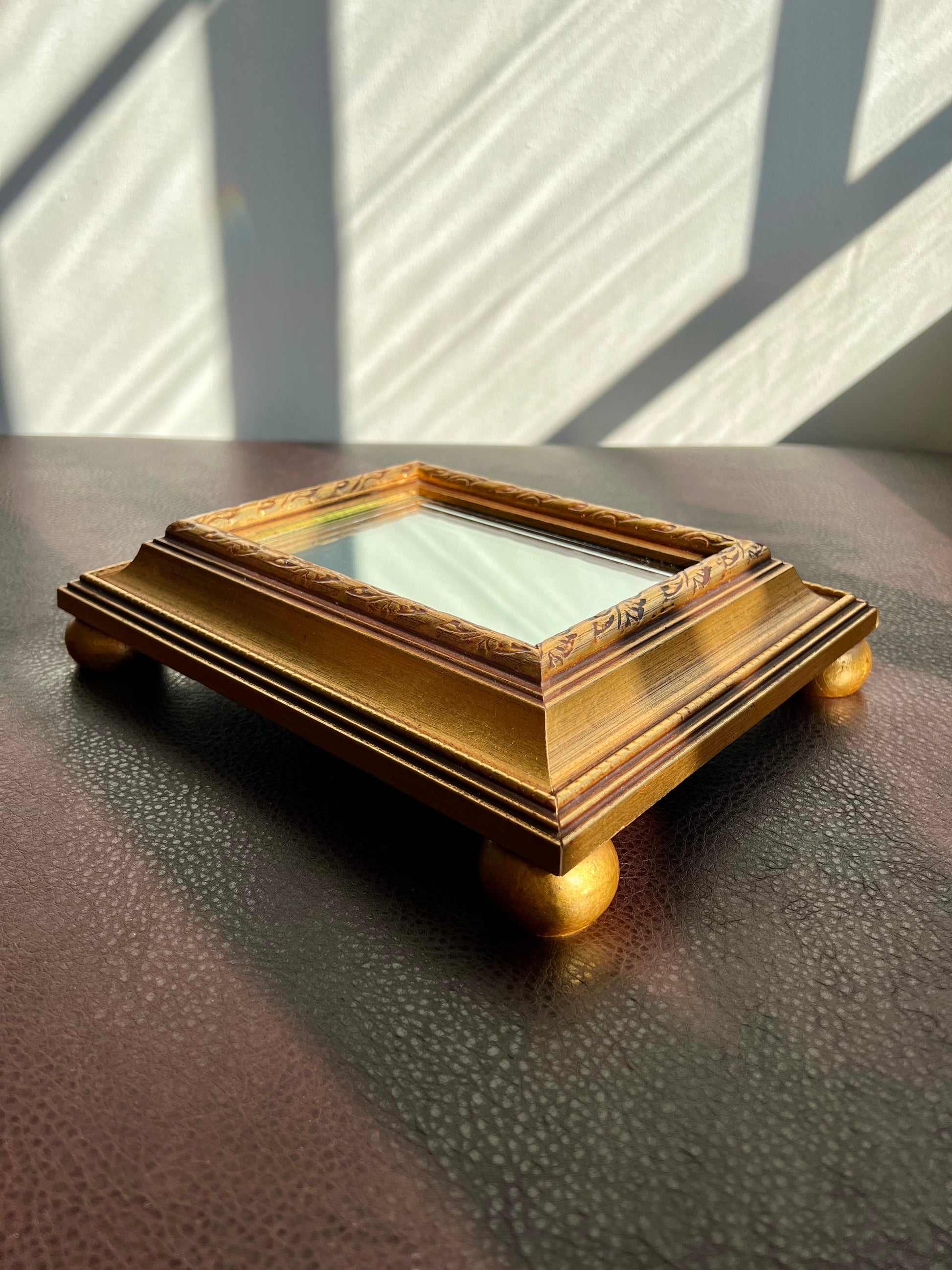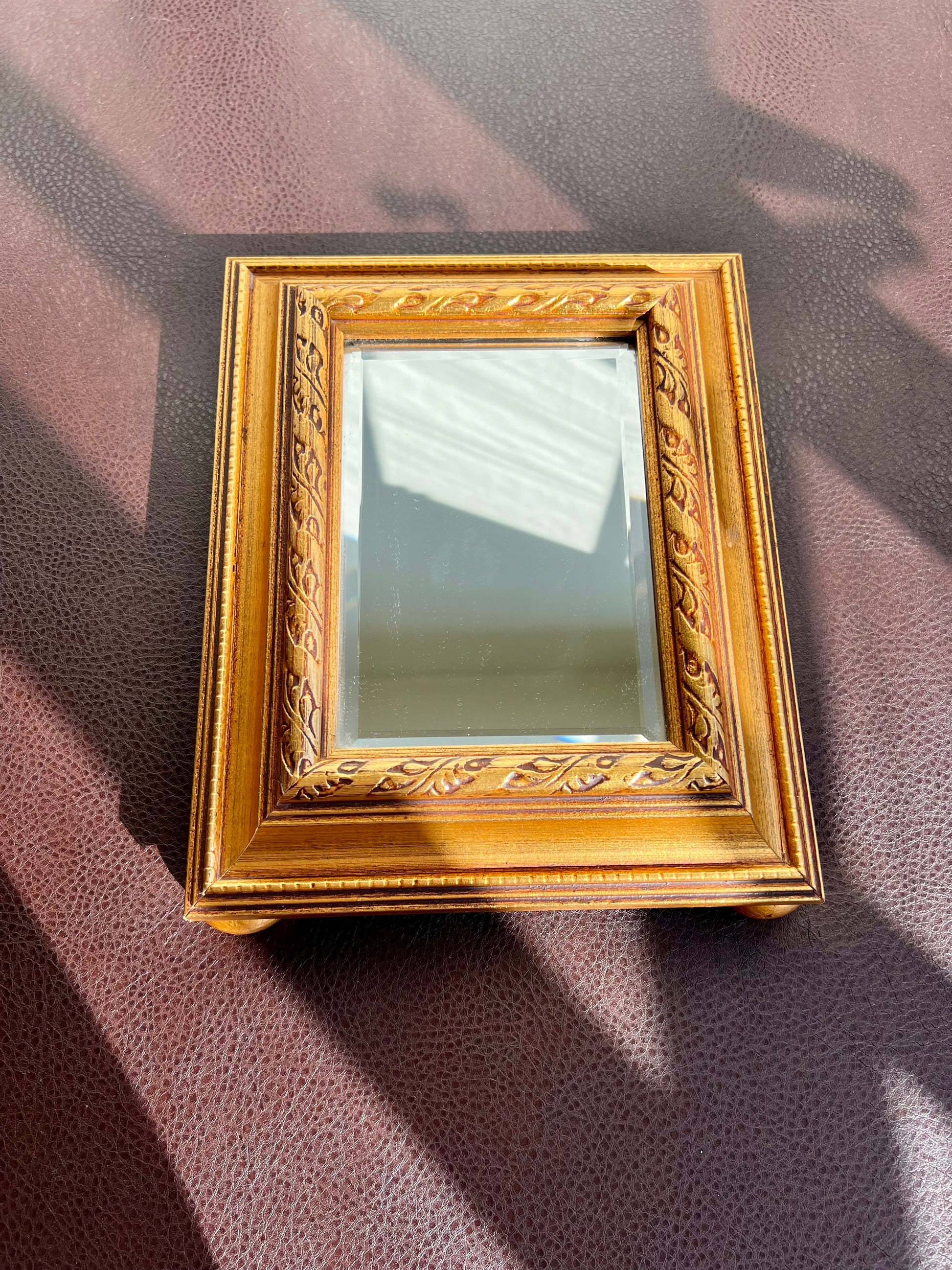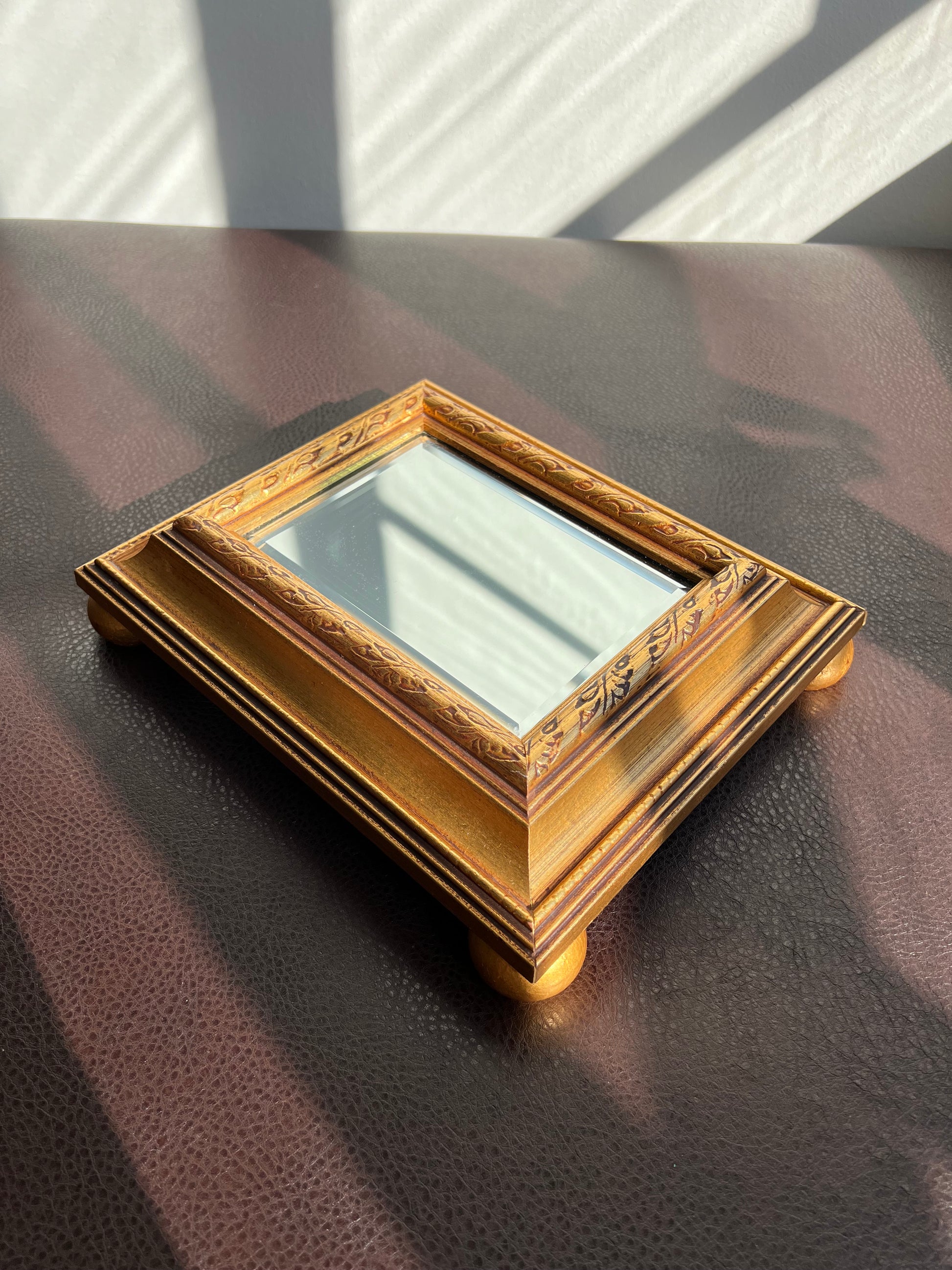 Vintage Gild Wooden Framed Table or Shelf Mirror with 4 Round Legs
