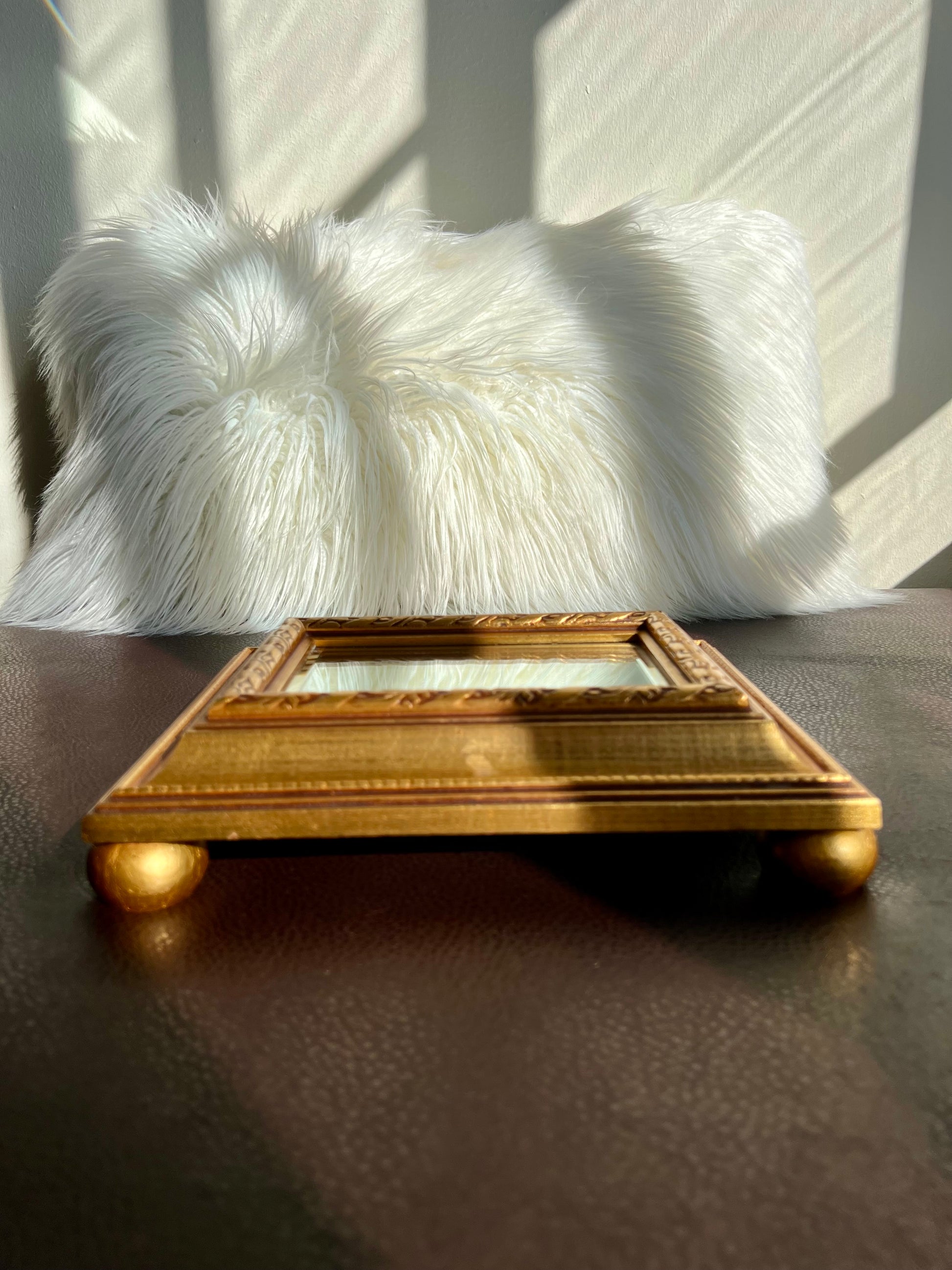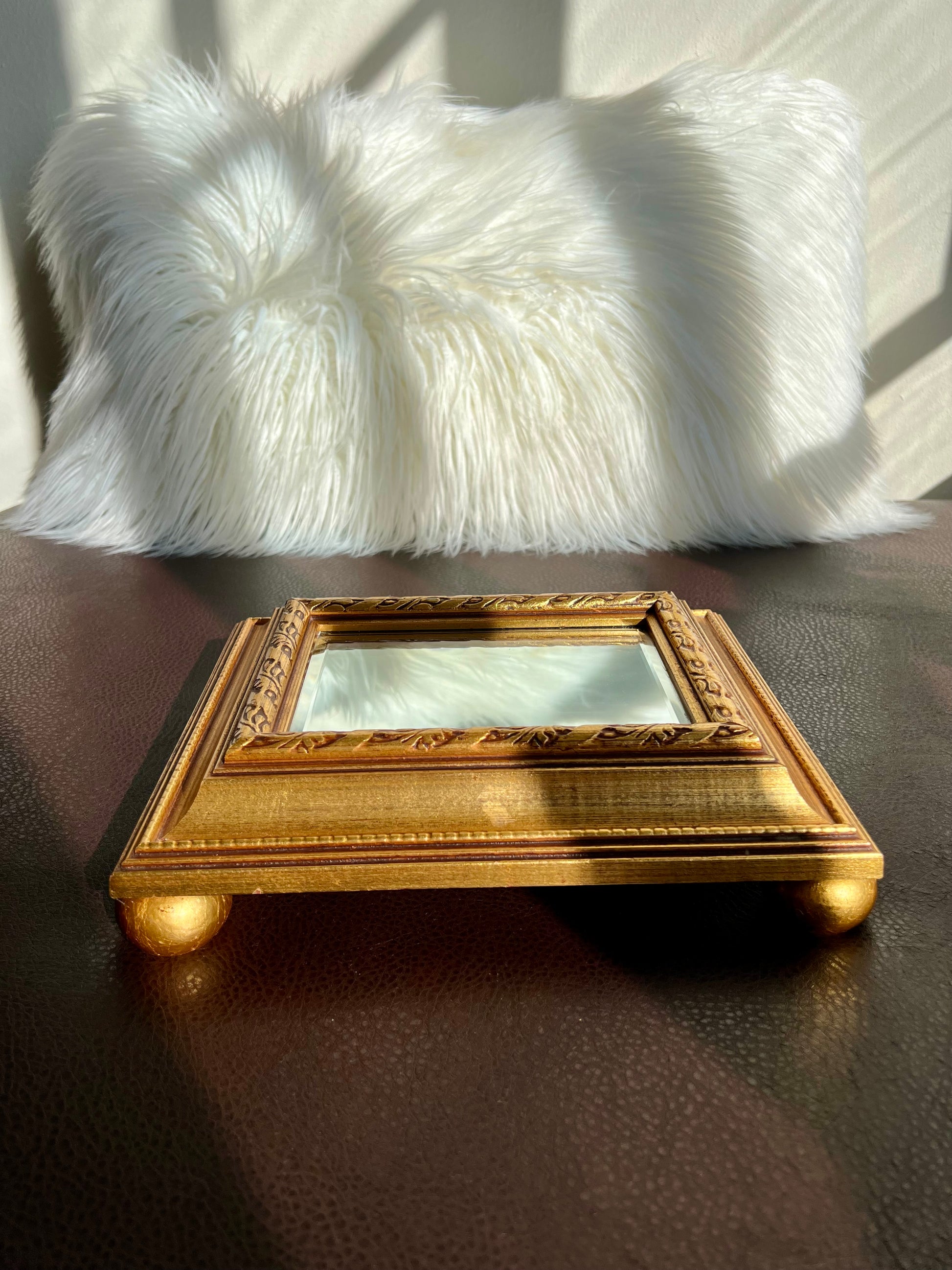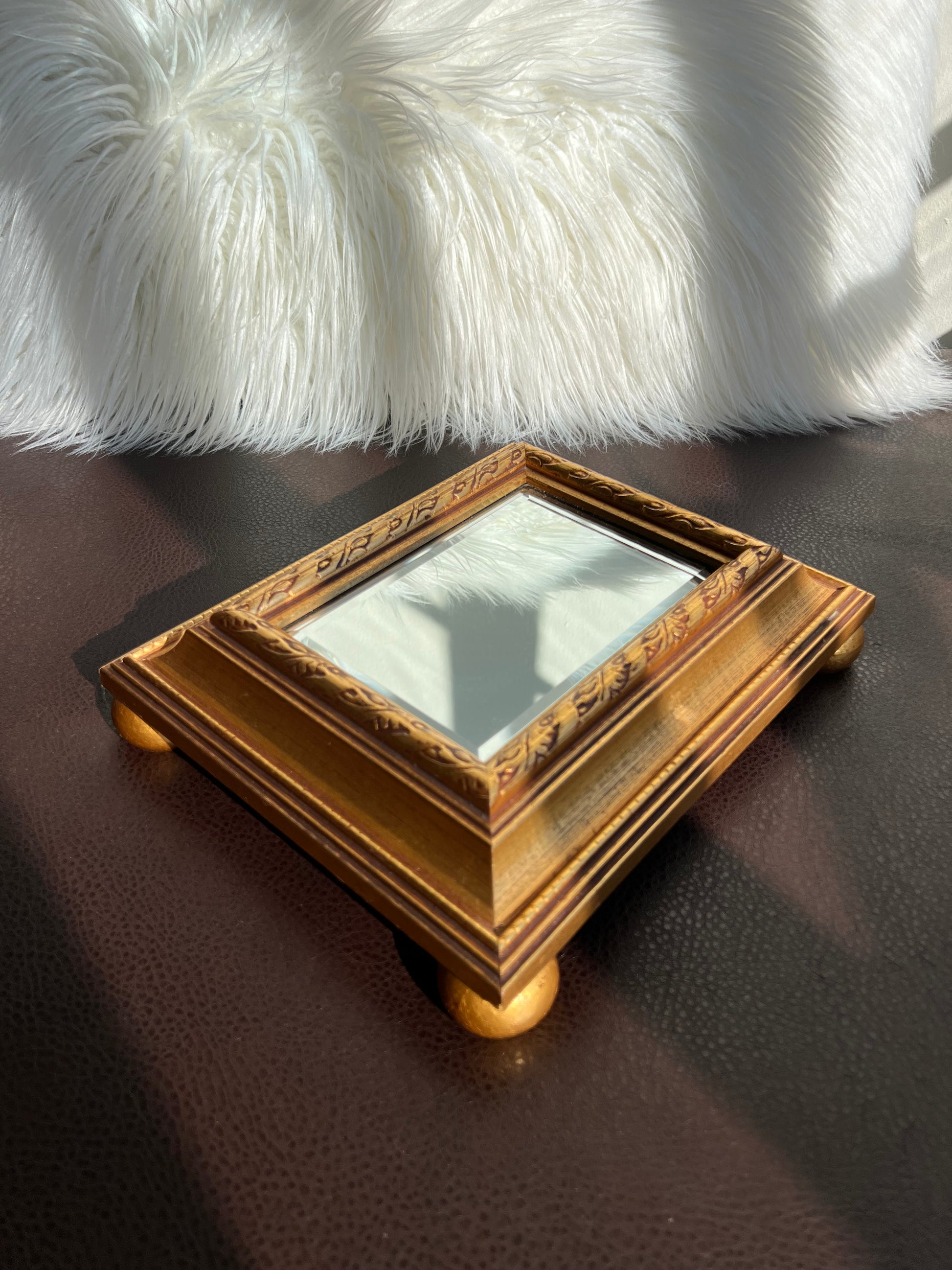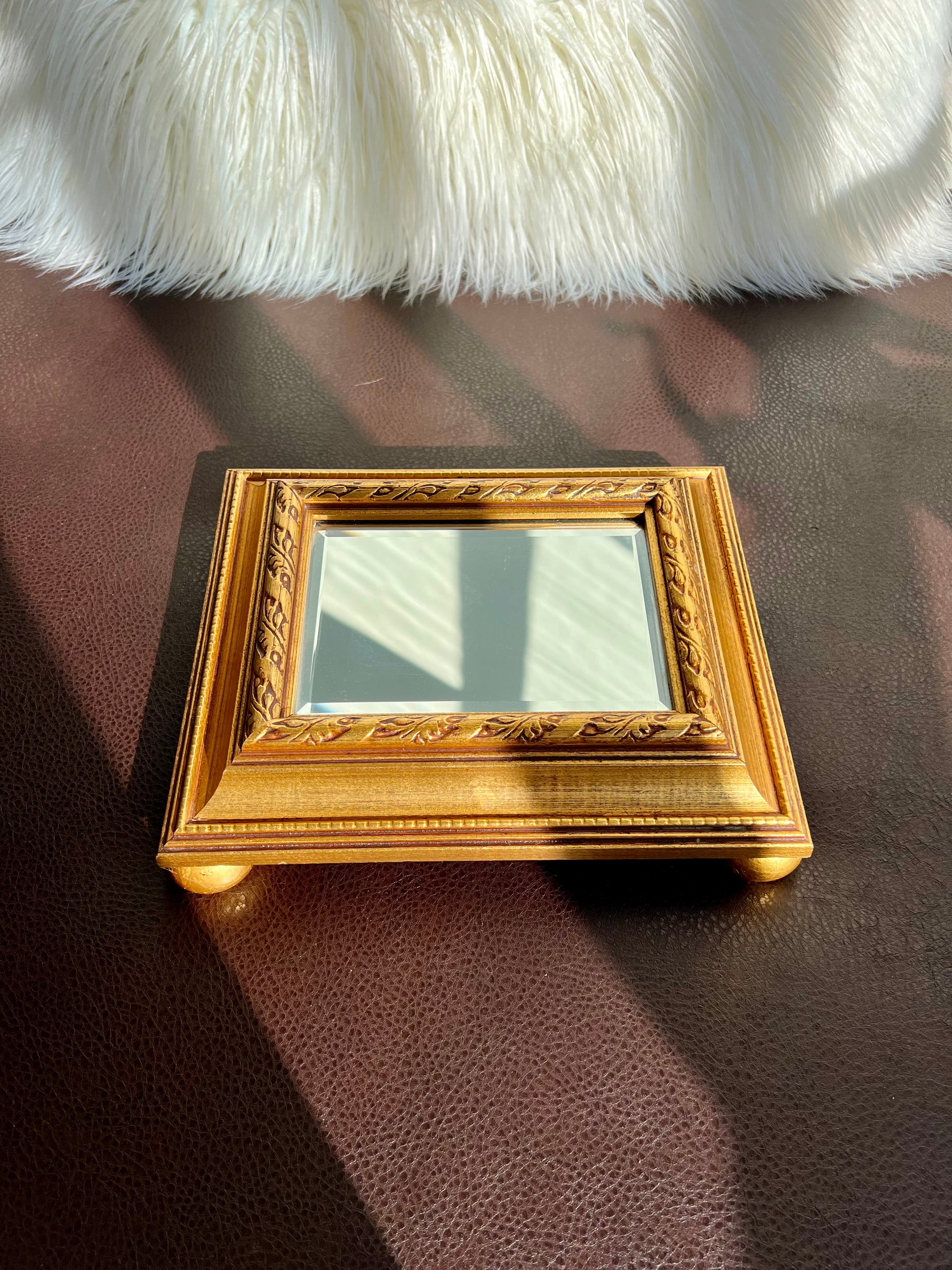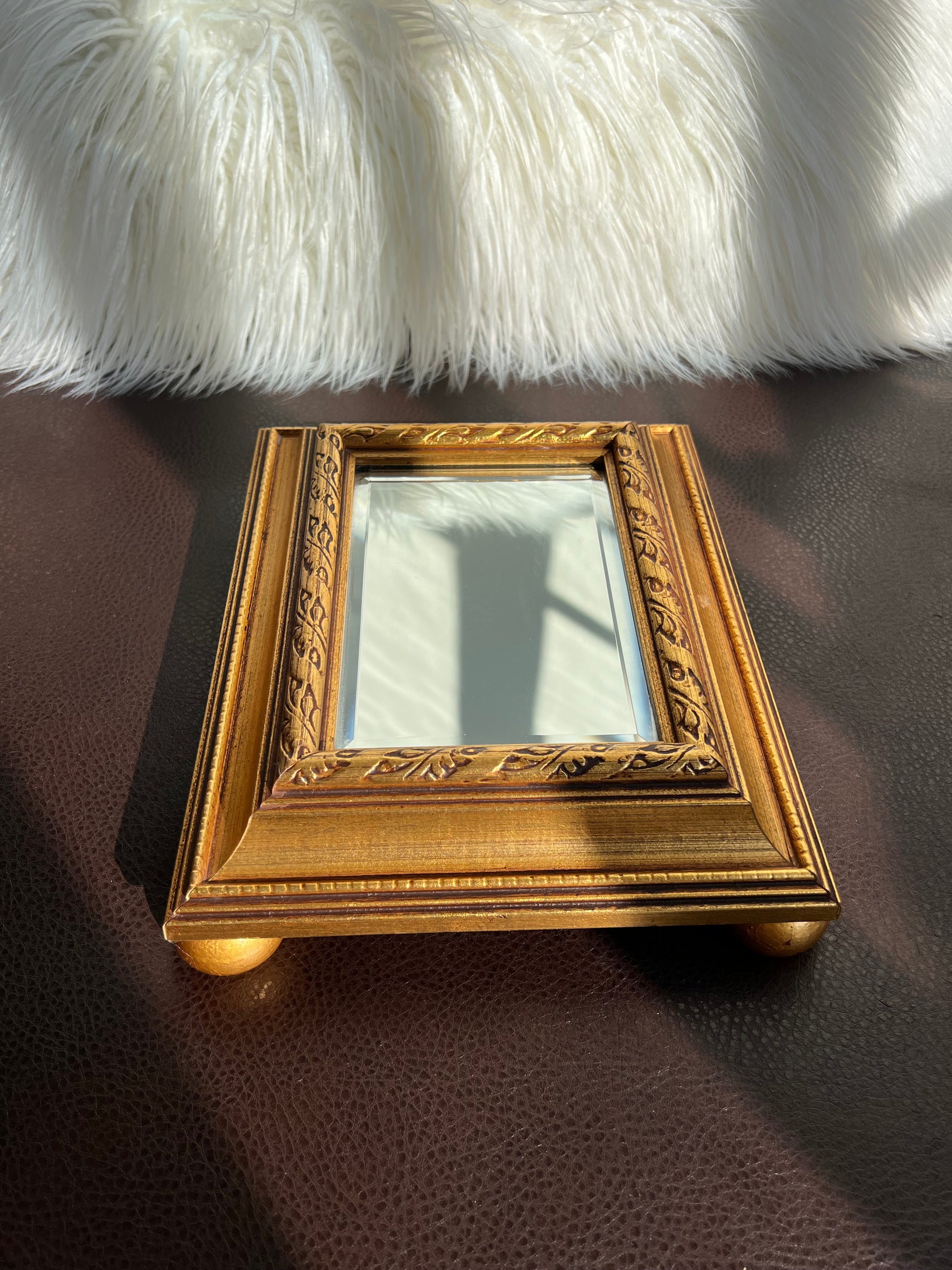 Vintage Gild Wooden Framed Table or Shelf Mirror with 4 Round Legs