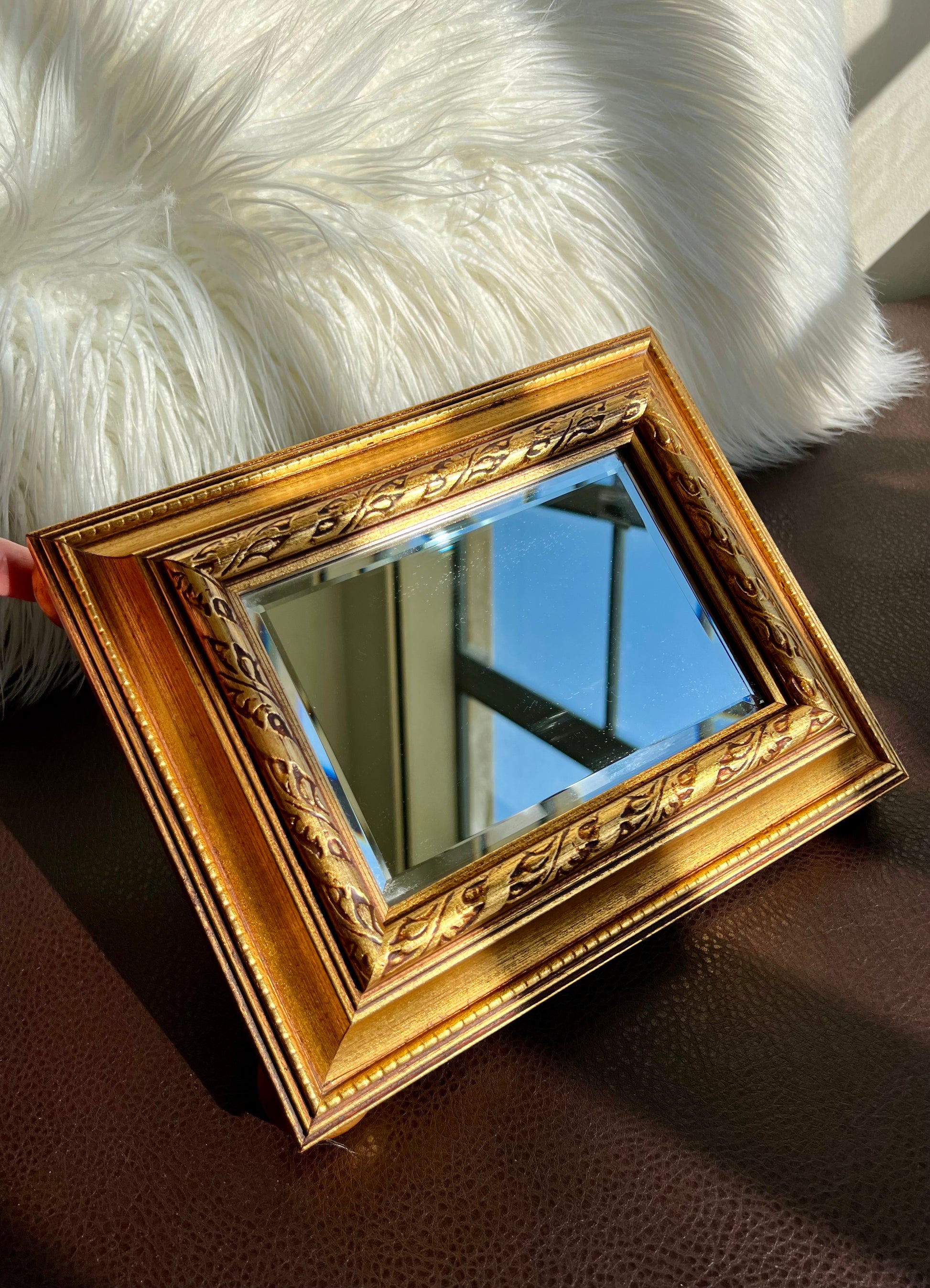 Beautiful vintage gild wooden framed table or shelf mirror. It’s good for home decor or you can use for tray in your living room or bathroom. The mirror is in very good condition. Like new.